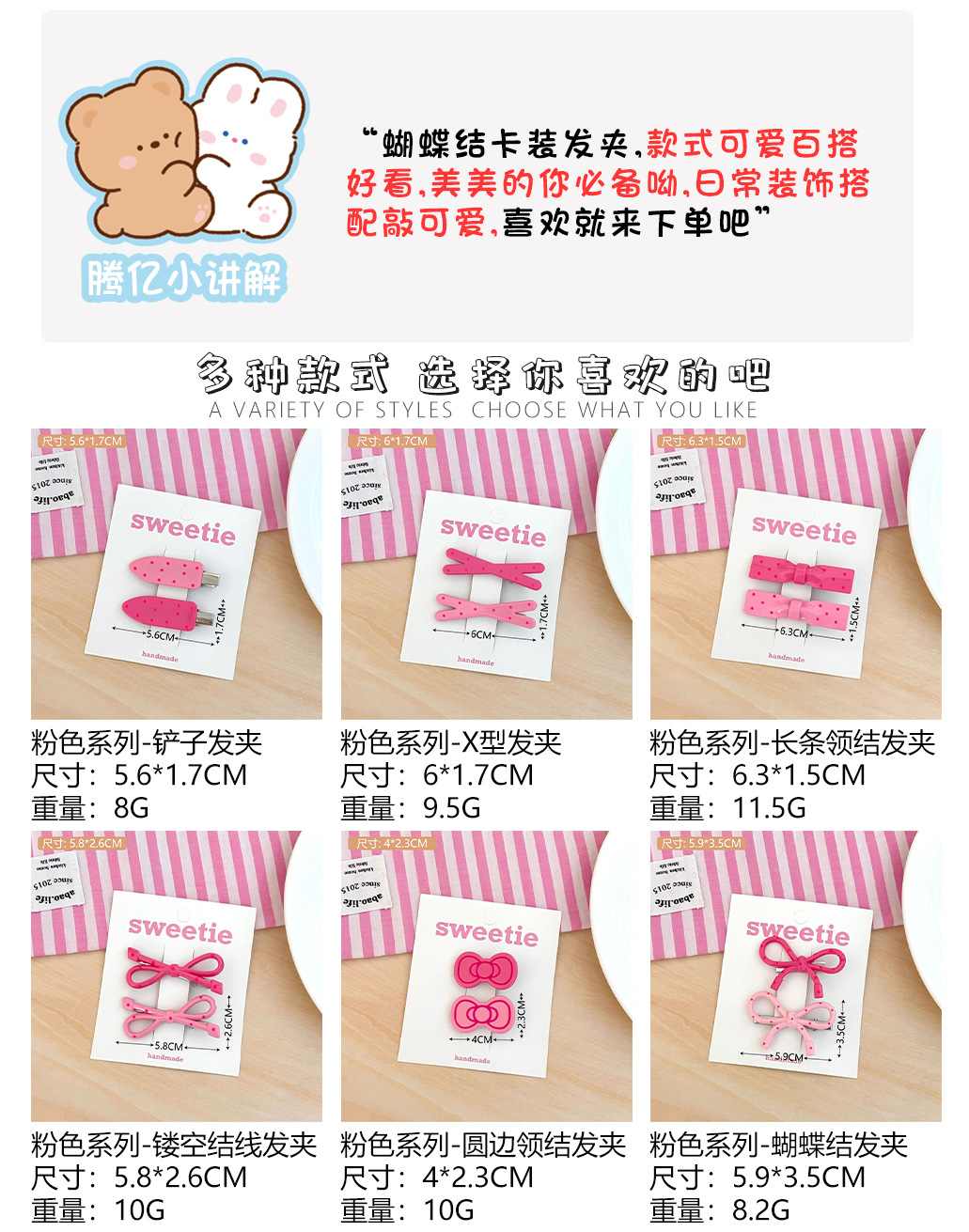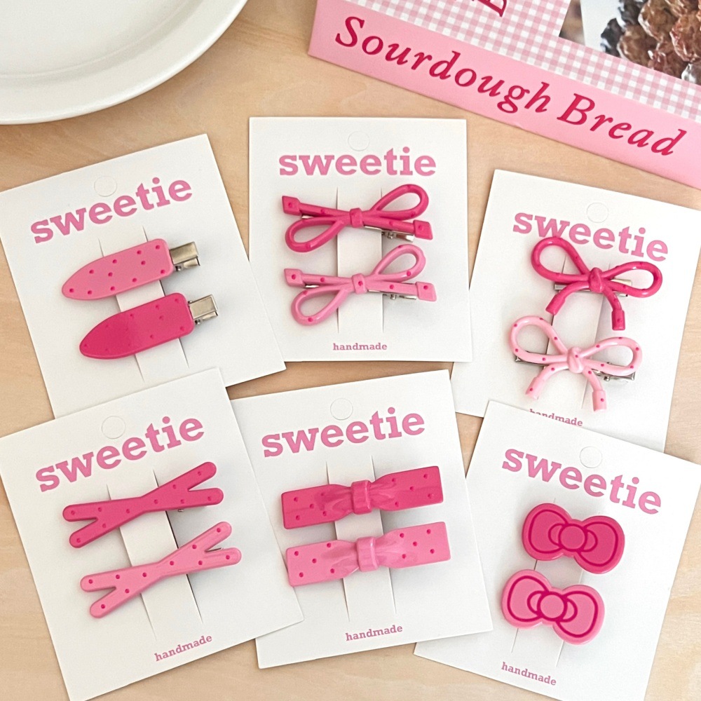 • 5#핑크 시리즈 라운드 엣지 보타이 머리핀