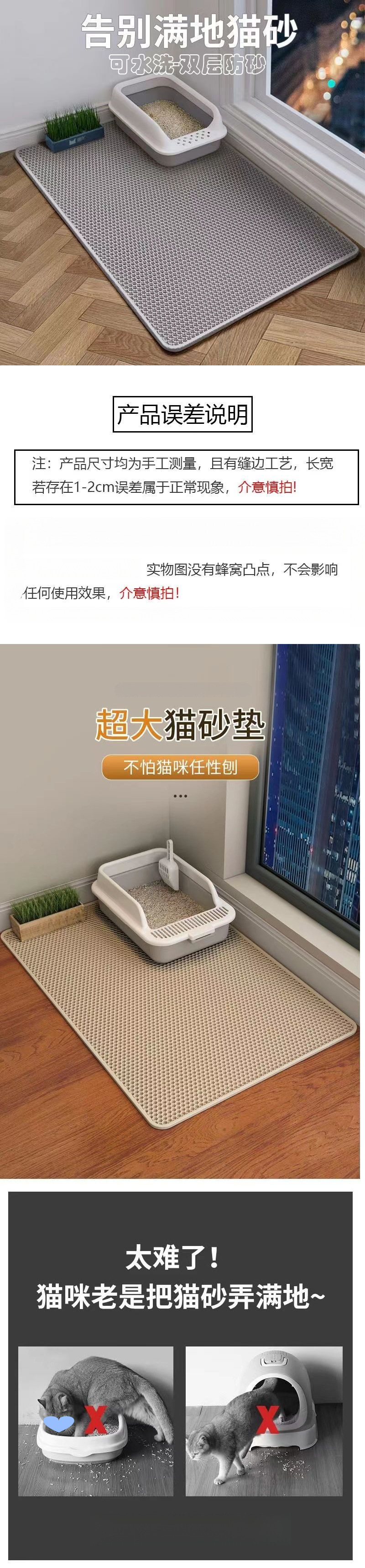 초대형 이중층 고양이 쓰레기 매트 안티 스플래시 작은 중공 필터 안티 스플래시 고양이 쓰레기 누출 방지 매트 고양이 애완 동물을위한 모래 제어 매트스토어 가기
