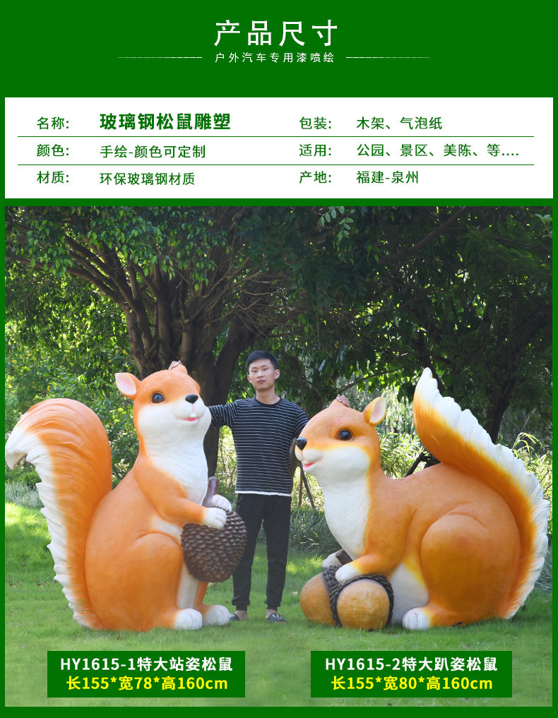 야외 공원 숲 풍경 장식품 시뮬레이션 다람쥐 유리 섬유 강화 플라스틱 조각 풍경 지역 유치원 안뜰 잔디 장식스토어 가기
