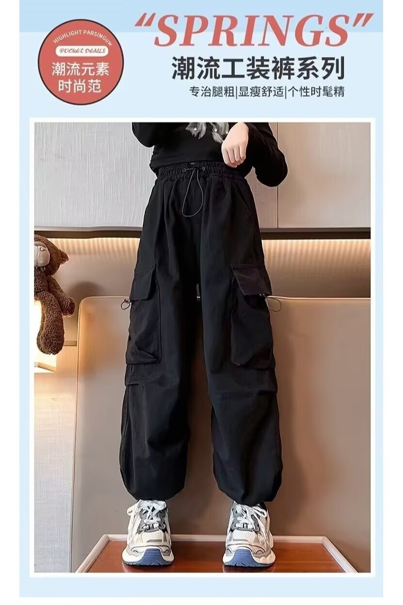 소녀 작업복 바지 2025 봄과 가을 새로운 어린이 아기 강아지 잘 생긴 중대형 어린이 가을 캐주얼 바지스토어 가기