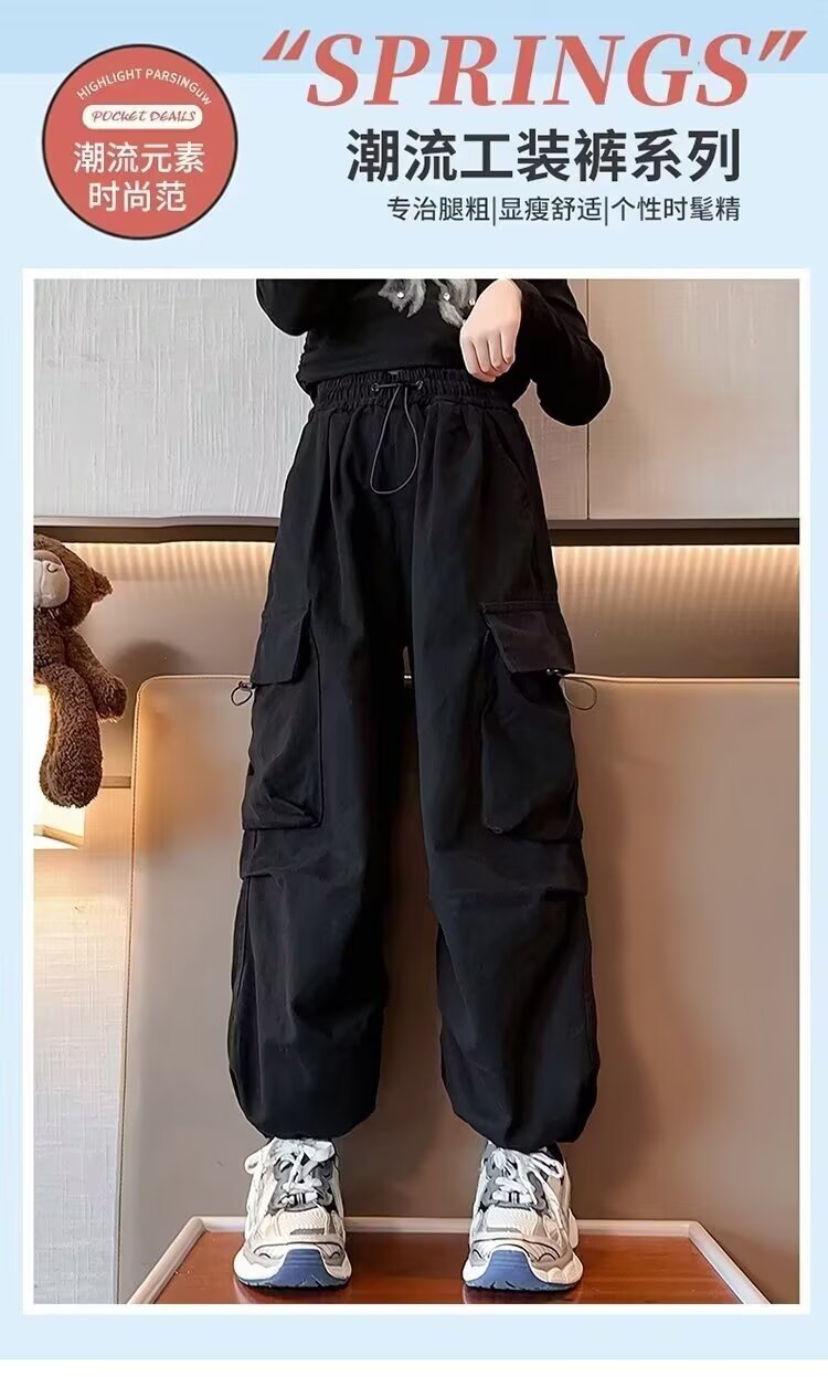 소녀 작업복 바지 2025 봄과 가을 새로운 어린이 아기 강아지 잘 생긴 중대형 어린이 가을 캐주얼 바지
