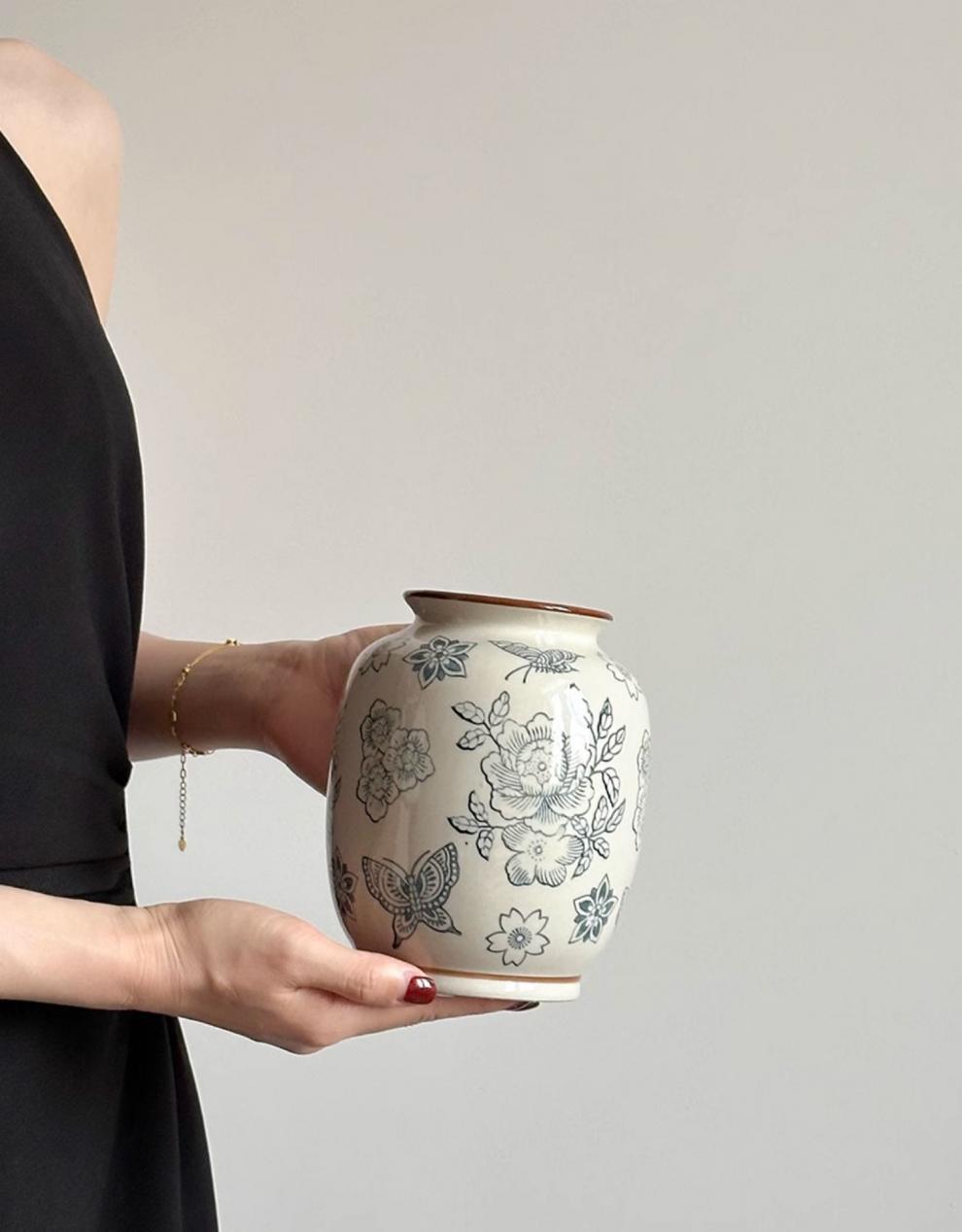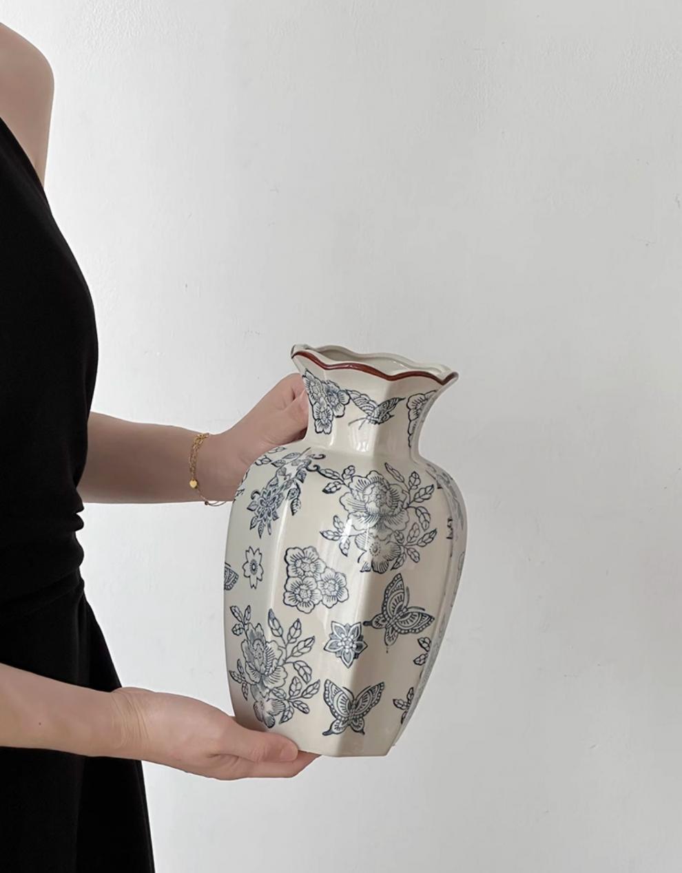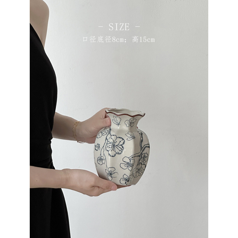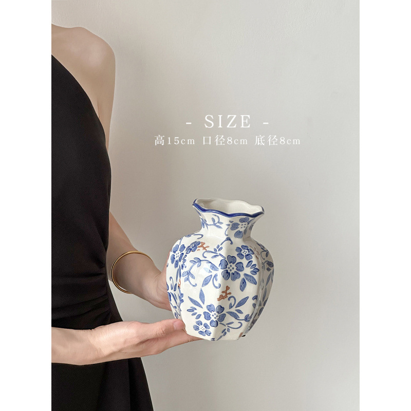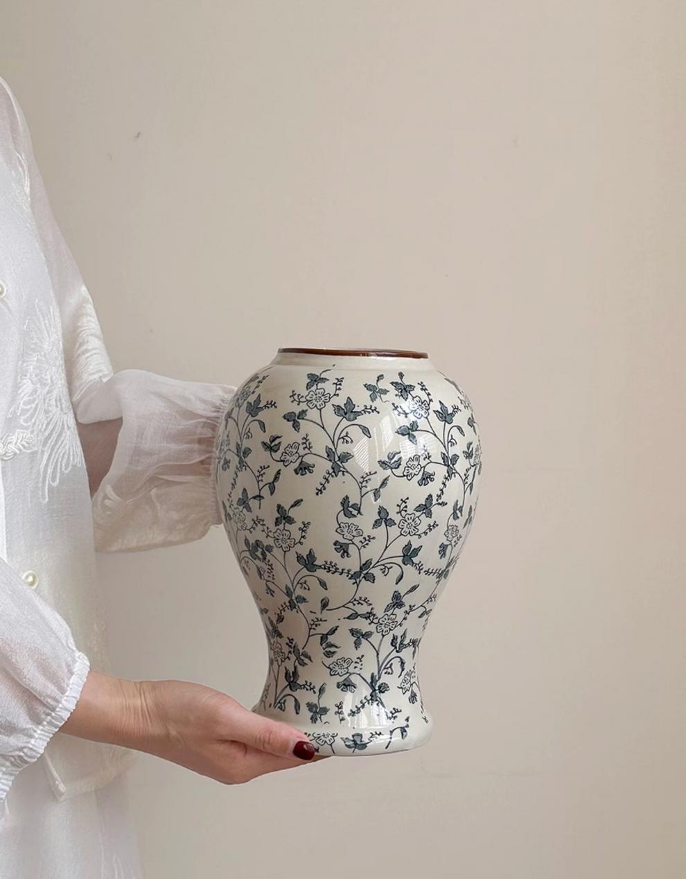 파란색과 흰색 도자기 빈티지 세라믹 꽃병 장식품 거실 꽃 꽃 장식품 도자기 냄비 빛 고급 장식 새로운 중국 기타스토어 가기