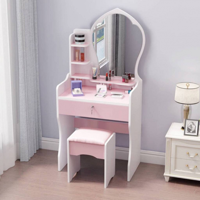 • #60cm 핑크 더블 드로우 프린세스 거울 + 프리 스툴