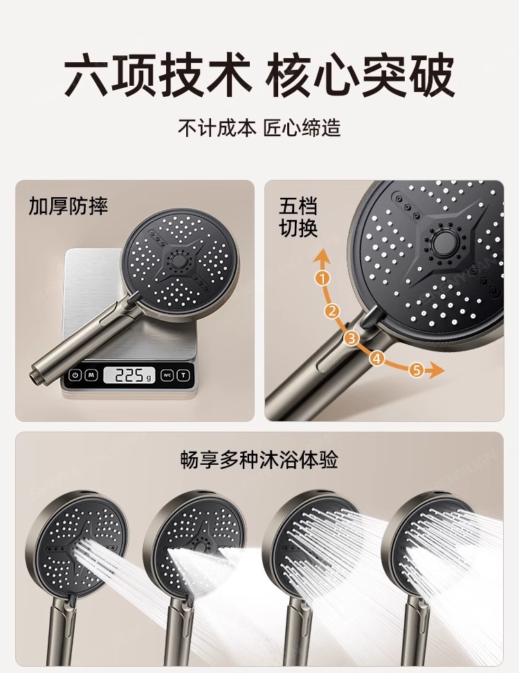 스프레이 건 가정용 욕실 가압 목욕 샤워 세트 장착 된 5 단 조절 식 대형 패널 고압 핸드 헬드 샤워 노즐