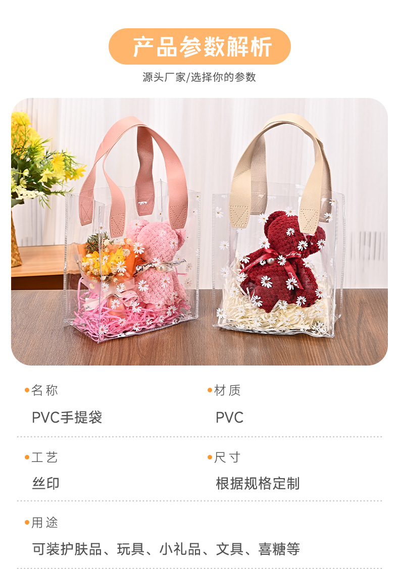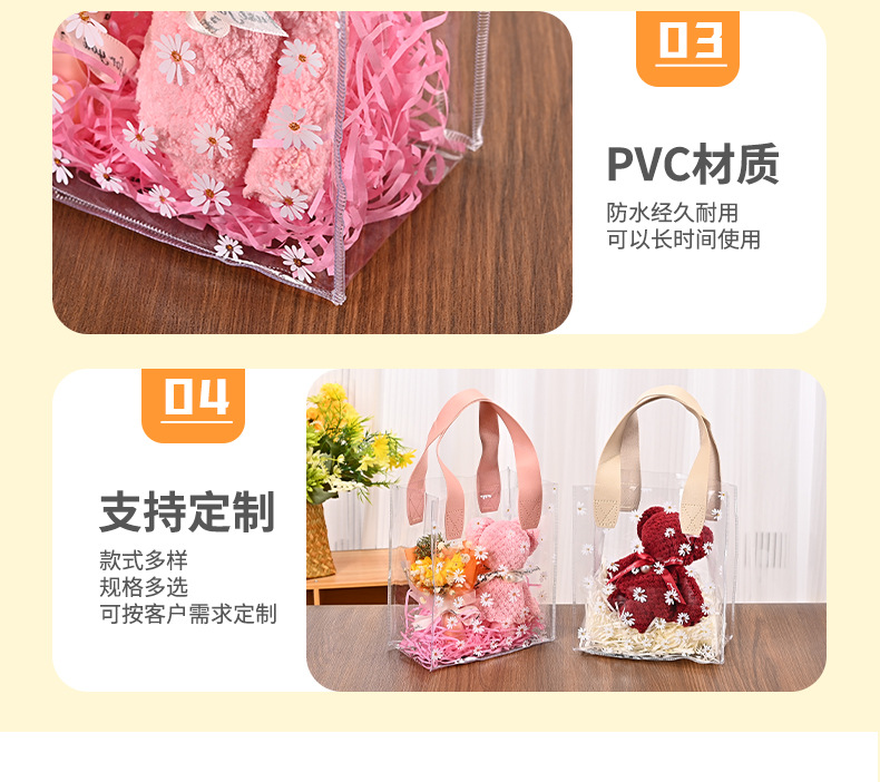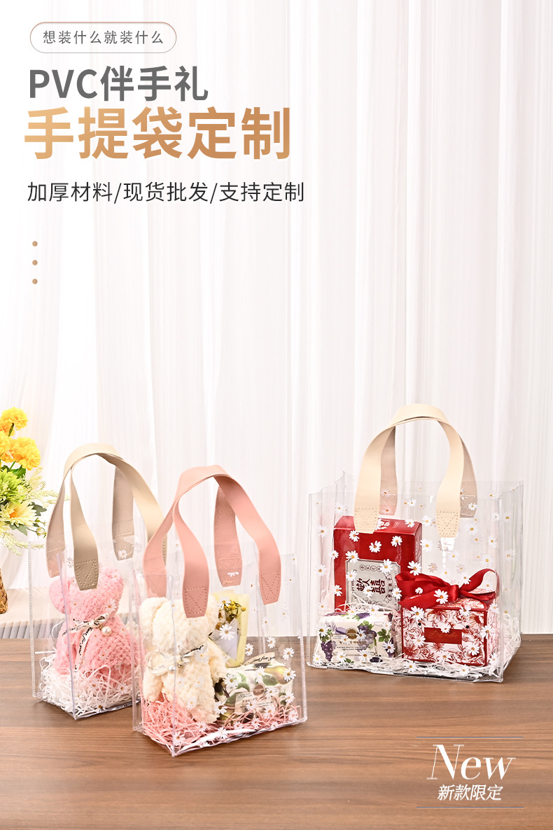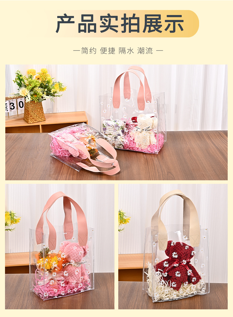 3 월 8 일 여성의 날 38 여신 축제 pvc 투명 핸드백 선물 가방 높은 감각 작은 데이지 꽃 가방