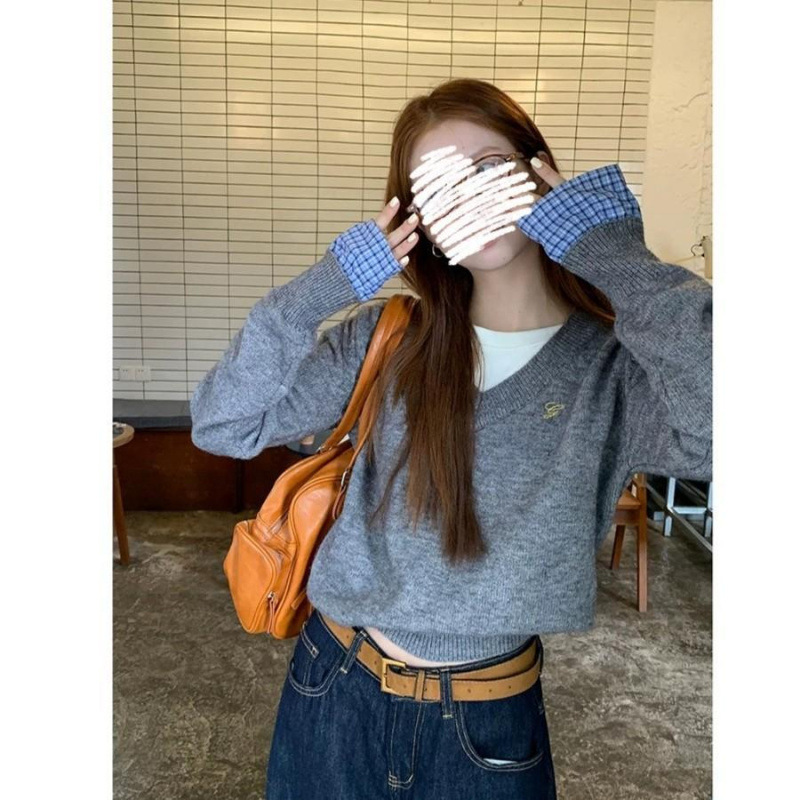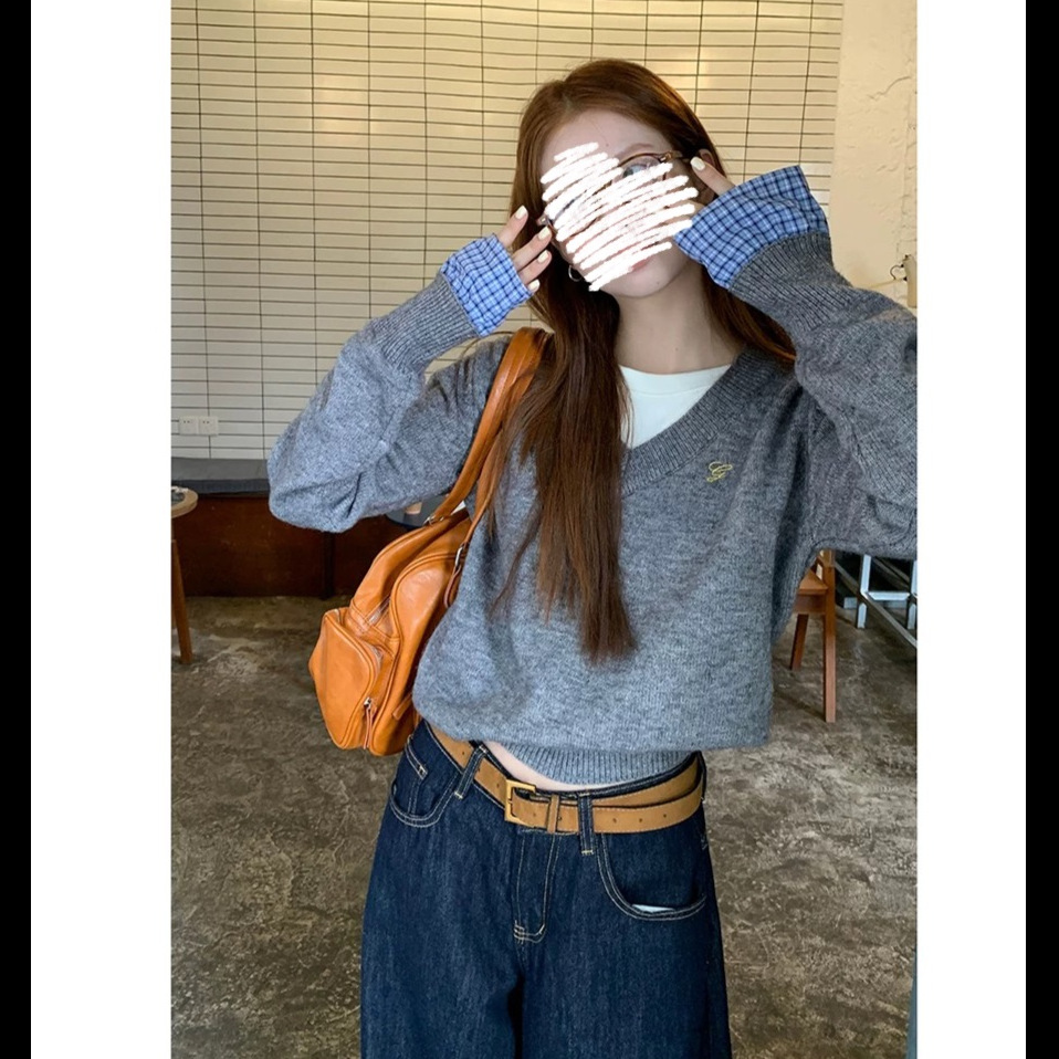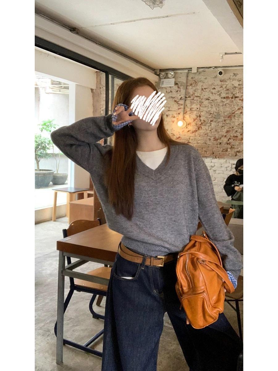 V 넥 풀오버 스웨터 여성의 봄과 가을 새로운 우아한 올 매치 느슨한 슬리밍 여성용 긴팔 니트 탑스토어 가기