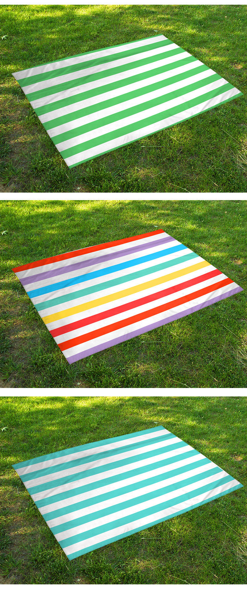 대외 무역 뜨거운 판매 아마존 줄무늬 나일론 인쇄 피크닉 매트 미니 방수 격자 무늬 습기 증거 비치 매트 담요