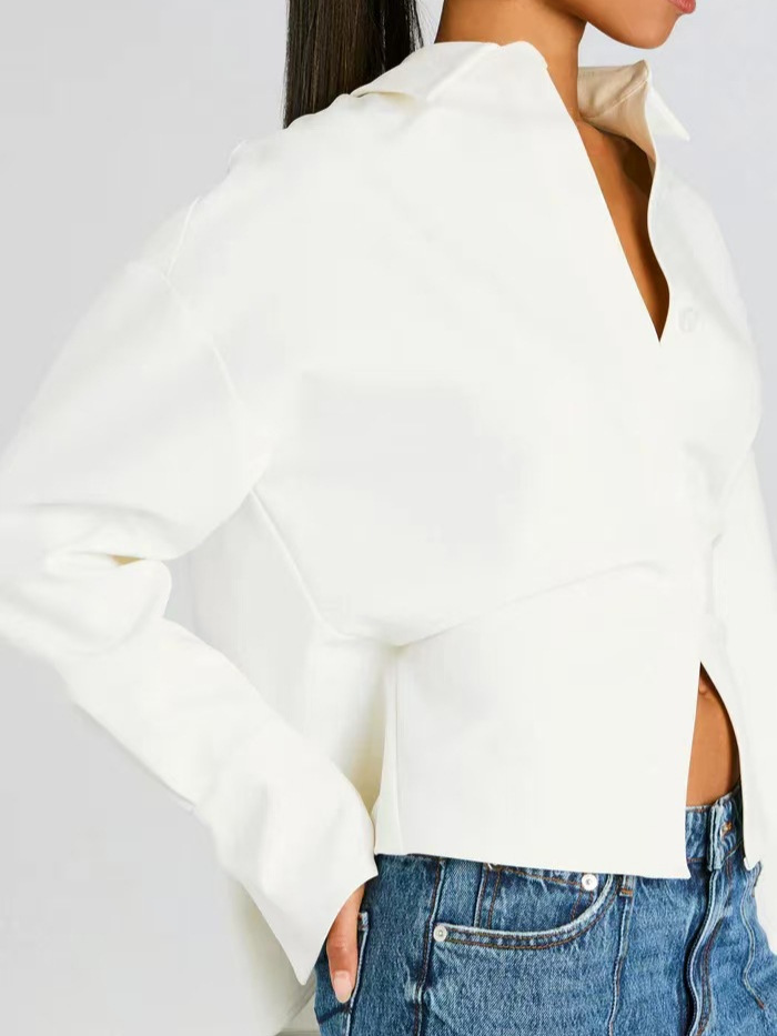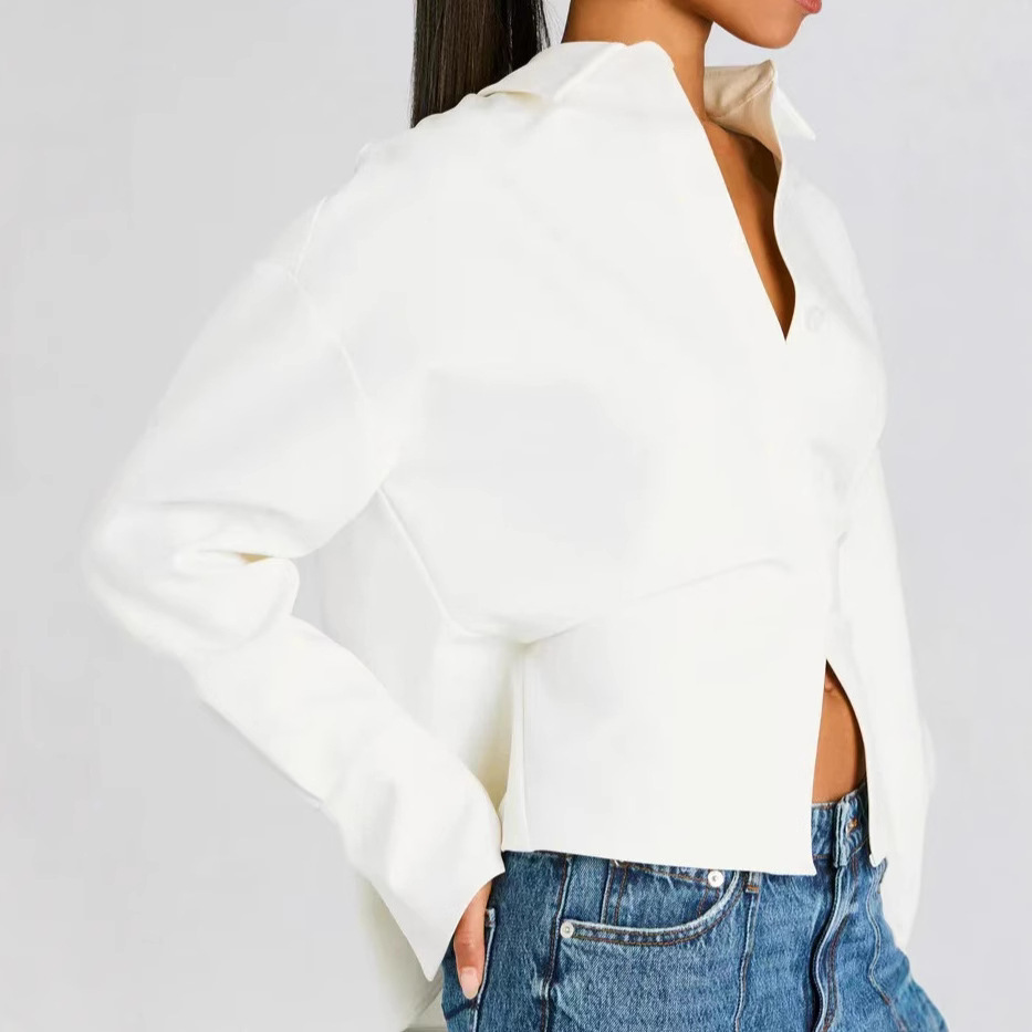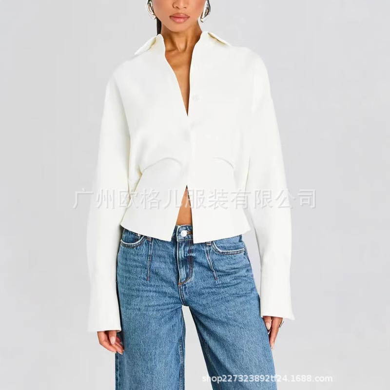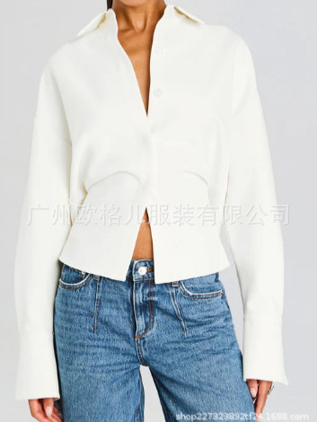 유럽과 미국의 아마존 대외 무역 독립 역 여성의 새로운 화이트 쇼트 탑 불규칙한 패션 셔츠 셔츠