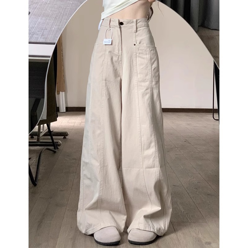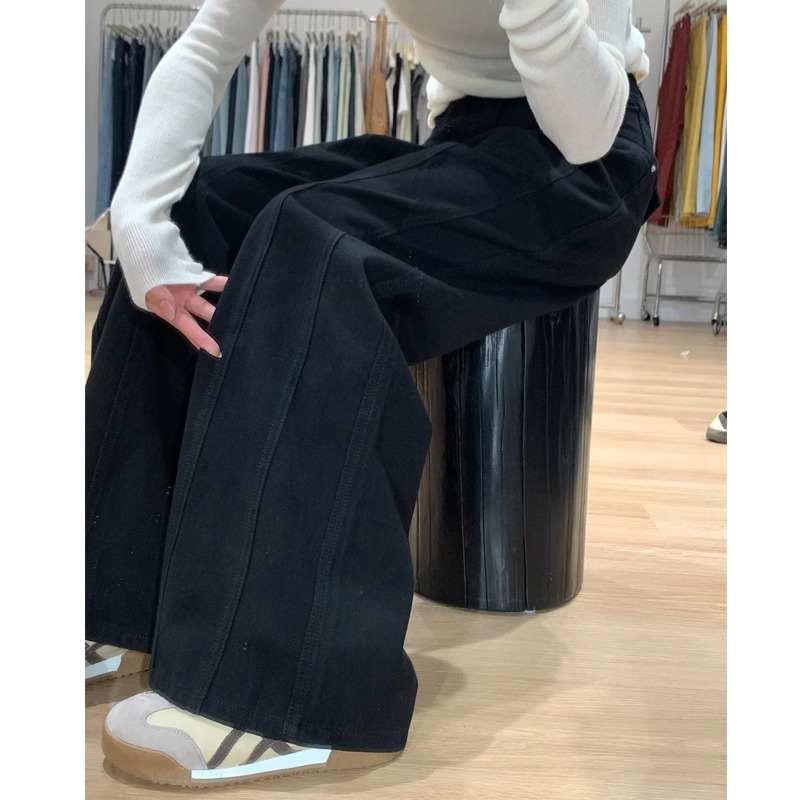 게으르고 편안한 청바지 플러스 사이즈 느슨한 검은 바지 미국 하이 스트리트 2025 새로운 넓은 다리 바지스토어 가기