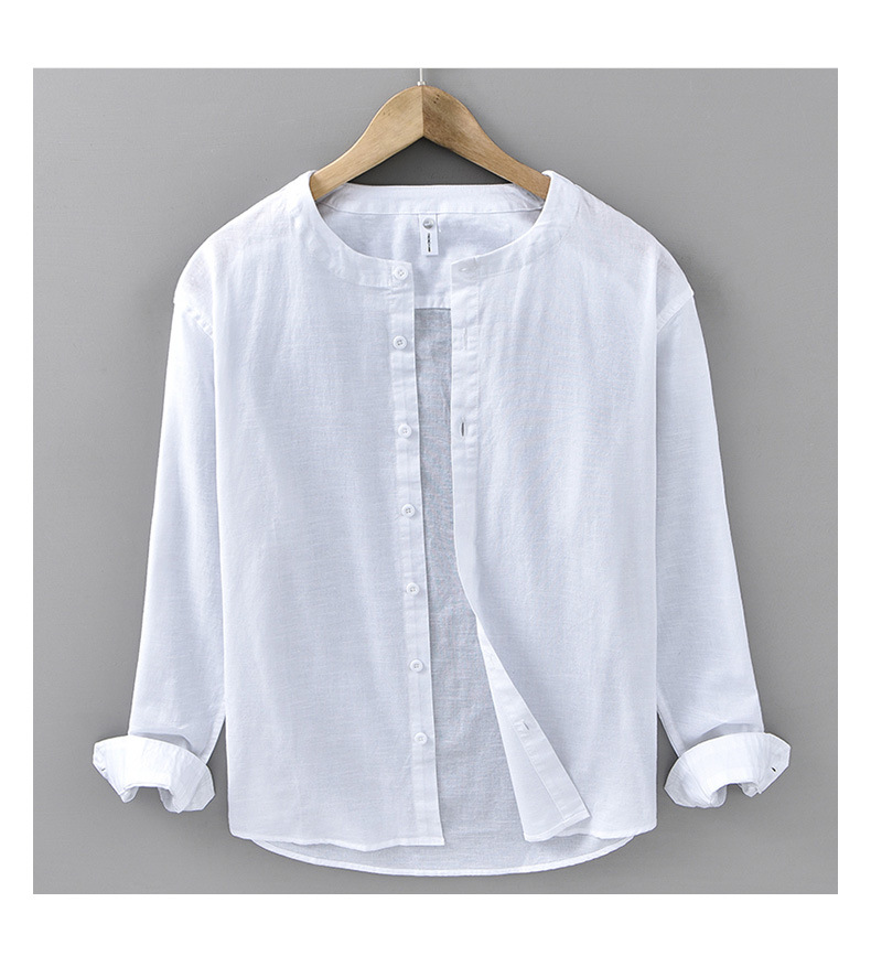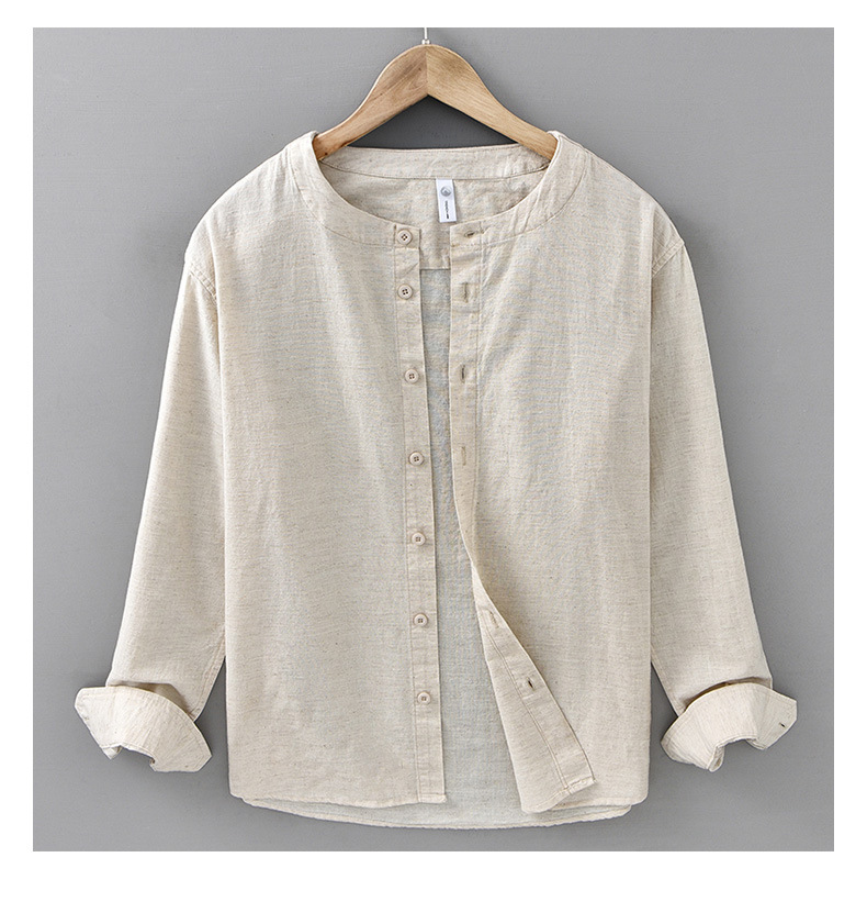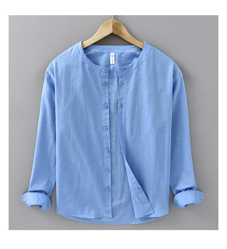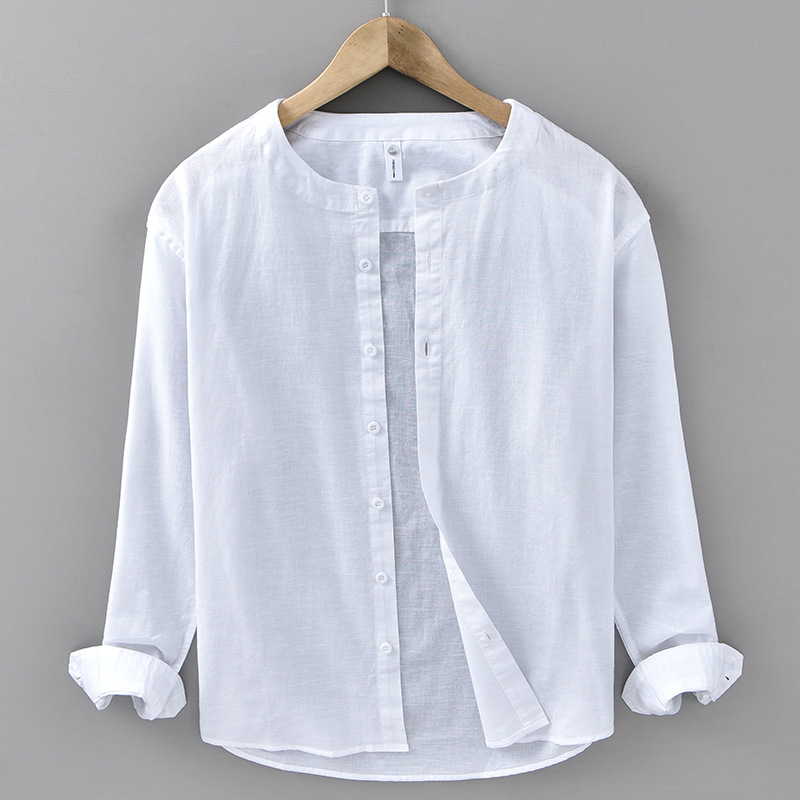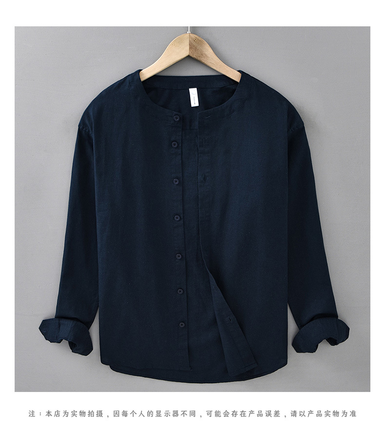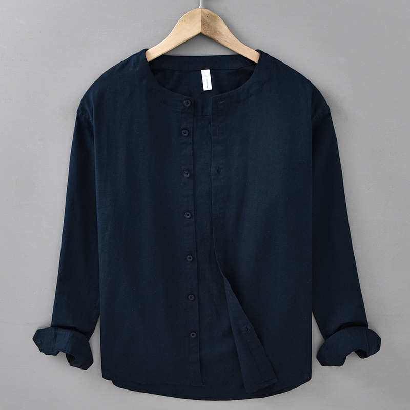 봄과 여름 리넨 긴팔 셔츠 남자 라운드 넥 캐주얼 올 매치 예술적 느슨한 일본 스타일 빈티지 코튼 및 리넨 912 셔츠스토어 가기
