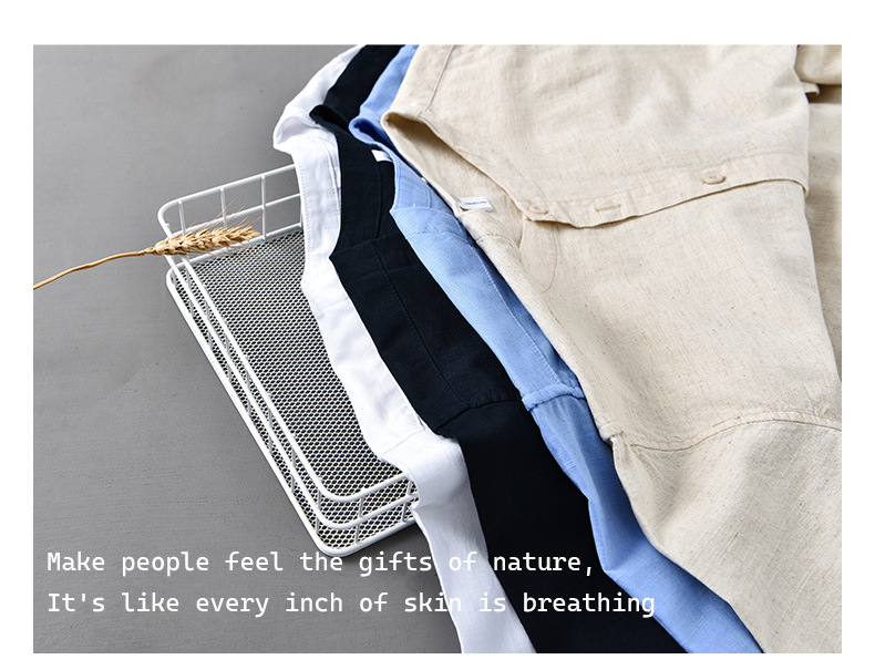 봄과 여름 리넨 긴팔 셔츠 남자 라운드 넥 캐주얼 올 매치 예술적 느슨한 일본 스타일 빈티지 코튼 및 리넨 912 셔츠