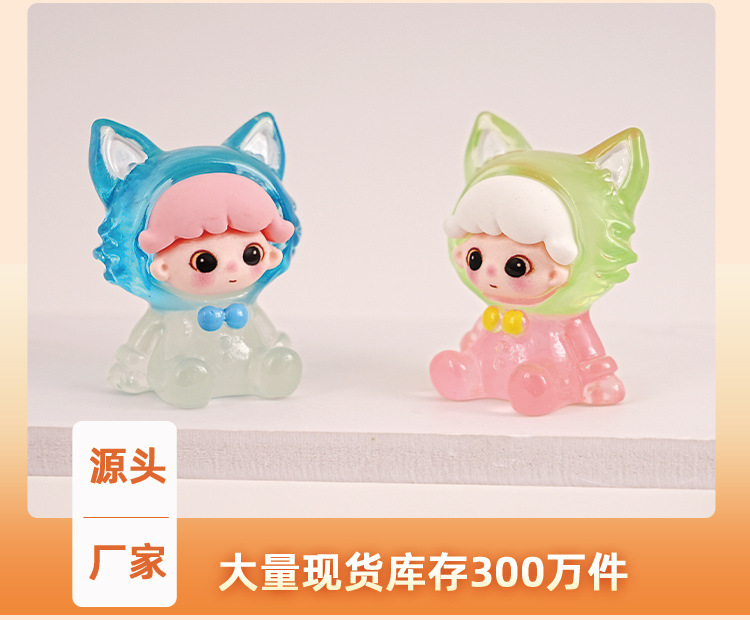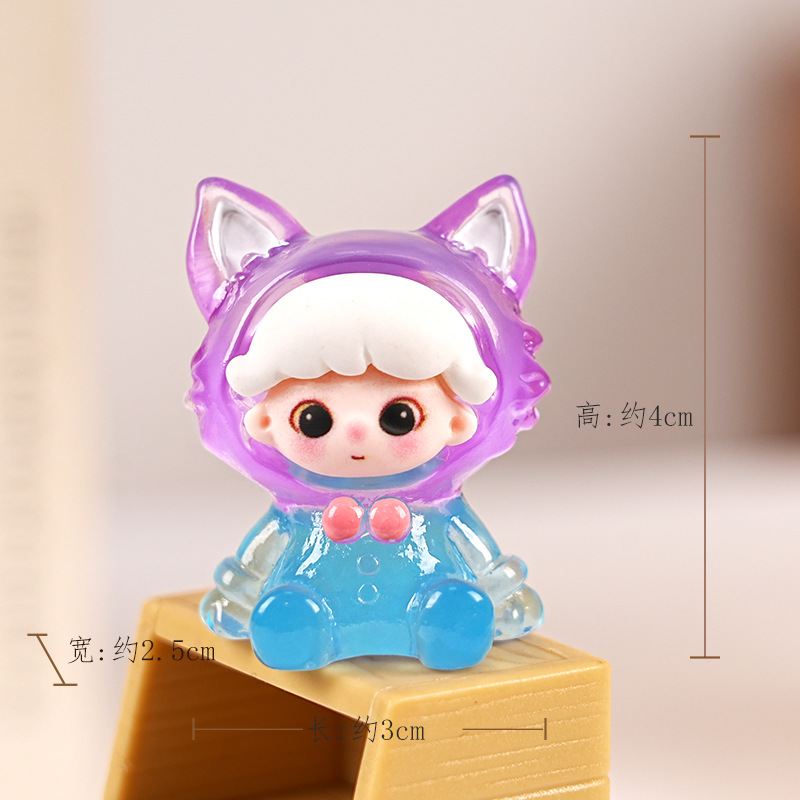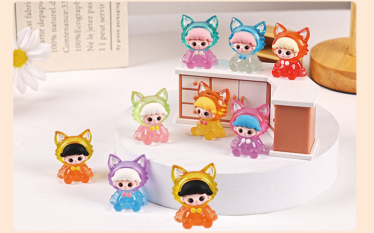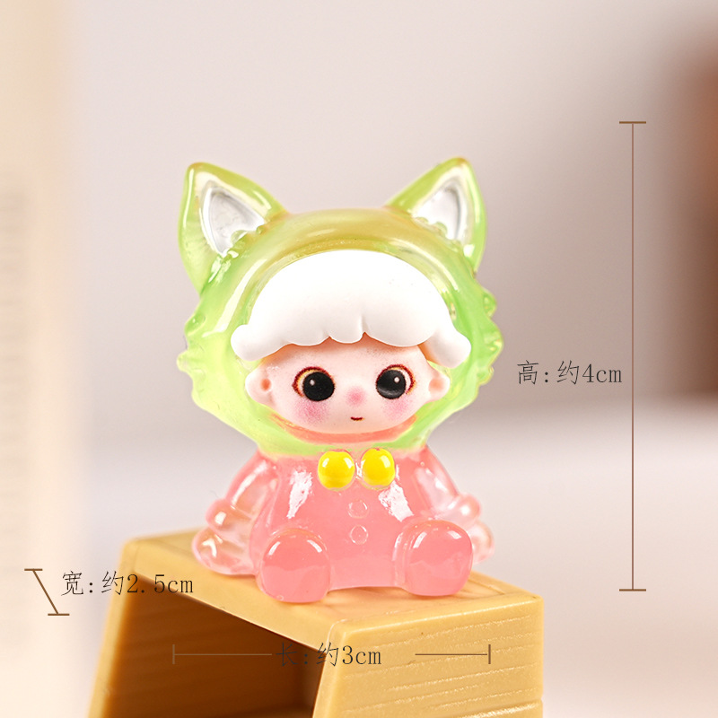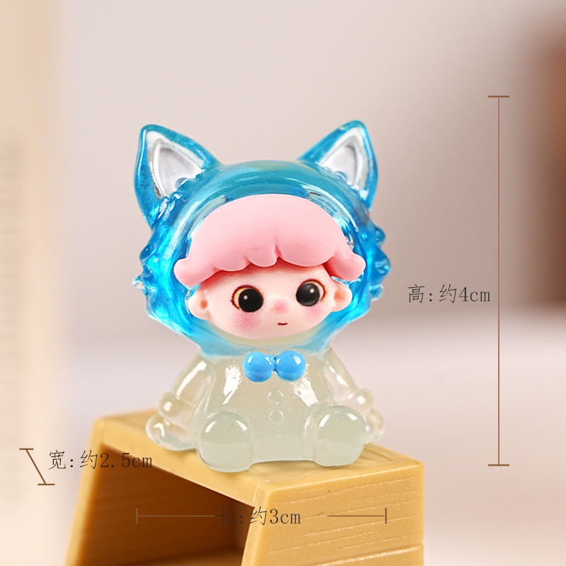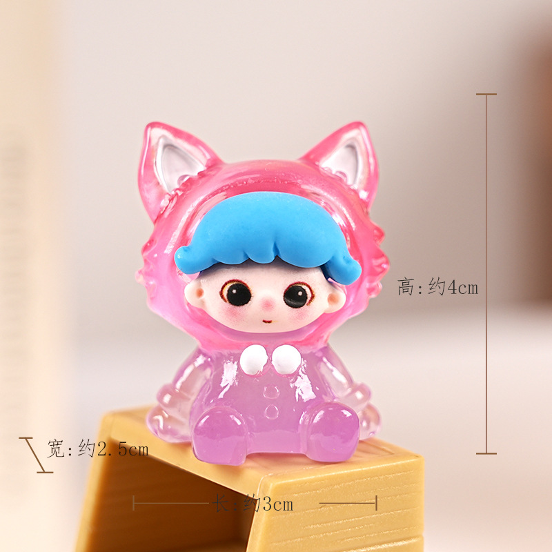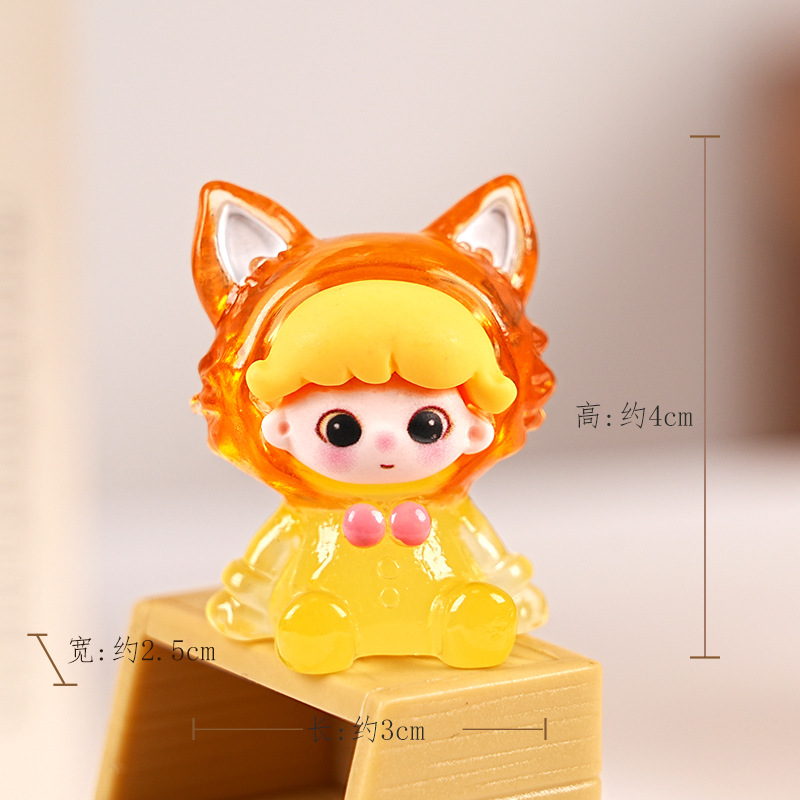 빛나는 Dimoo Fox 수지 트렌디 한 놀이 블라인드 박스 장식품 수제 DIY 데스크탑 장식 귀여운 귀여운 작은 장식품