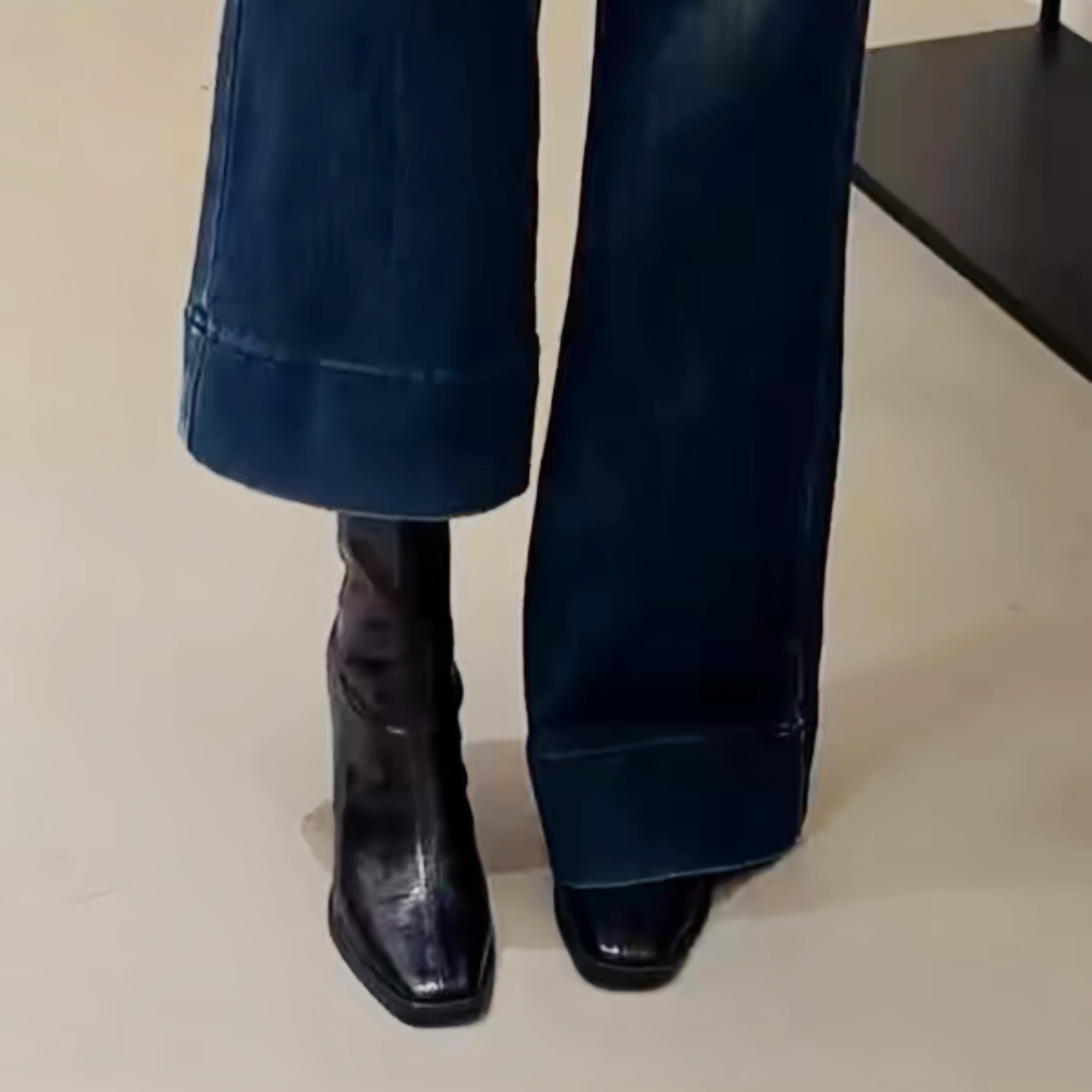 Cowhide 에디션 ~ 하이힐 부츠 여성용 2025 가을 겨울 뉴 스퀘어 발가락 마틴 부츠 작은 프랑스 두꺼운 힐 얇은 부츠스토어 가기