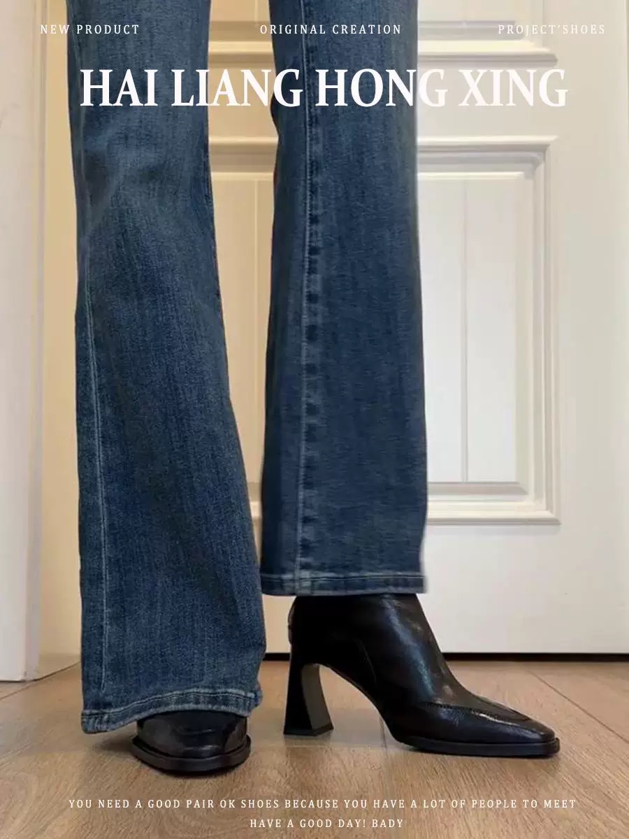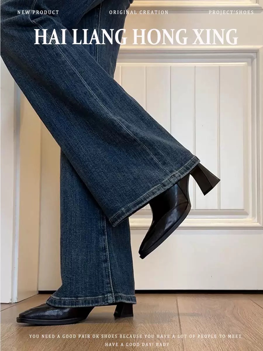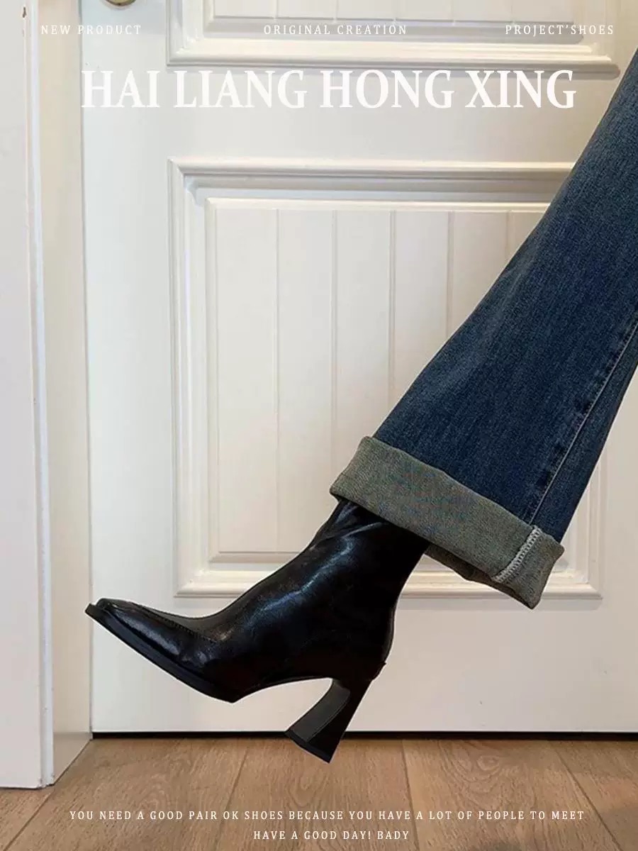 • 검정색 짧은 부츠, 단일 안감 7cm, Xiaohongshu와 동일한 스타일