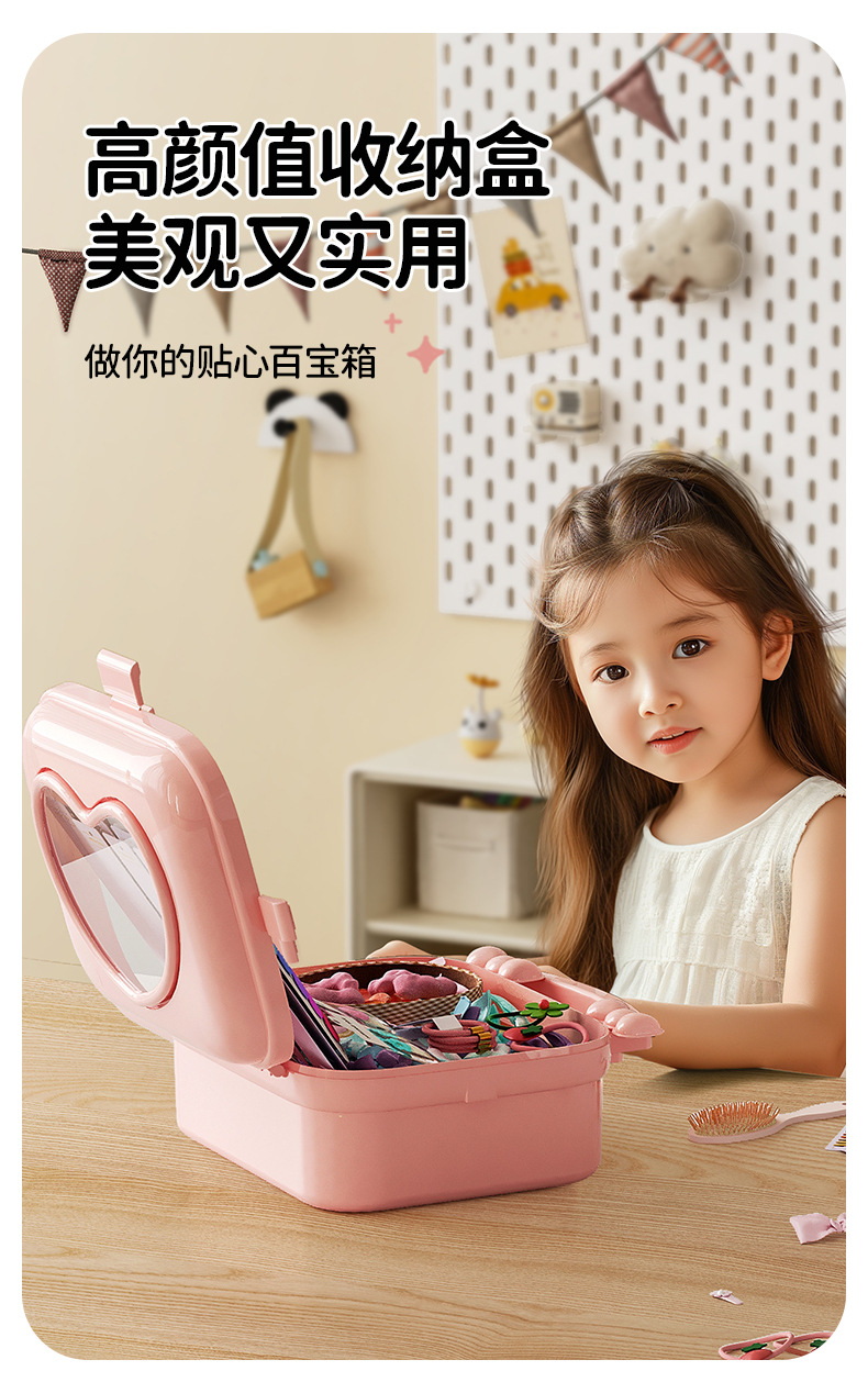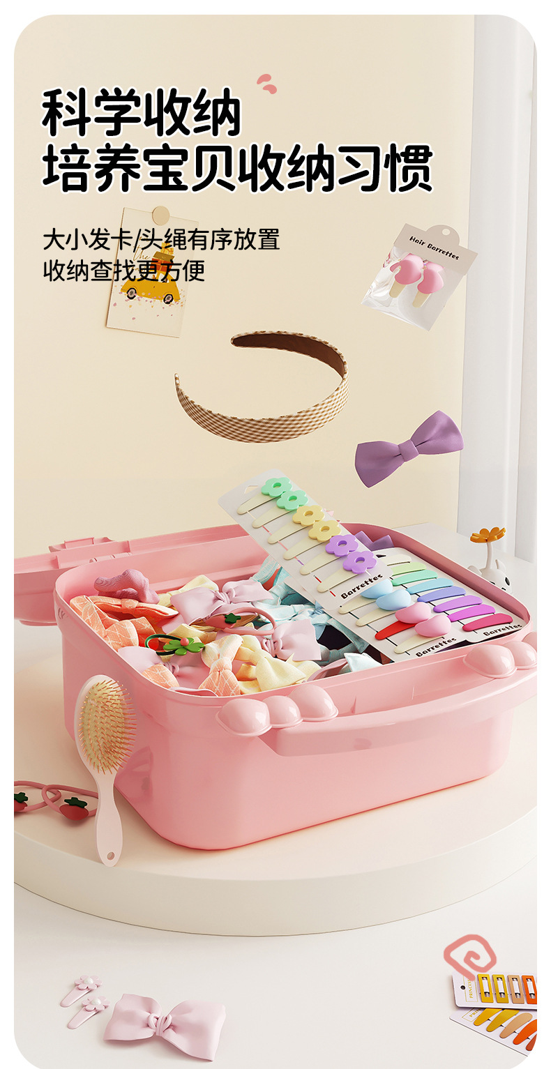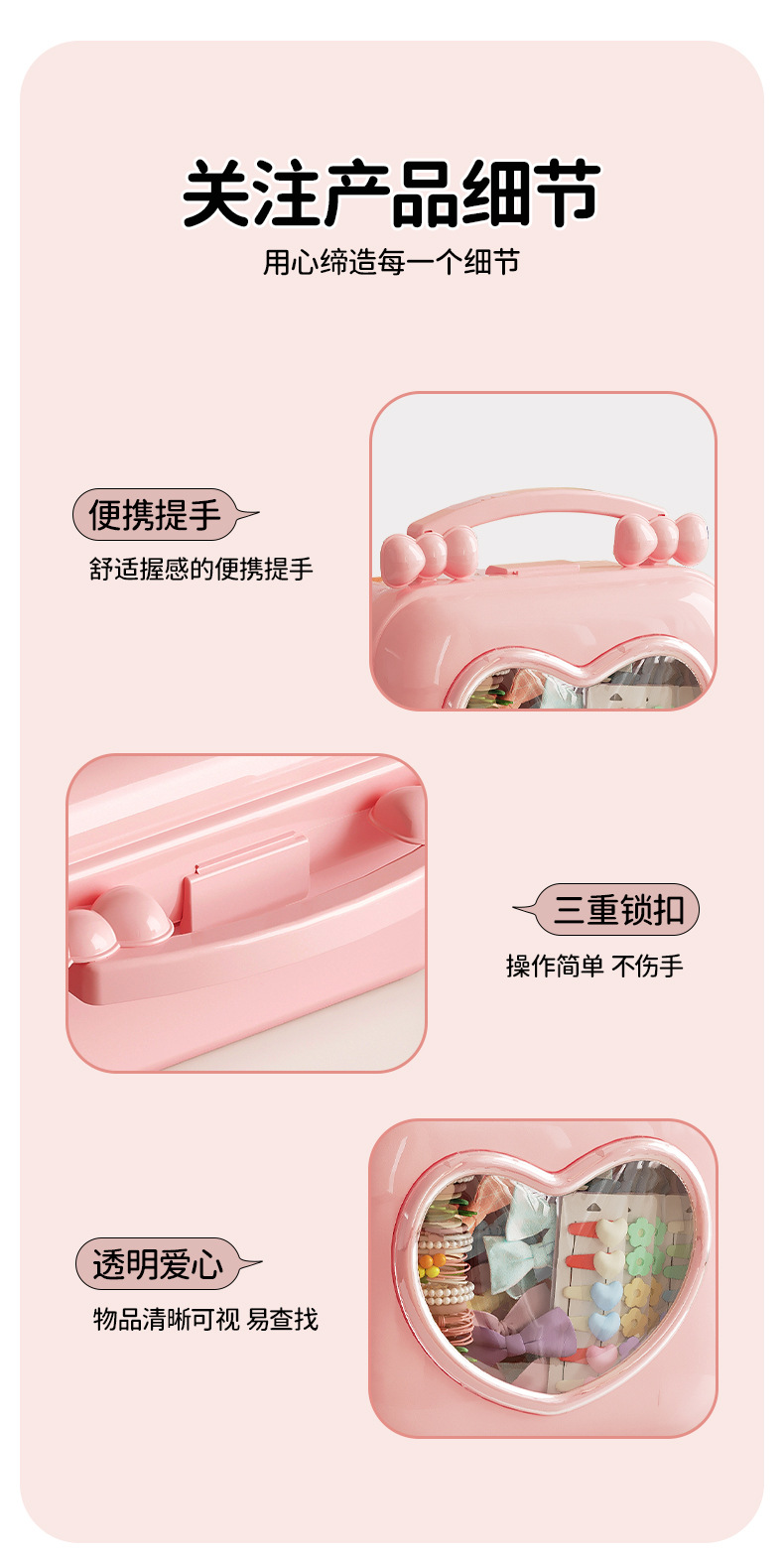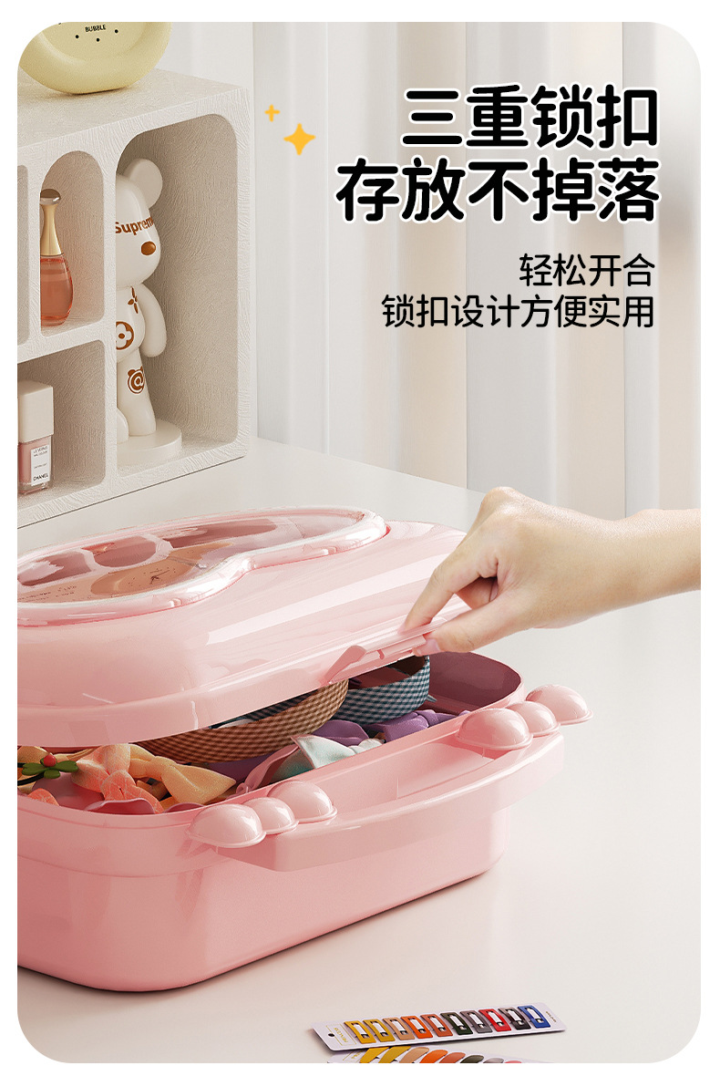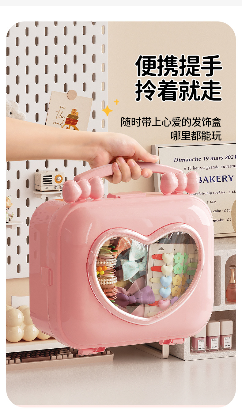 휴대용 저장 상자 귀여운 플라스틱 대형 다기능 투명 비주얼 데스크탑 어린이 헤어 액세서리 소녀 스타일 보관 상자스토어 가기