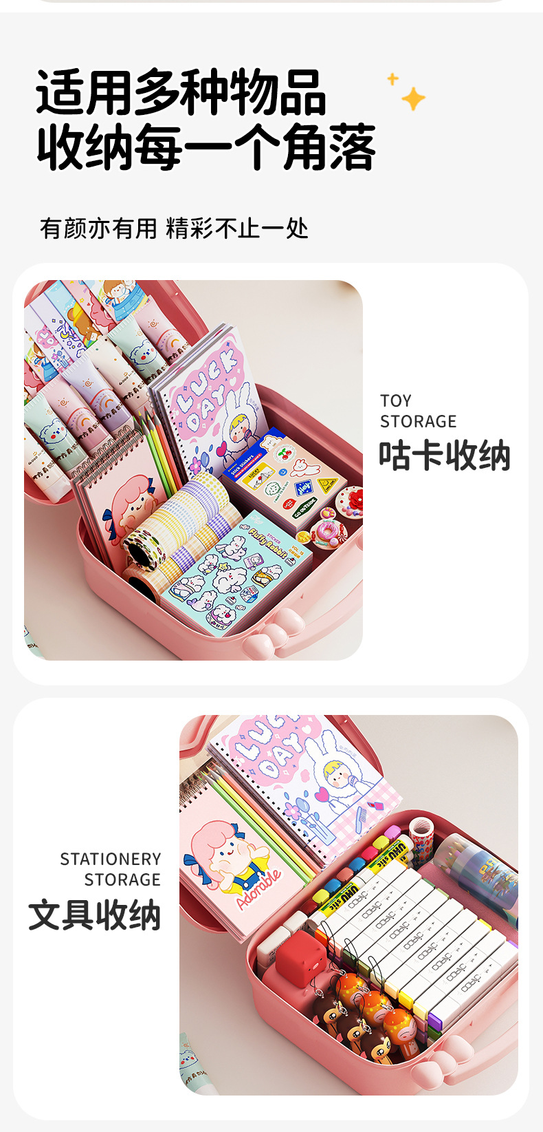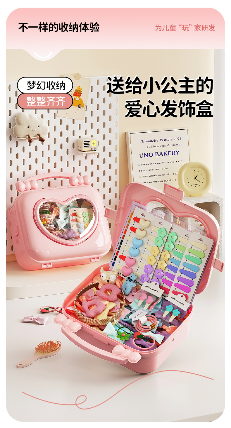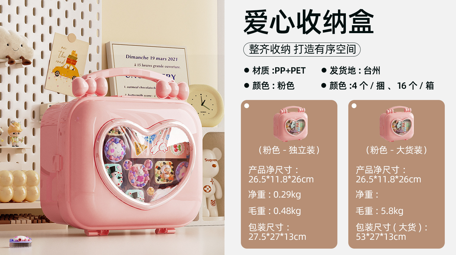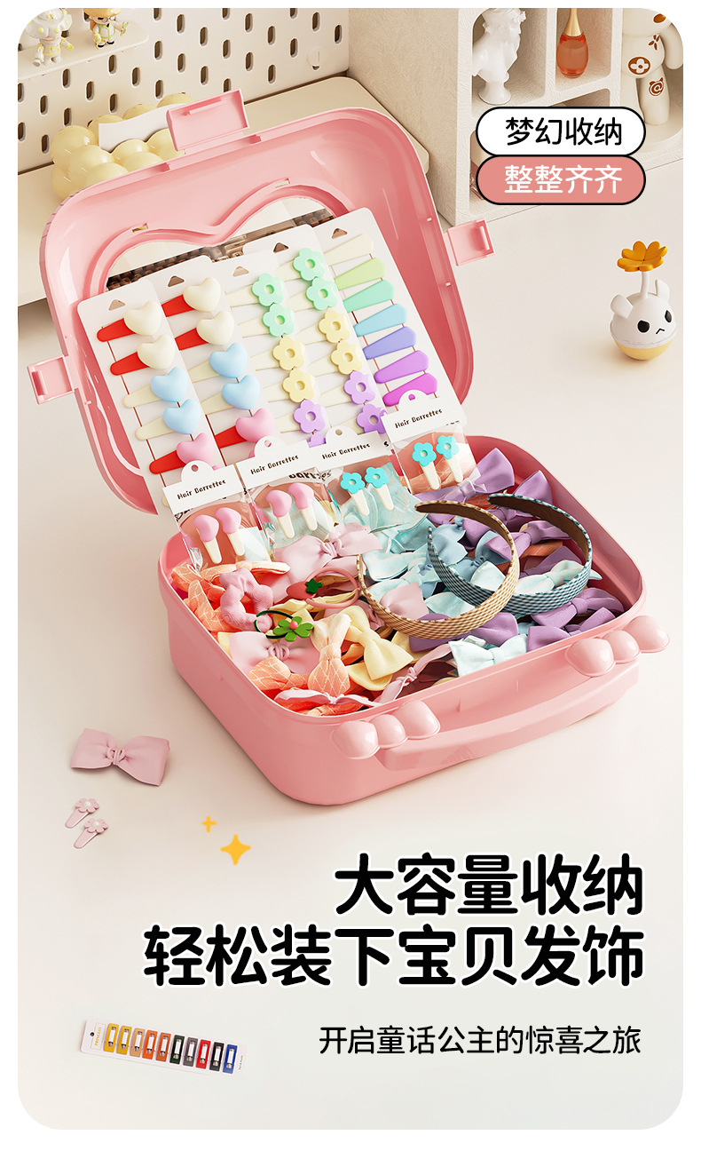 휴대용 저장 상자 귀여운 플라스틱 대형 다기능 투명 비주얼 데스크탑 어린이 헤어 액세서리 소녀 스타일 보관 상자스토어 가기