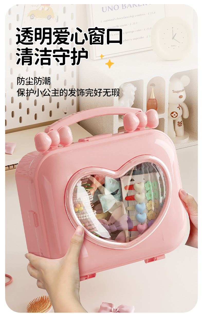 휴대용 저장 상자 귀여운 플라스틱 대형 다기능 투명 비주얼 데스크탑 어린이 헤어 액세서리 소녀 스타일 보관 상자
