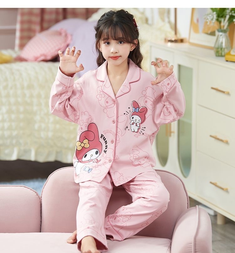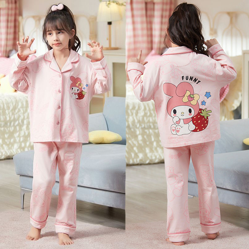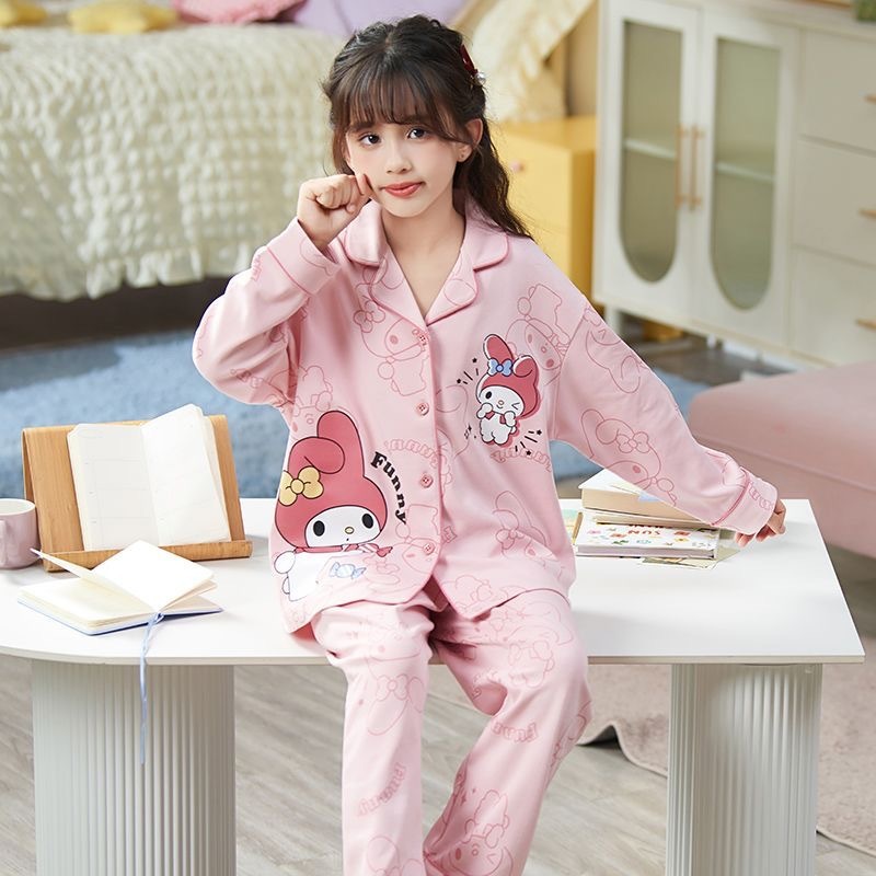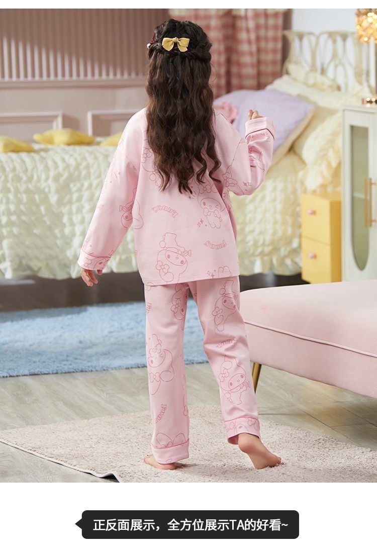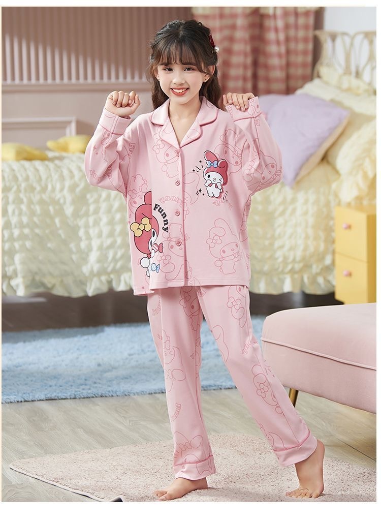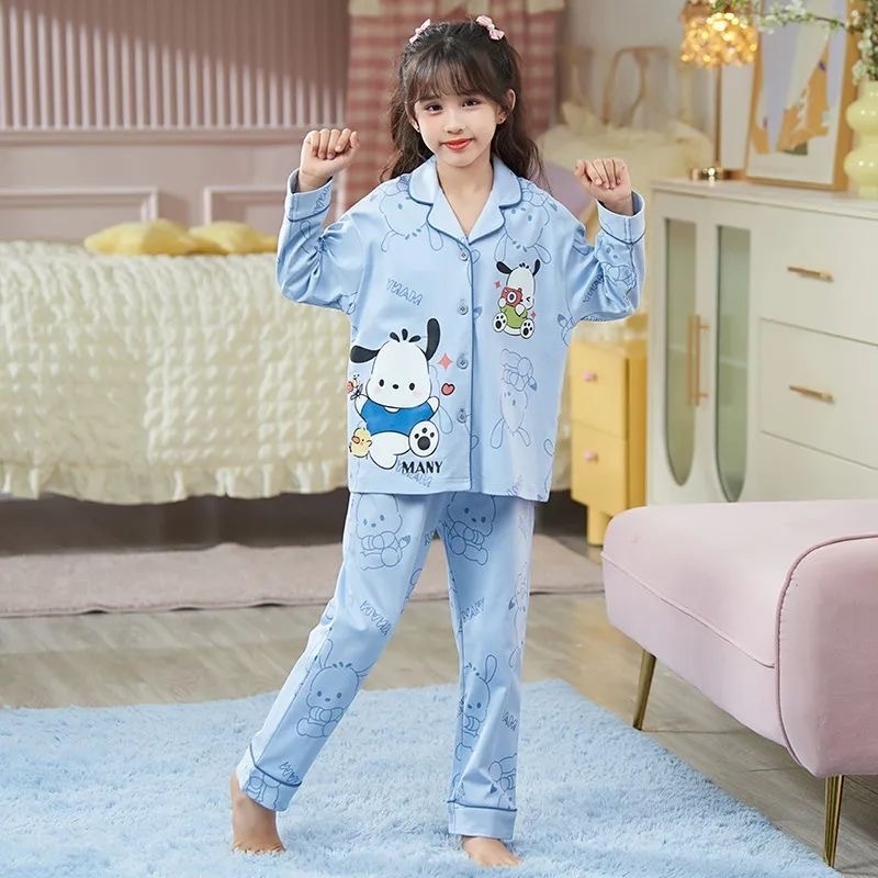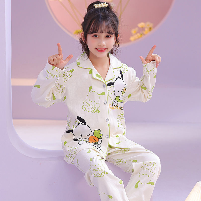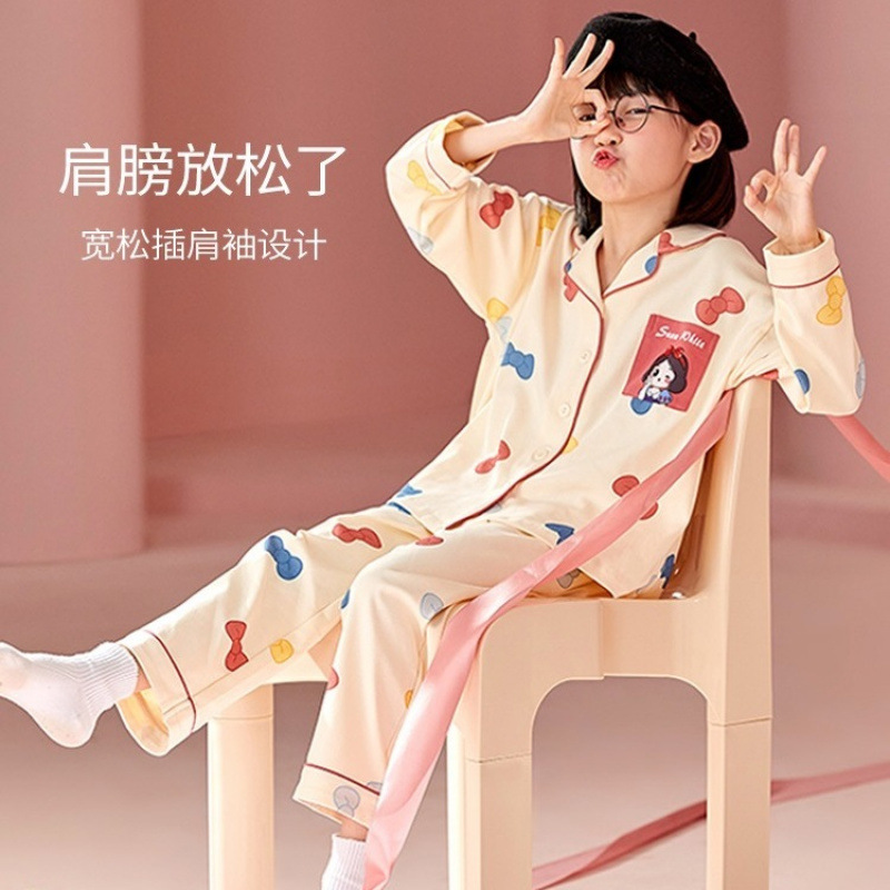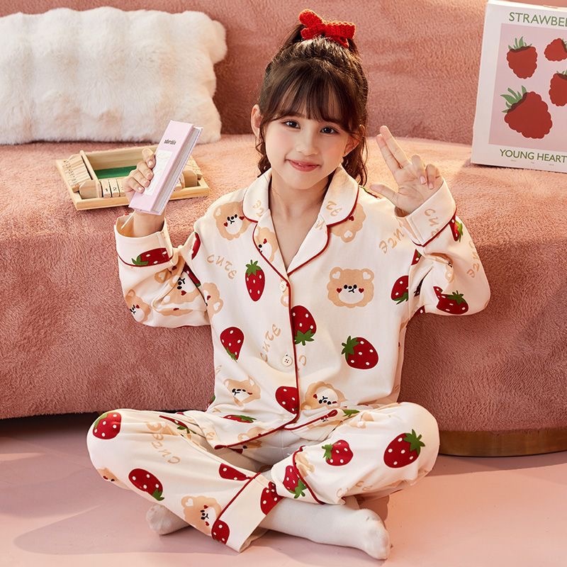 소녀 잠옷 봄과 가을 면 긴 소매 2024 새로운 어린이 가을 코튼 소녀 서양식 중학생 세트스토어 가기