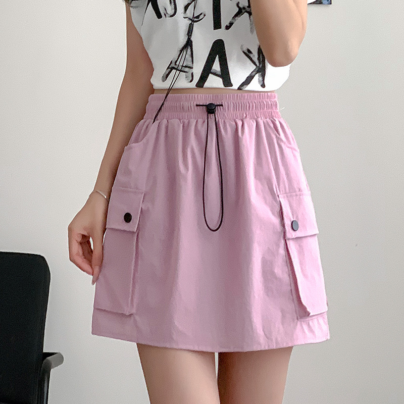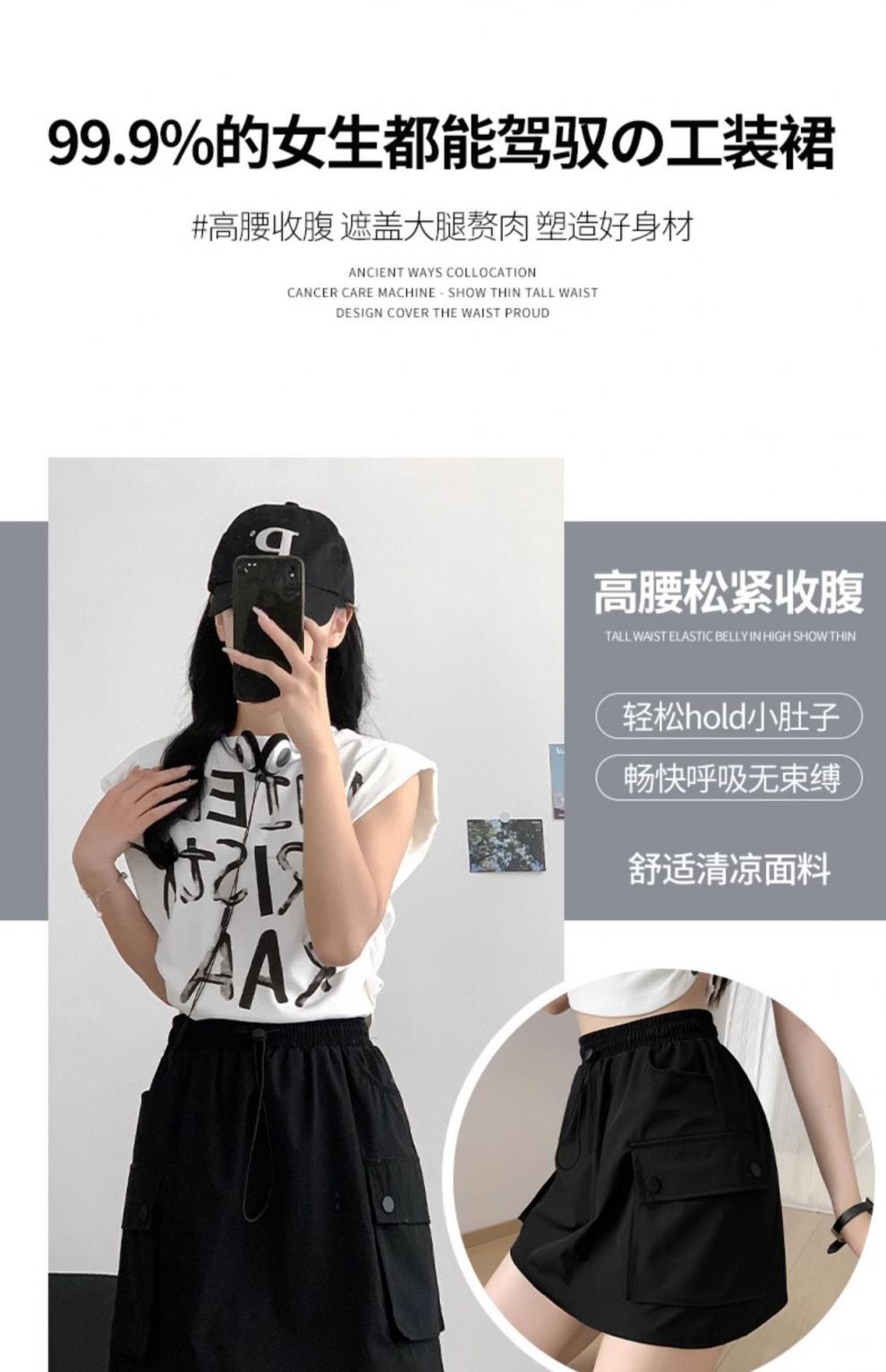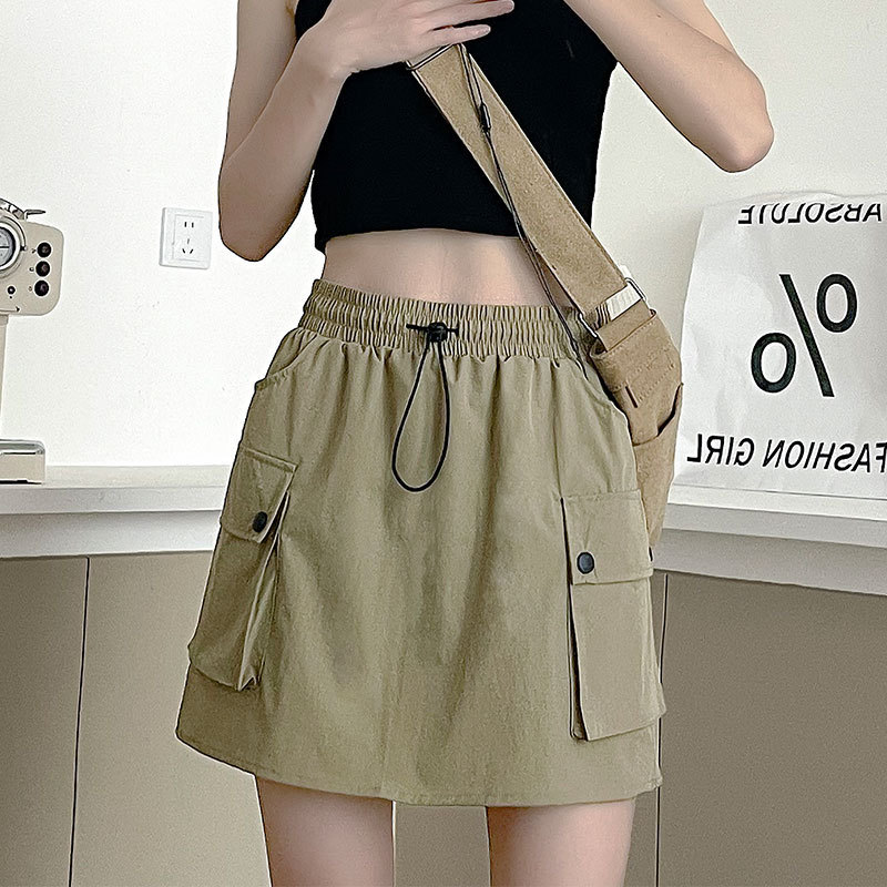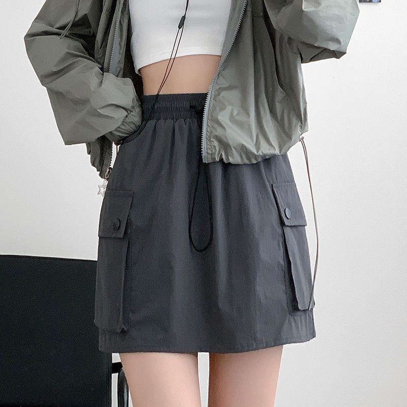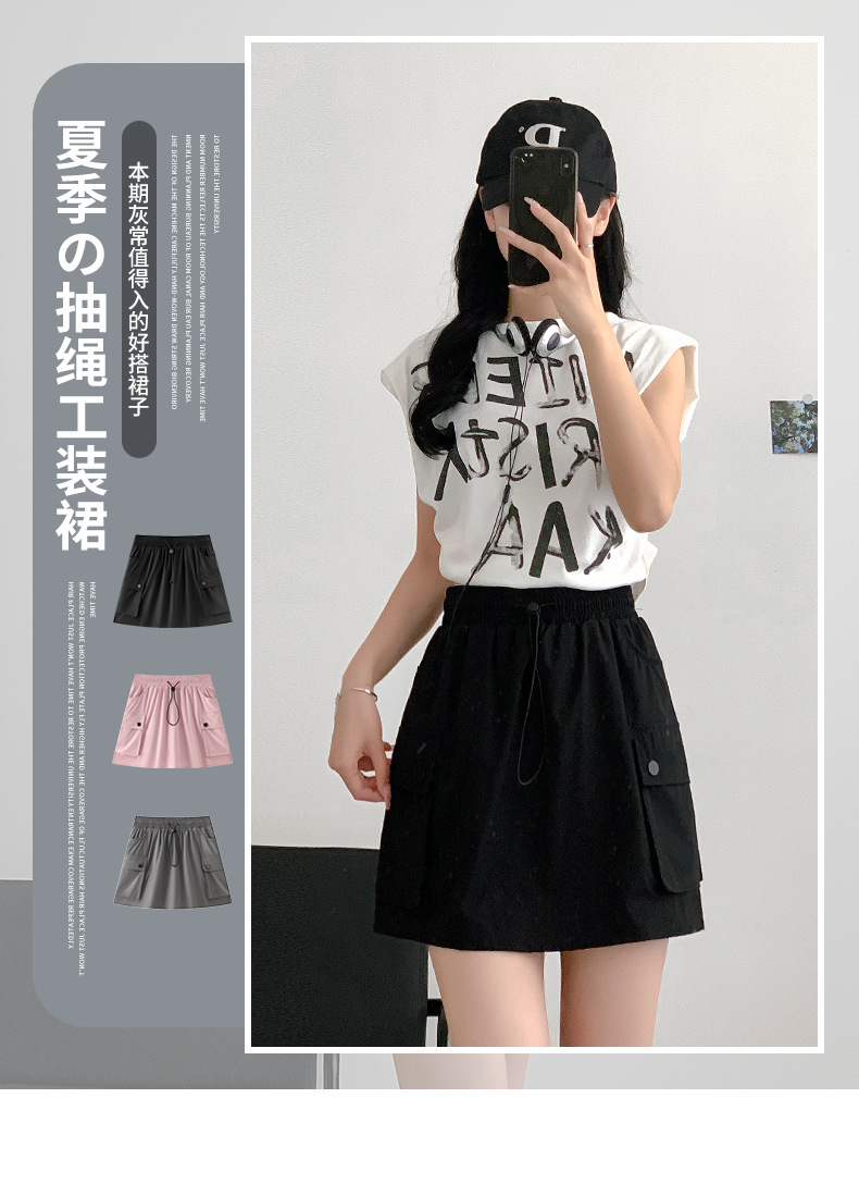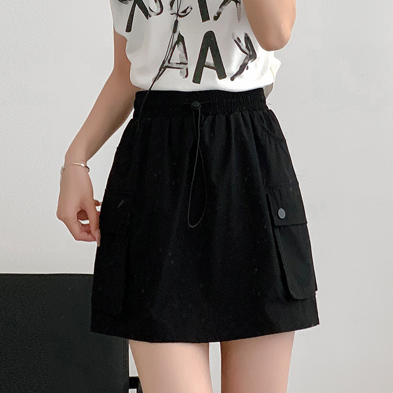 블랙 워크 스커트 여성의 여름 얇은 2024 새로운 빠른 건조 미국식 A-라인 높은 허리 슬리밍 스커트 작은 남성스토어 가기