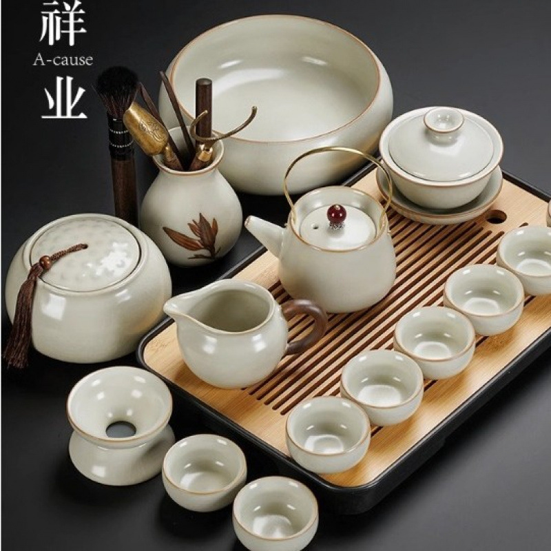 • Ru Kiln Xingyunzheng 냄비와 그릇, 컵 8개와 다도 13개 세트