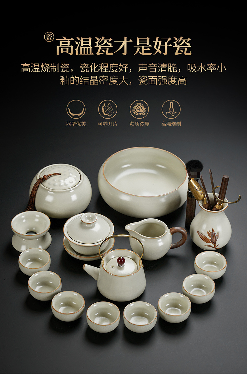 • Ru Kiln Xingyunzheng 냄비와 그릇, 컵 8개, 다도 차 캔, 차 세척 15개 세트