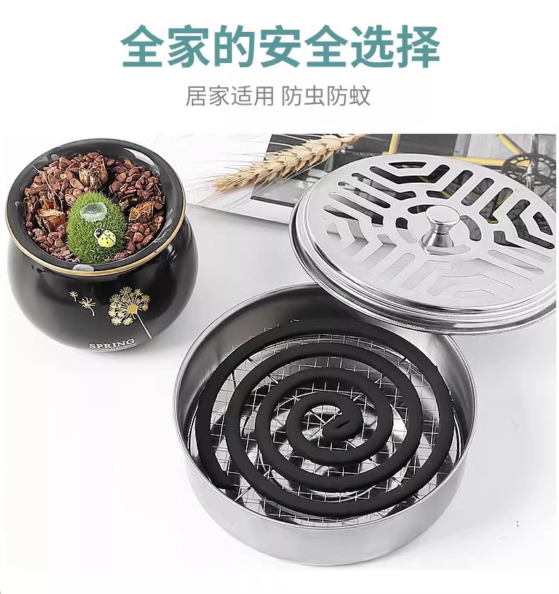 스테인레스 스틸 모기 향 트레이 브래킷 뚜껑 트레이 방화 및 안티 스케일 크리에이티브 향 버너 야외 모기 향 상자스토어 가기