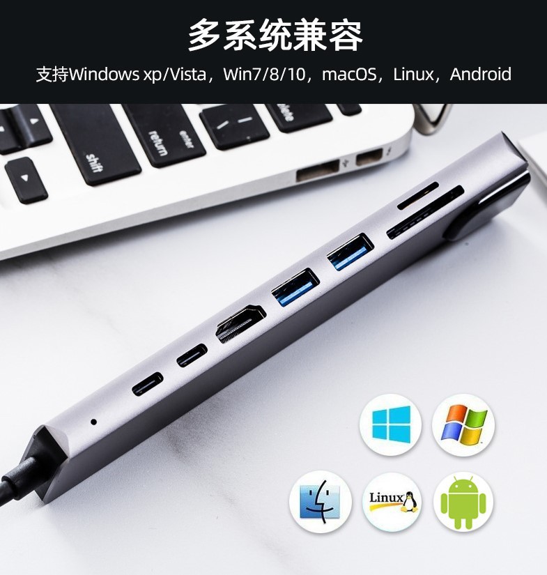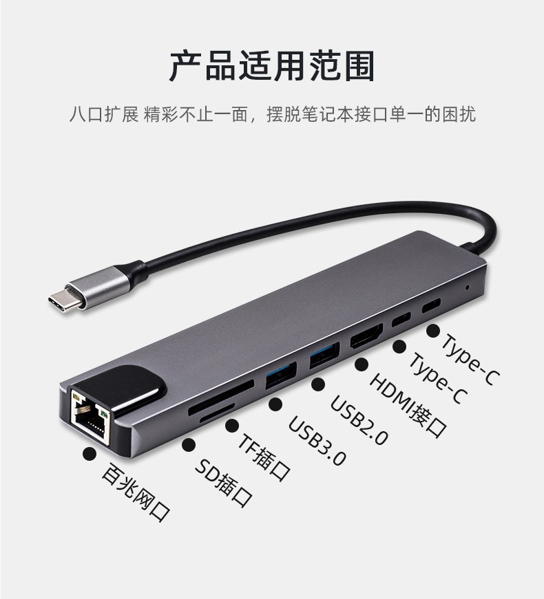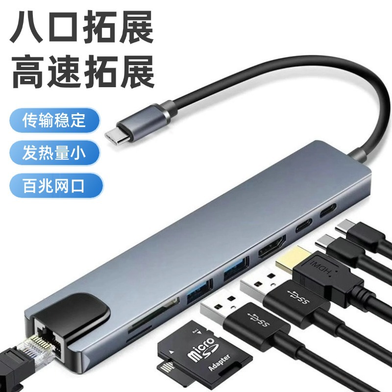 국경 TypeC 8-in -1 도킹 허브 USB-C HDMI 케이블 4K HD 화면 컴퓨터 변환기