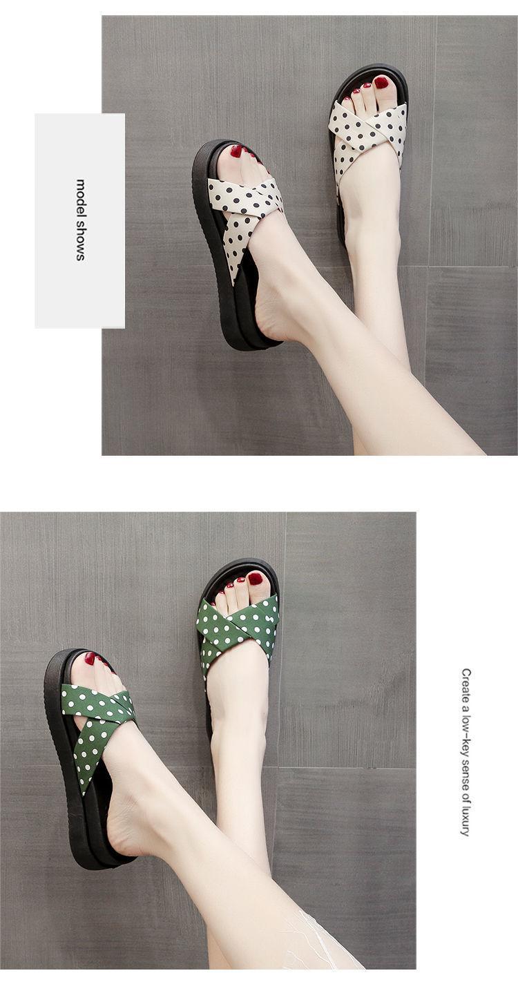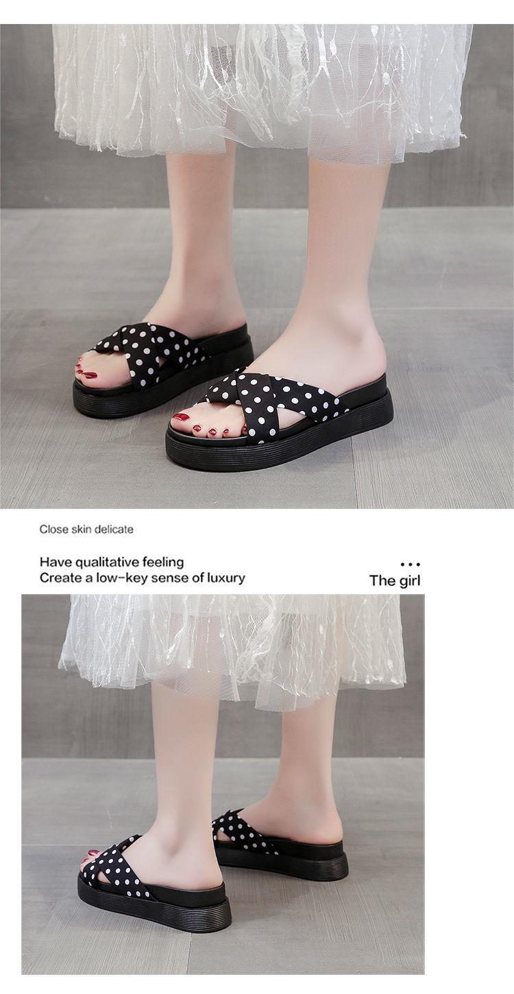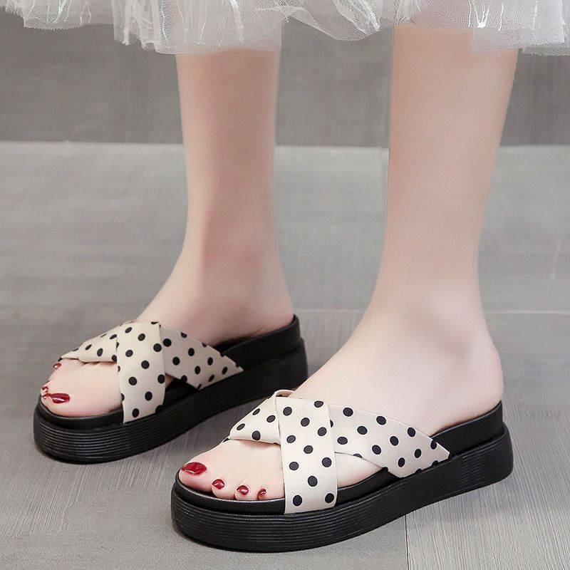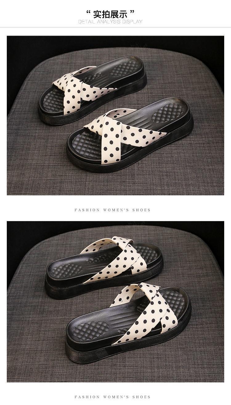 2025 새로운 슬리퍼 여성 여름 외부 착용 유행 크로스 폴로 도트 퍼핀 강화 두꺼운 밑바닥 미끄럼 방지 홈 샌들스토어 가기