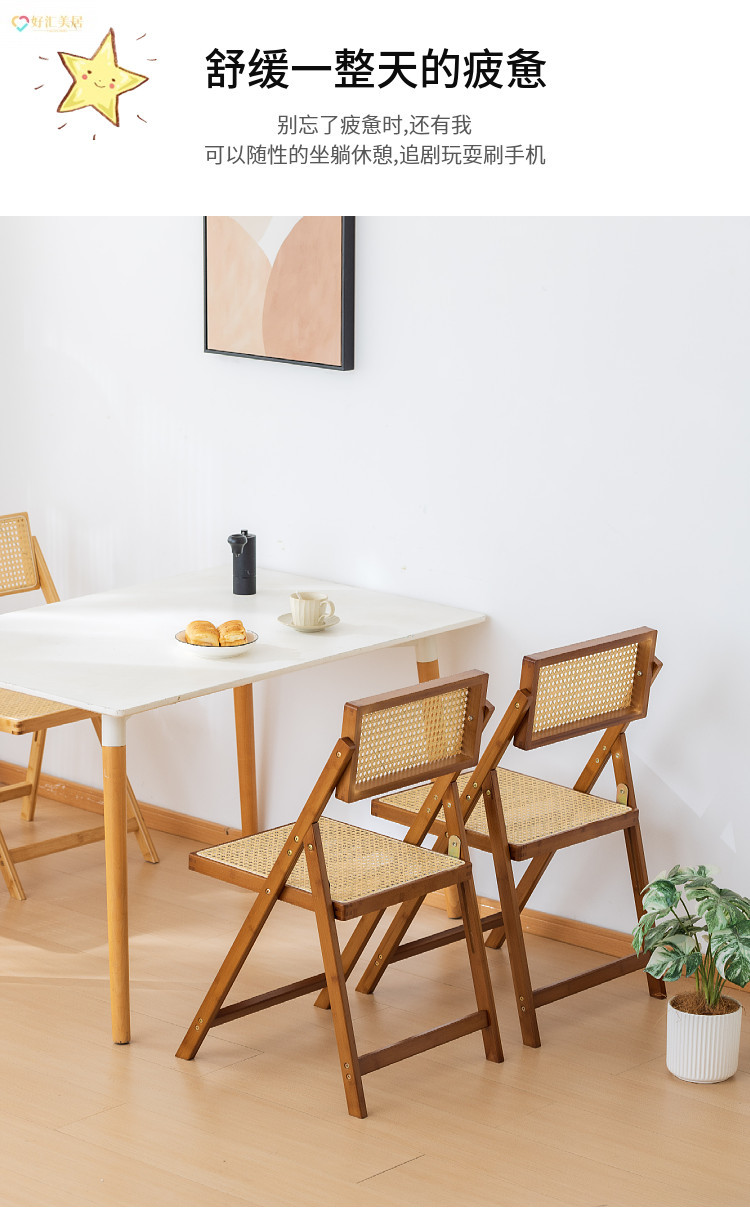 북유럽 레저 다이닝 의자 접이식 의자 의자 의자 홈 등받이 의자 등받이 소프트 가방 솔리드 우드 등나무 의자 홈스테이스토어 가기