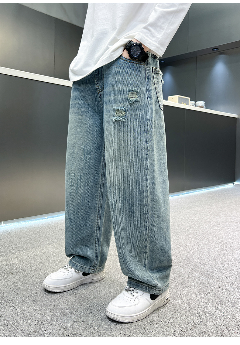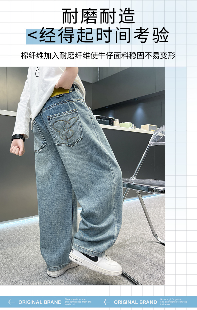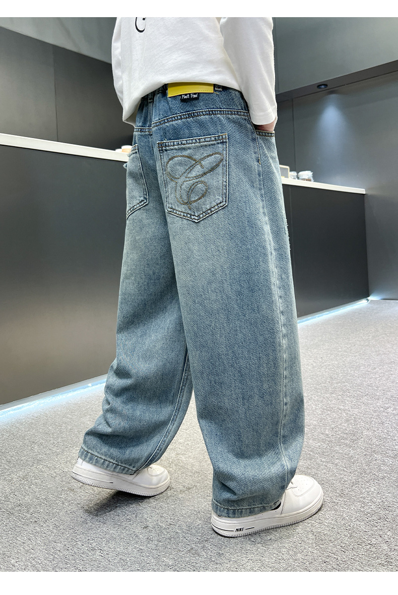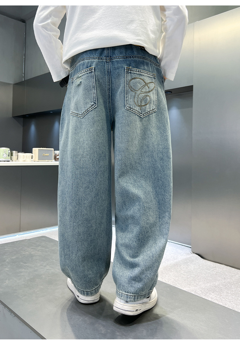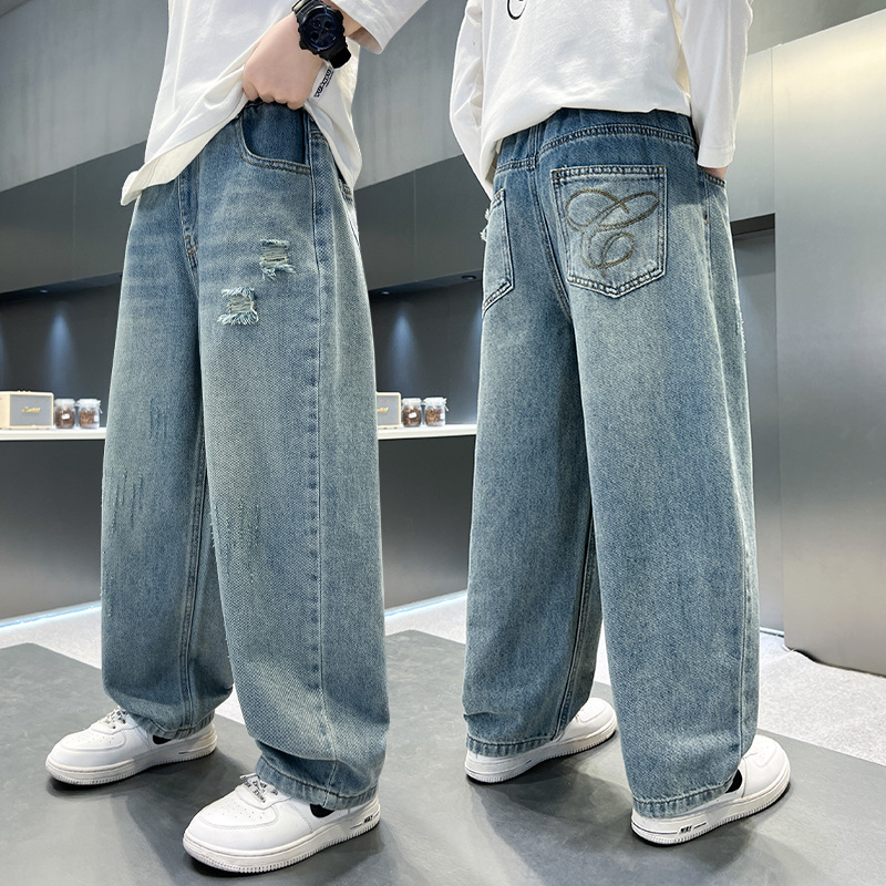 어린이 소년의 봄 바지 바지 2025 새로운 봄과 가을 중 큰 소년 봄 시원한 청바지스토어 가기