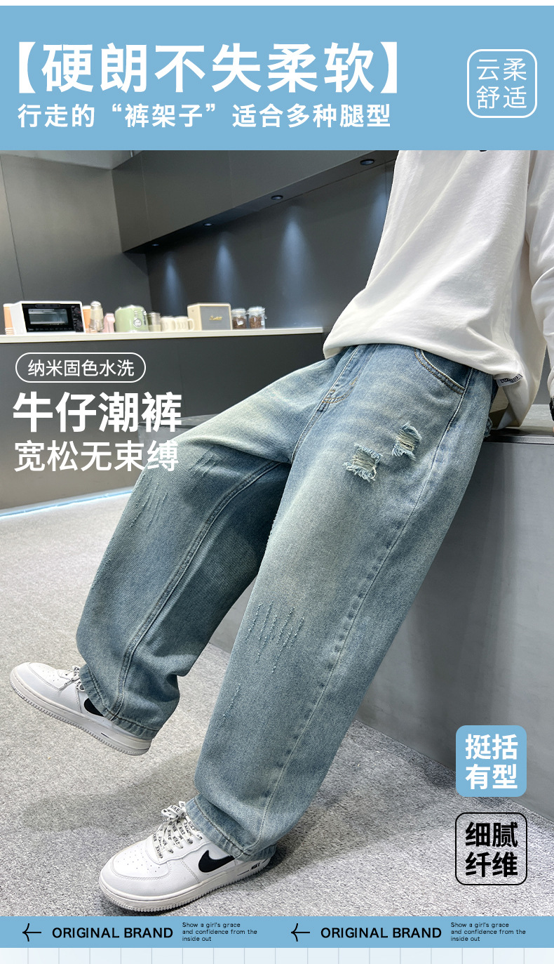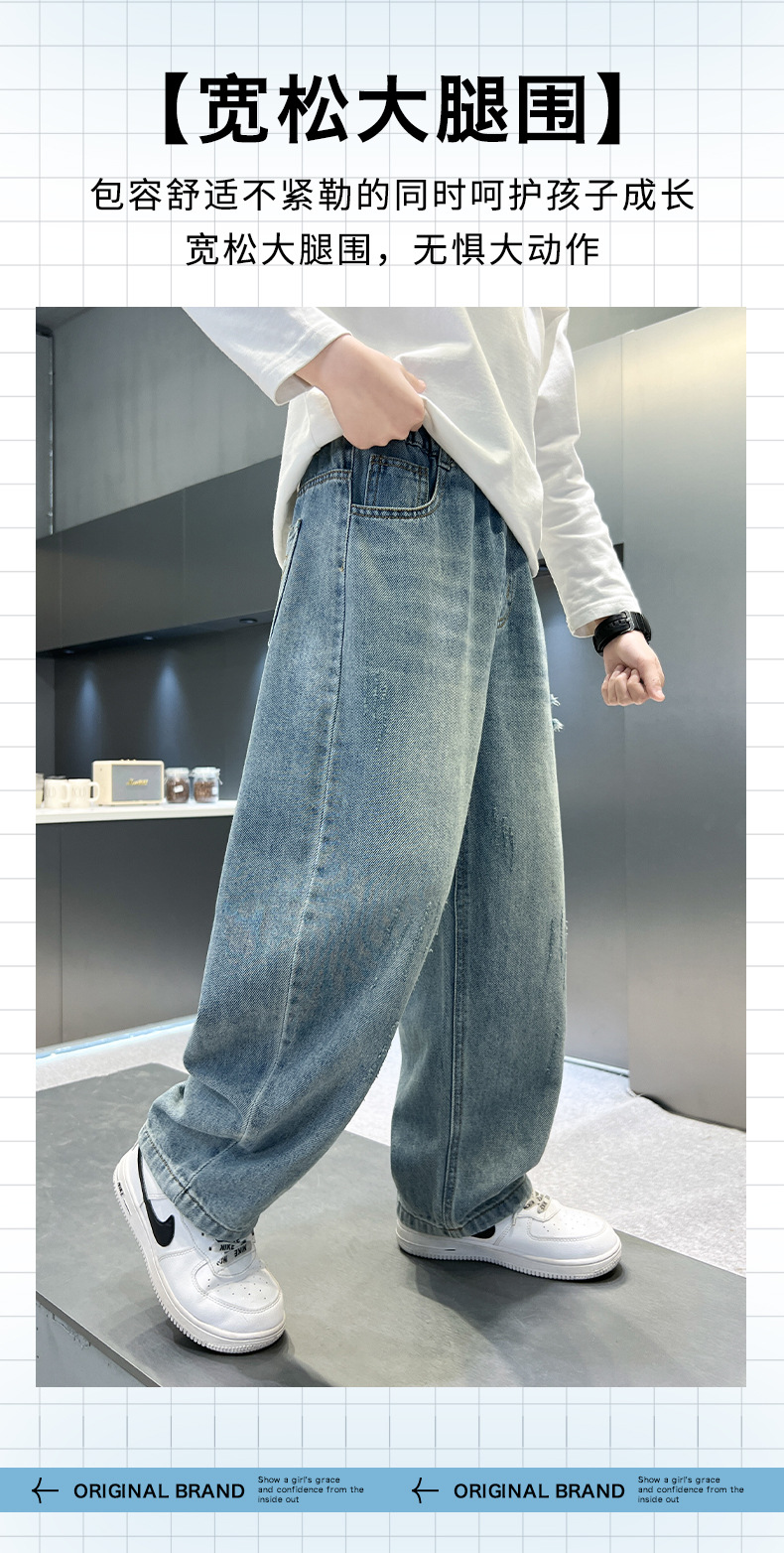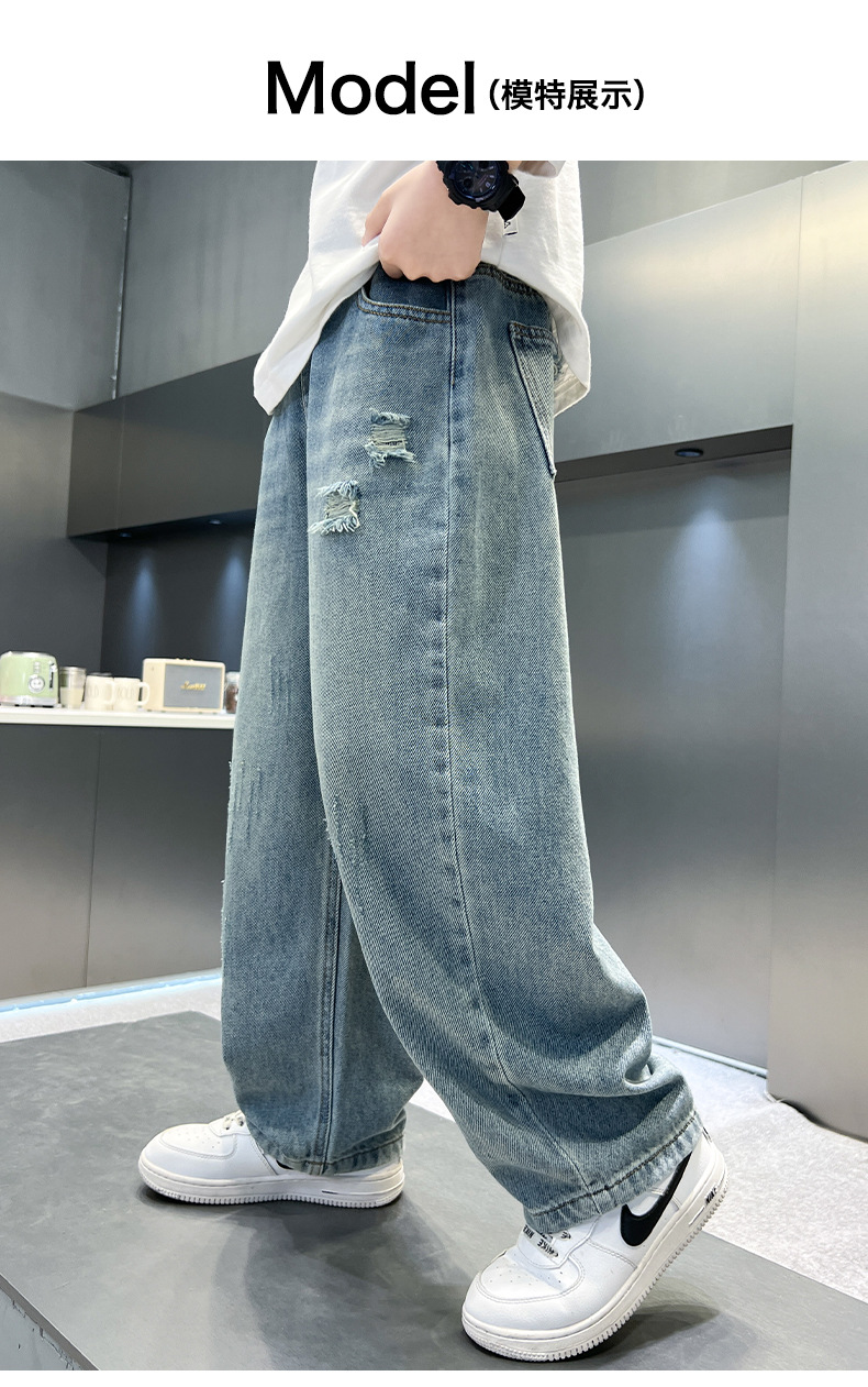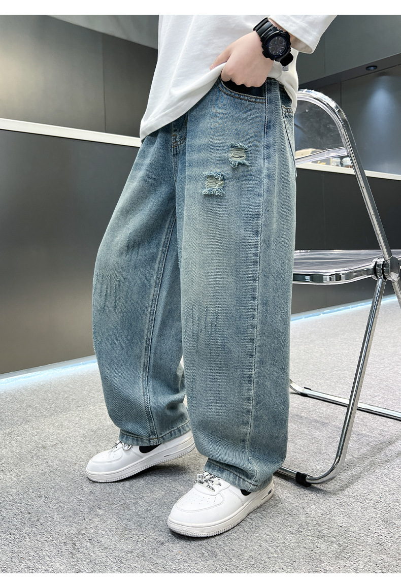 어린이 소년의 봄 바지 바지 2025 새로운 봄과 가을 중 큰 소년 봄 시원한 청바지스토어 가기