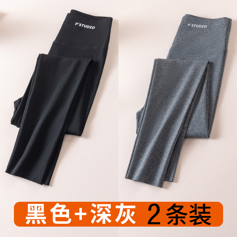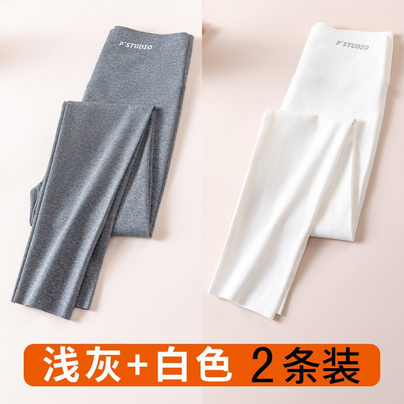면화 레깅스 여성의 새로운 봄과 가을 아우터 스트레치 얇은 높은 허리 바지 플러스 사이즈 회색 꽉 자른 바지