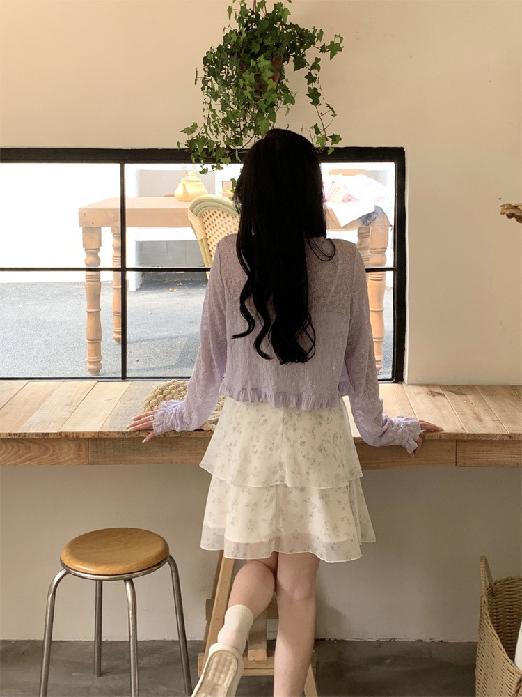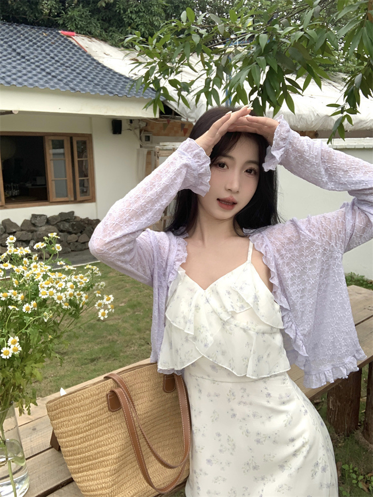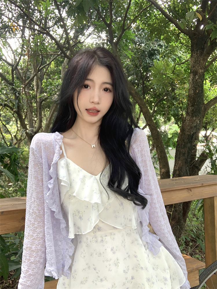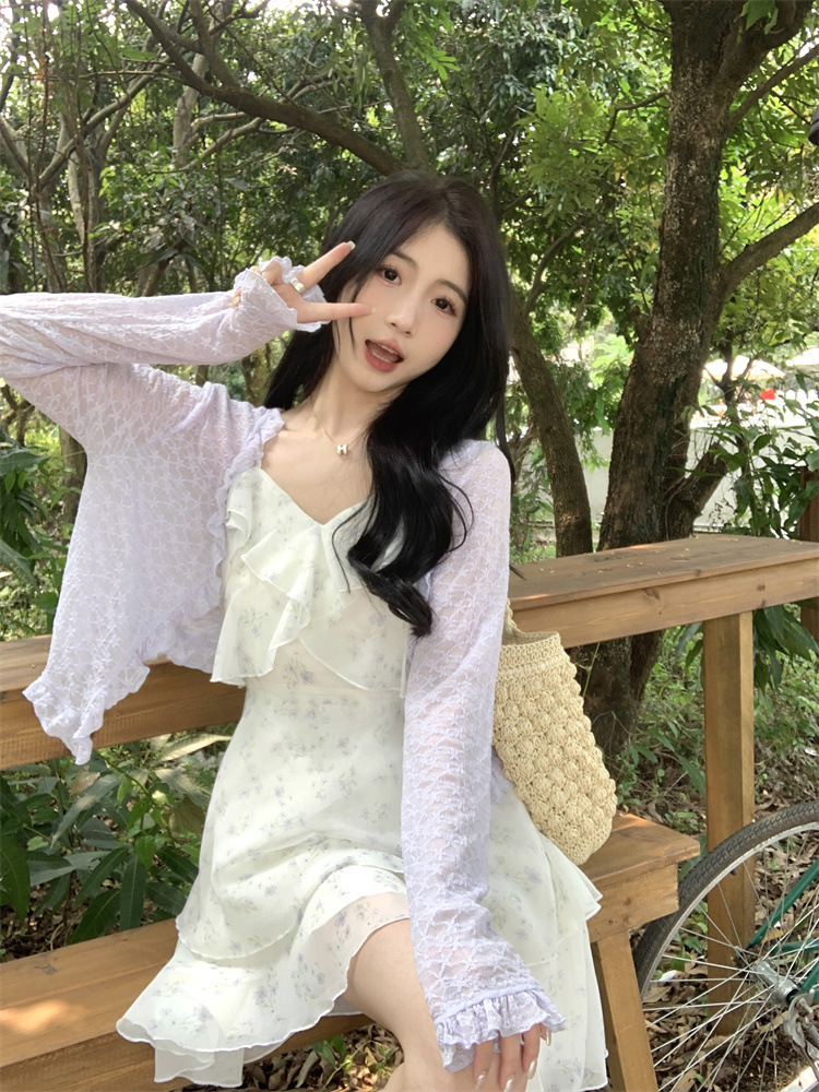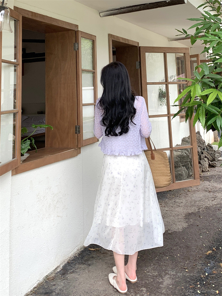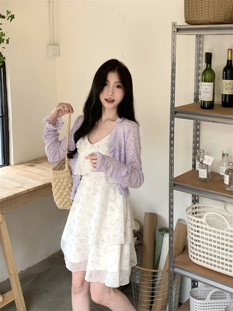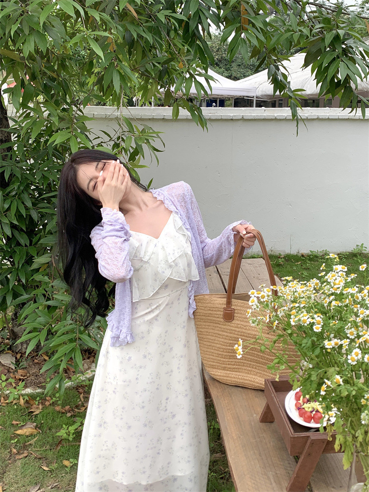 플러스 사이즈 프렌치 쉬폰 슬링 원피스 여성용 여름 스커트 통통녀 슬림 핏 세트 플로럴 원피스 투피스 세트