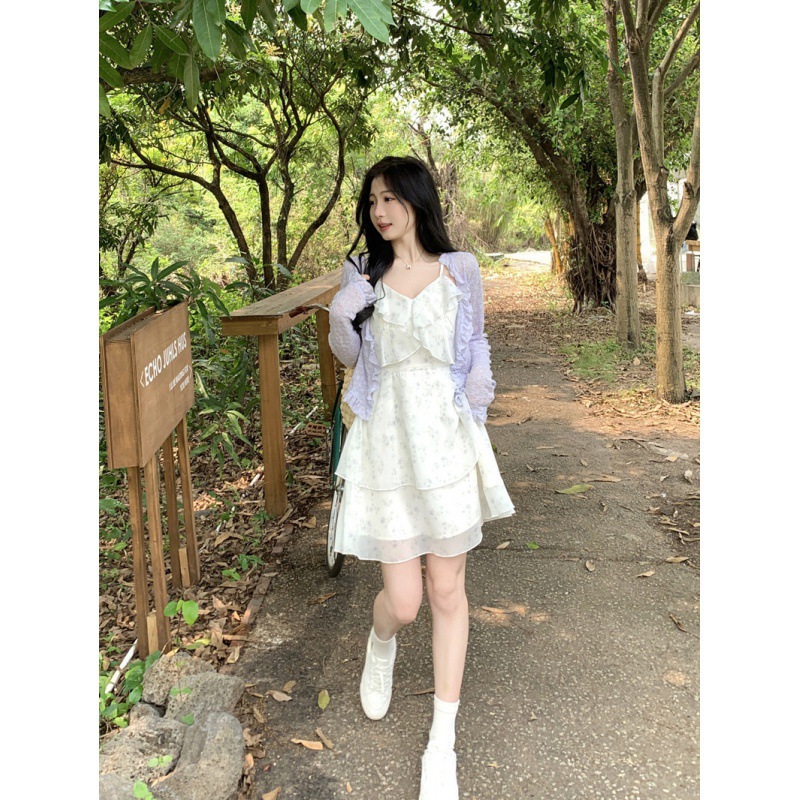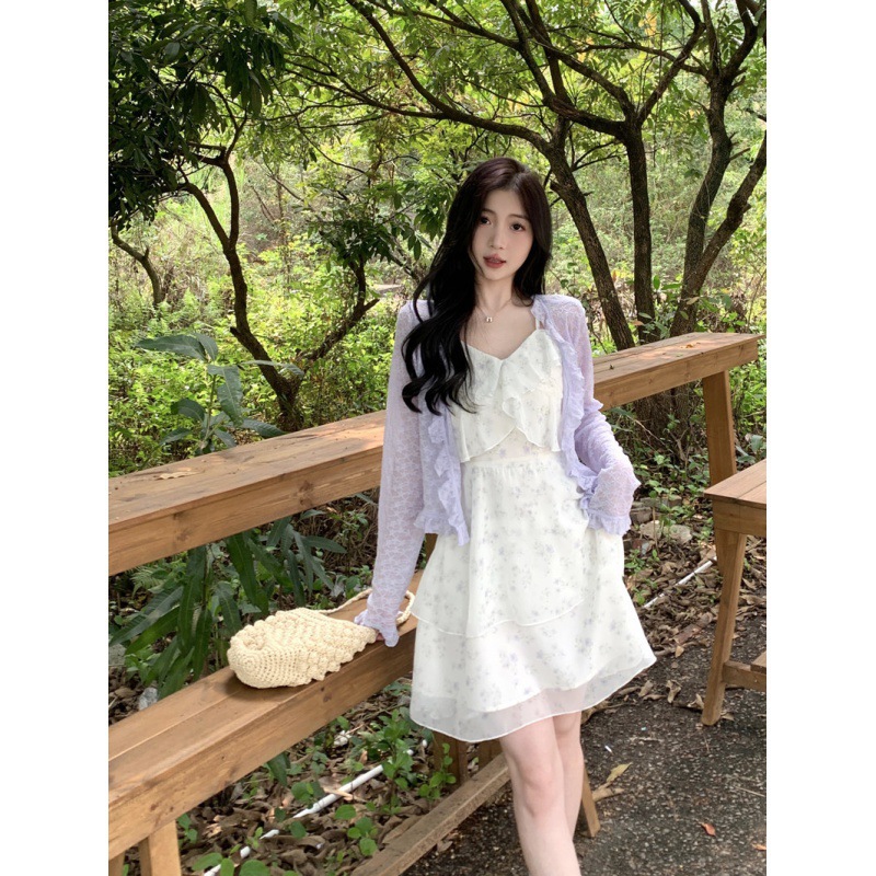 플러스 사이즈 프렌치 쉬폰 슬링 원피스 여성용 여름 스커트 통통녀 슬림 핏 세트 플로럴 원피스 투피스 세트스토어 가기