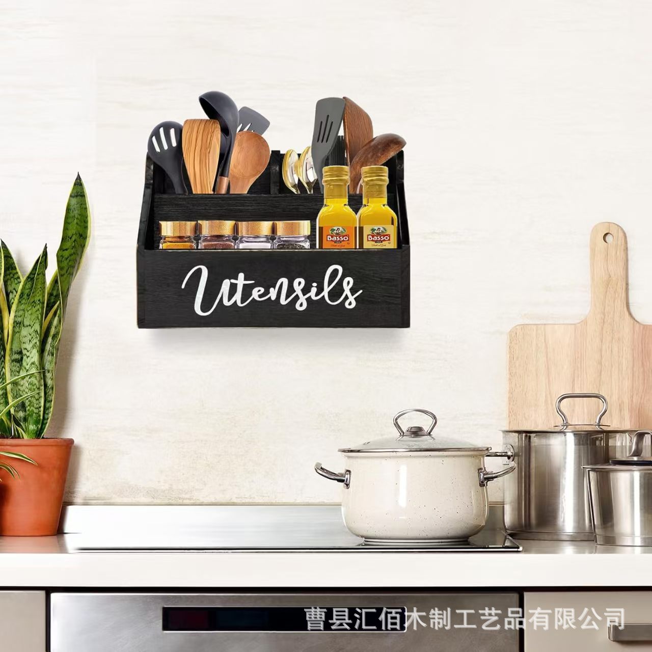 재고 나무 주방 식기 보관 상자 홈 벽 장착 주방용품 보관 상자 휴대용 조미료 보관 상자