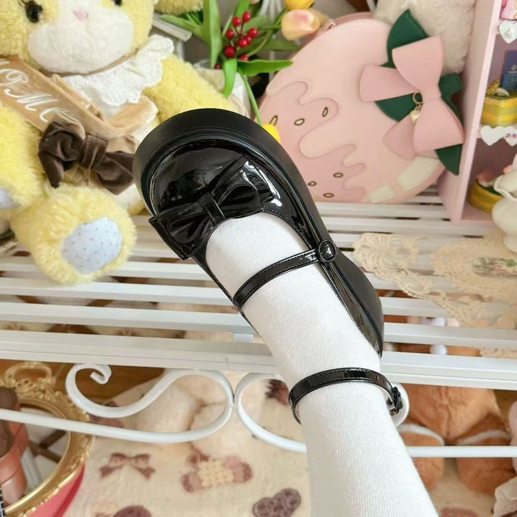 블랙 활 메리 제인 신발 2025 봄과 가을 새로운 라운드 헤드 버클 아이보리 로퍼 작은 가죽 신발스토어 가기