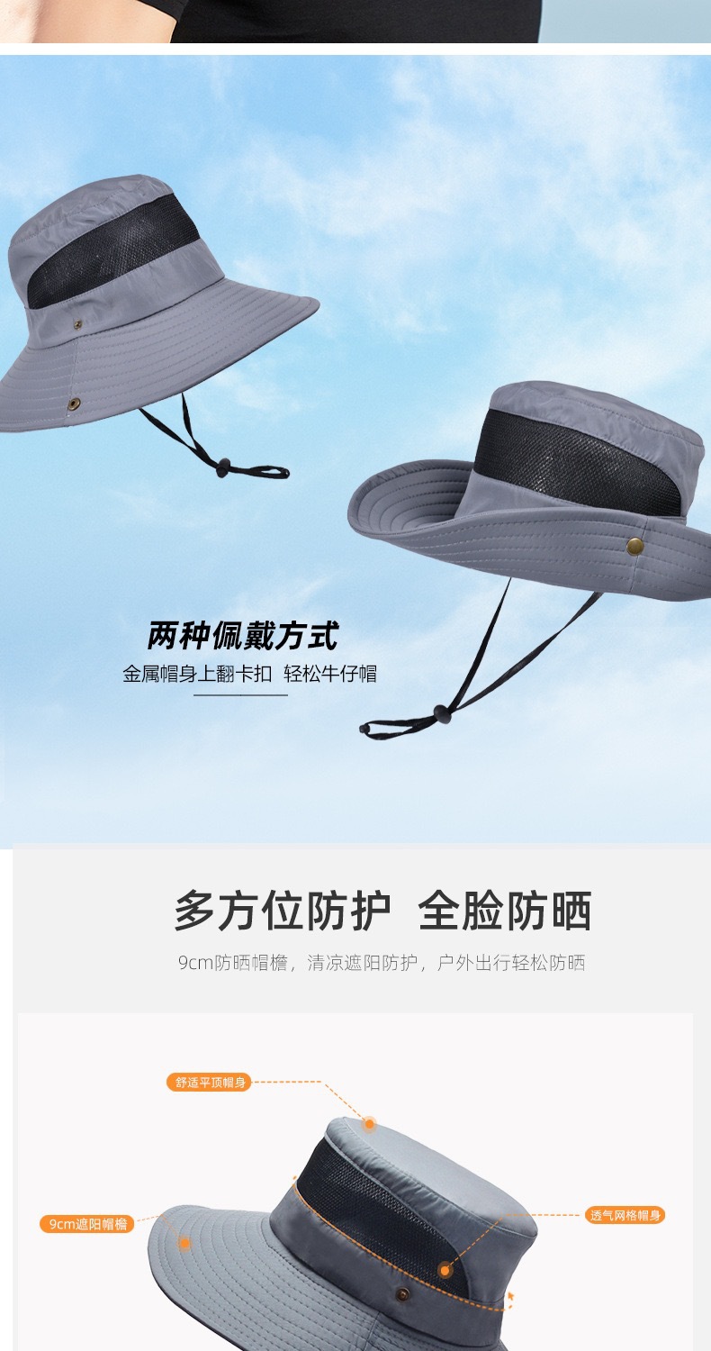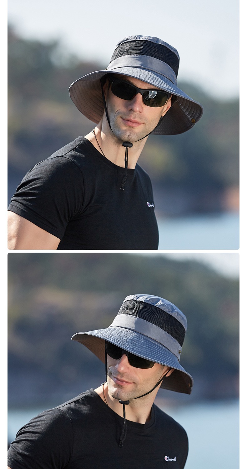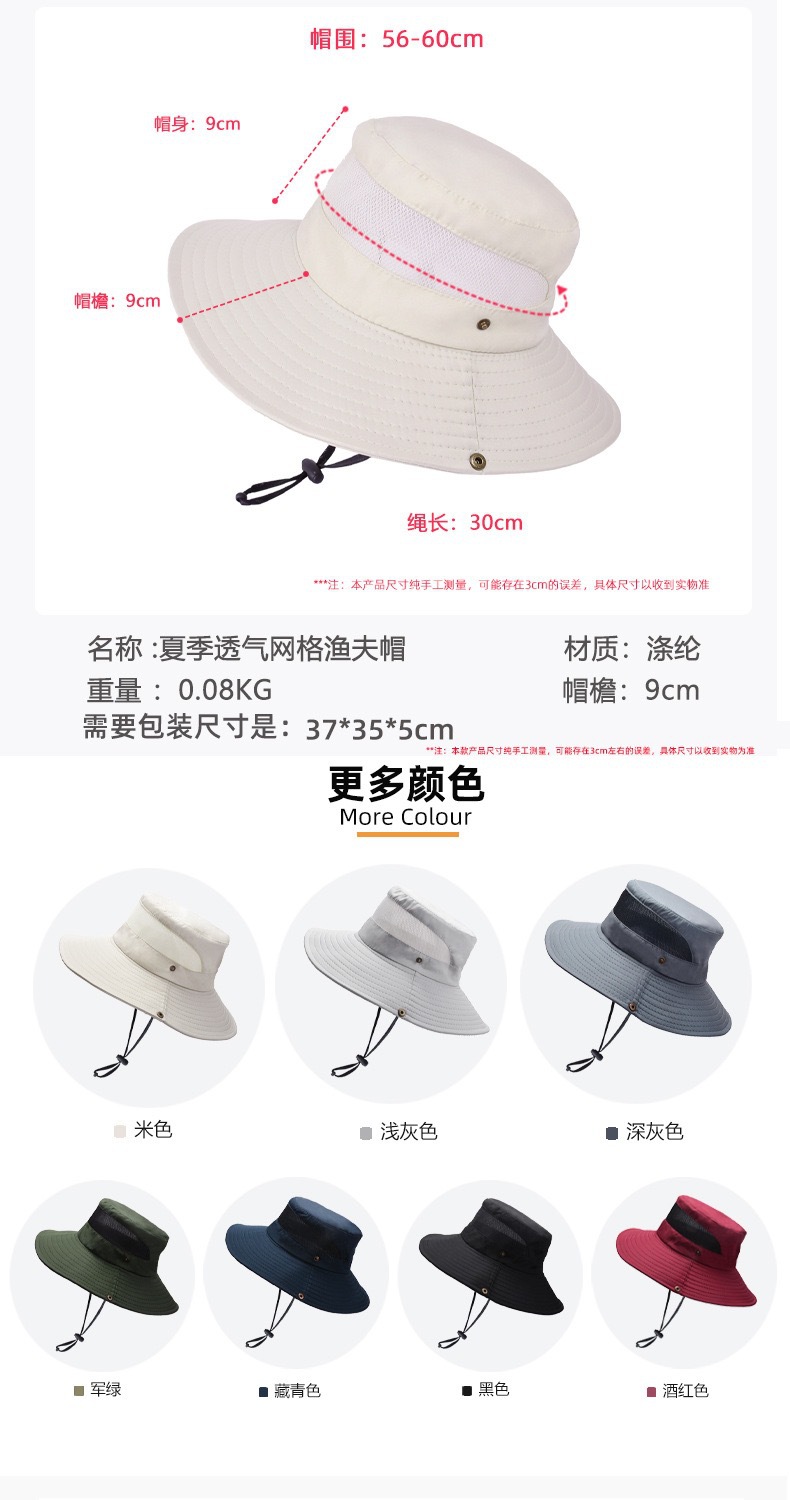 새로운 캐주얼 분지 모자 메시 통기성 빠른 건조 어부 모자 남성과 여성의 야외 등산 하이킹 큰 Eave Sunshade Sunscreen Hat스토어 가기
