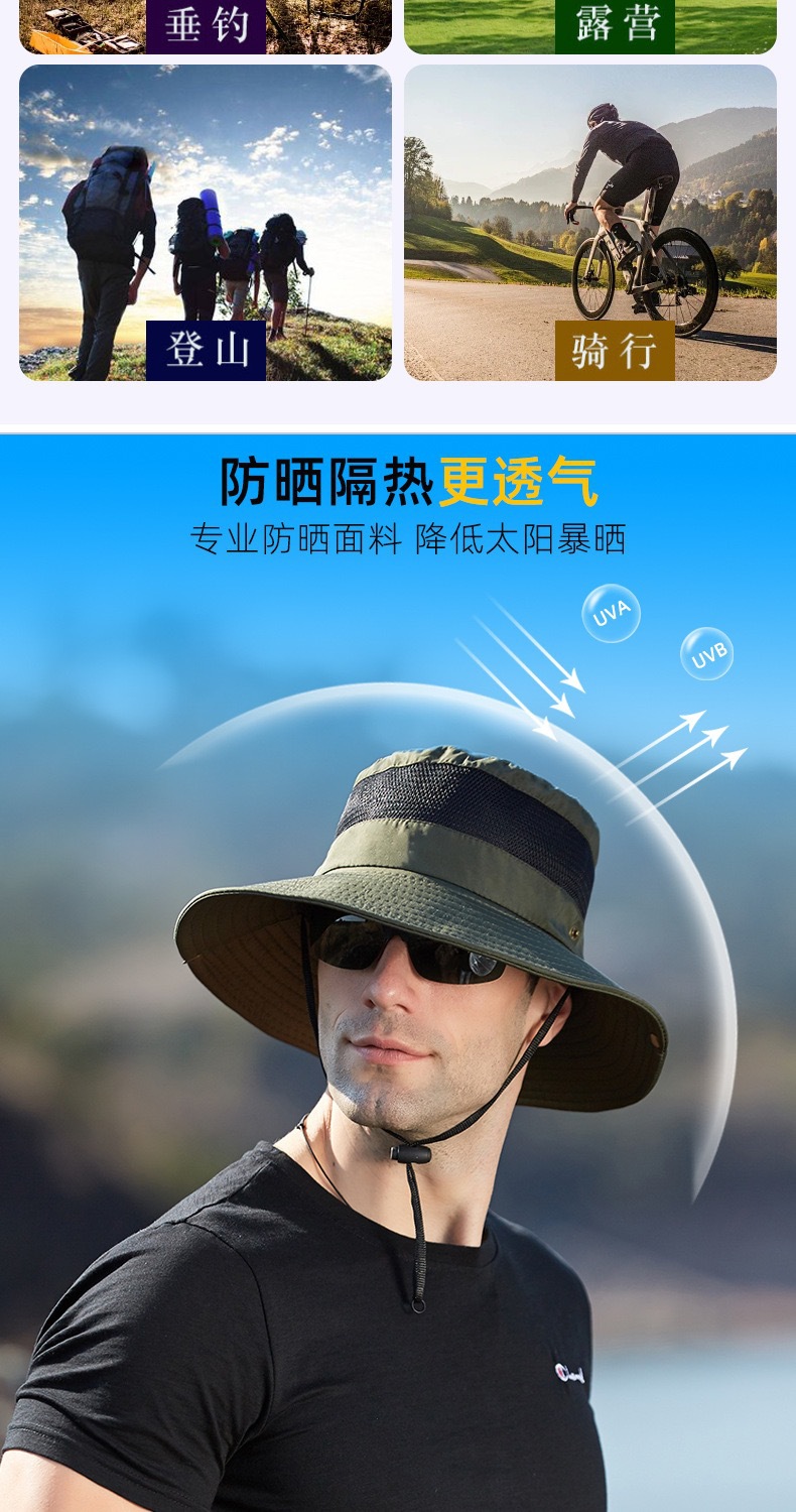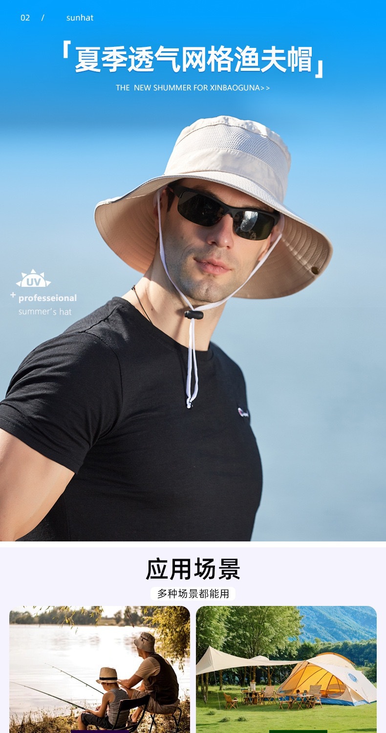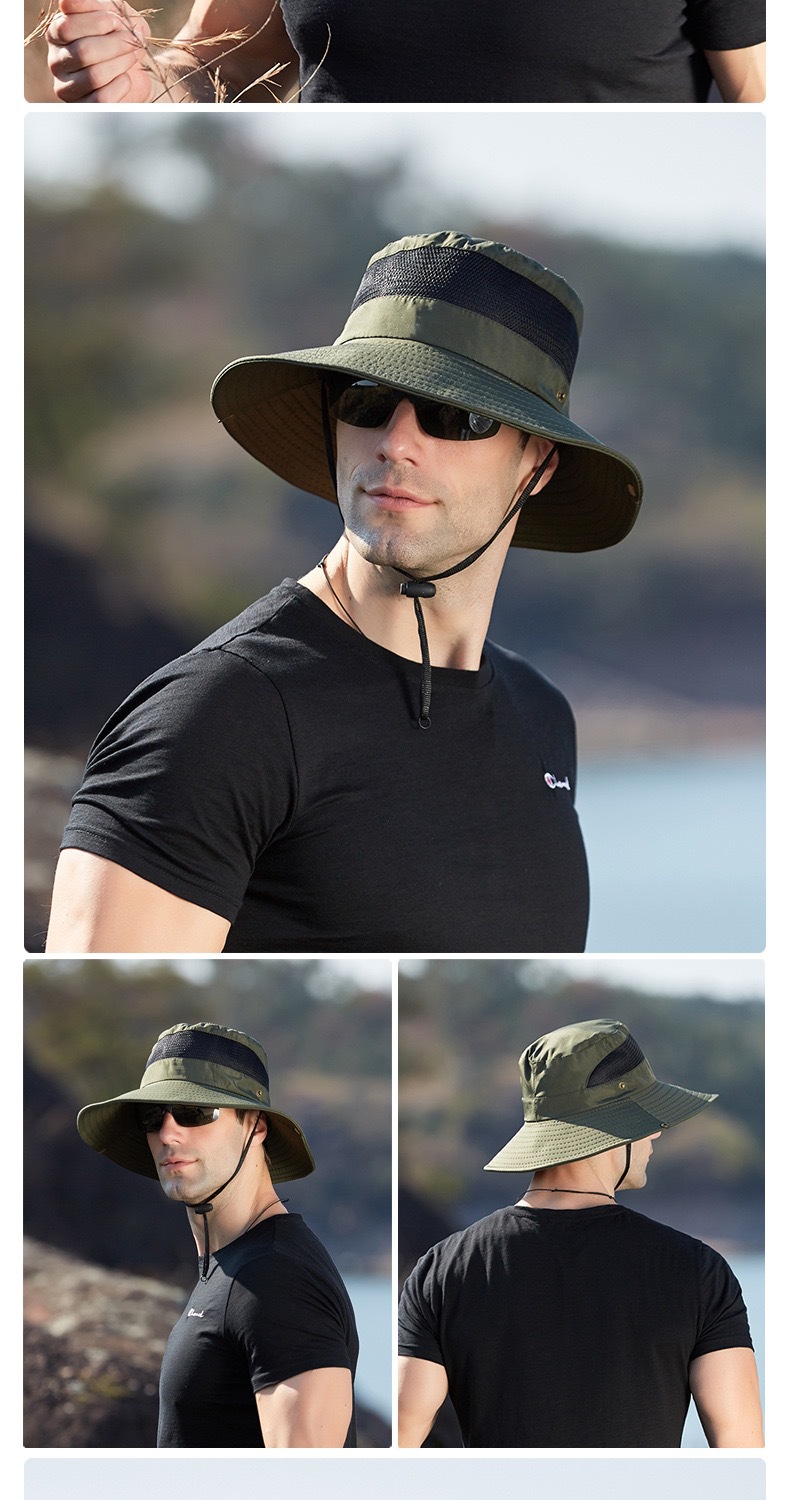 새로운 캐주얼 분지 모자 메시 통기성 빠른 건조 어부 모자 남성과 여성의 야외 등산 하이킹 큰 Eave Sunshade Sunscreen Hat스토어 가기