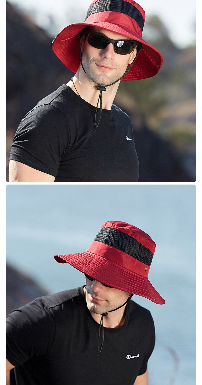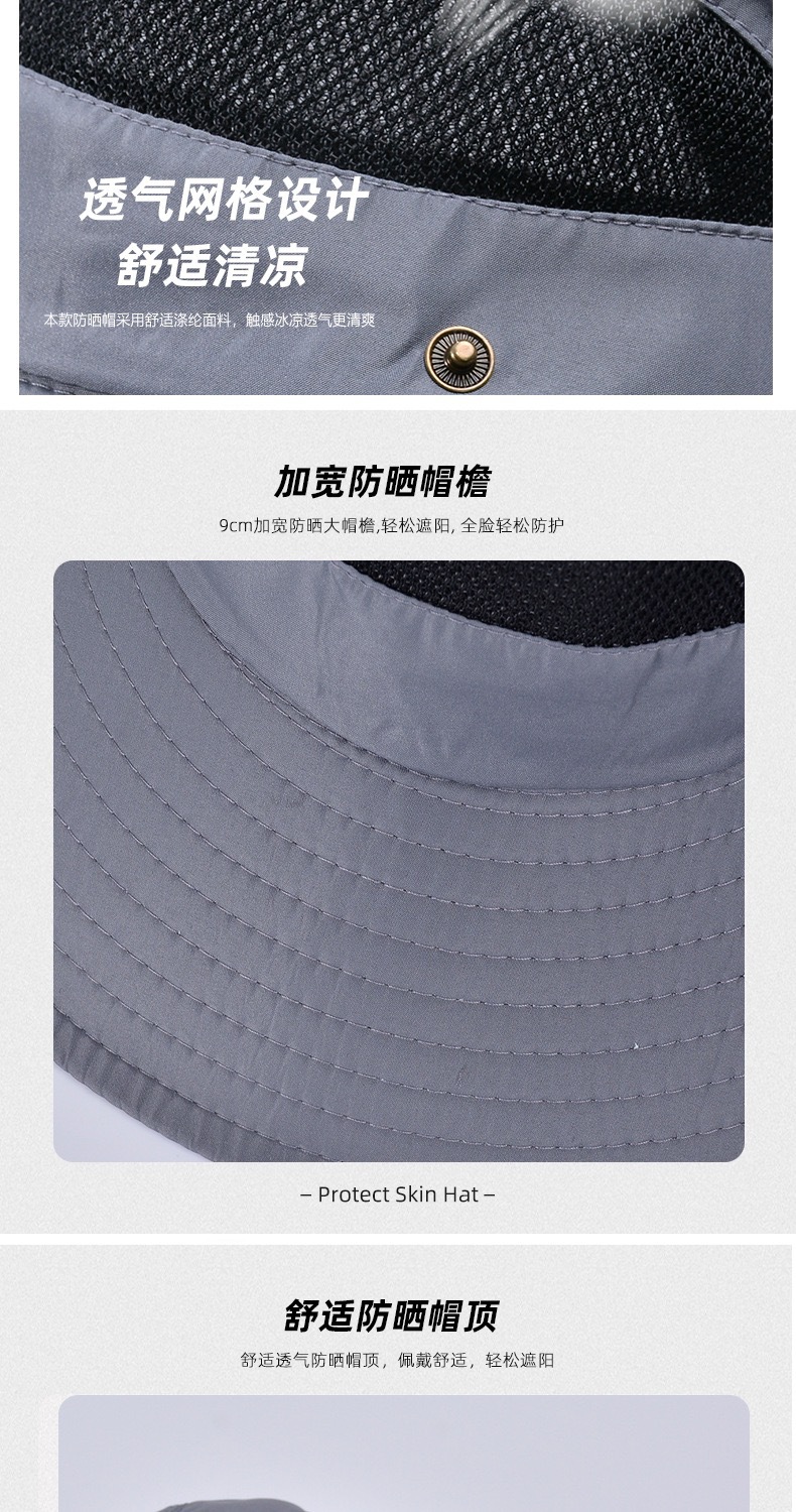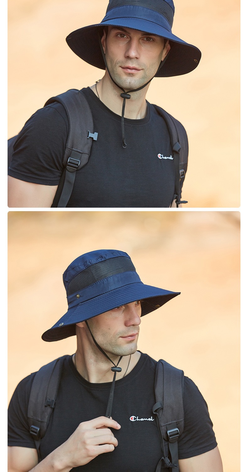 새로운 캐주얼 분지 모자 메시 통기성 빠른 건조 어부 모자 남성과 여성의 야외 등산 하이킹 큰 Eave Sunshade Sunscreen Hat