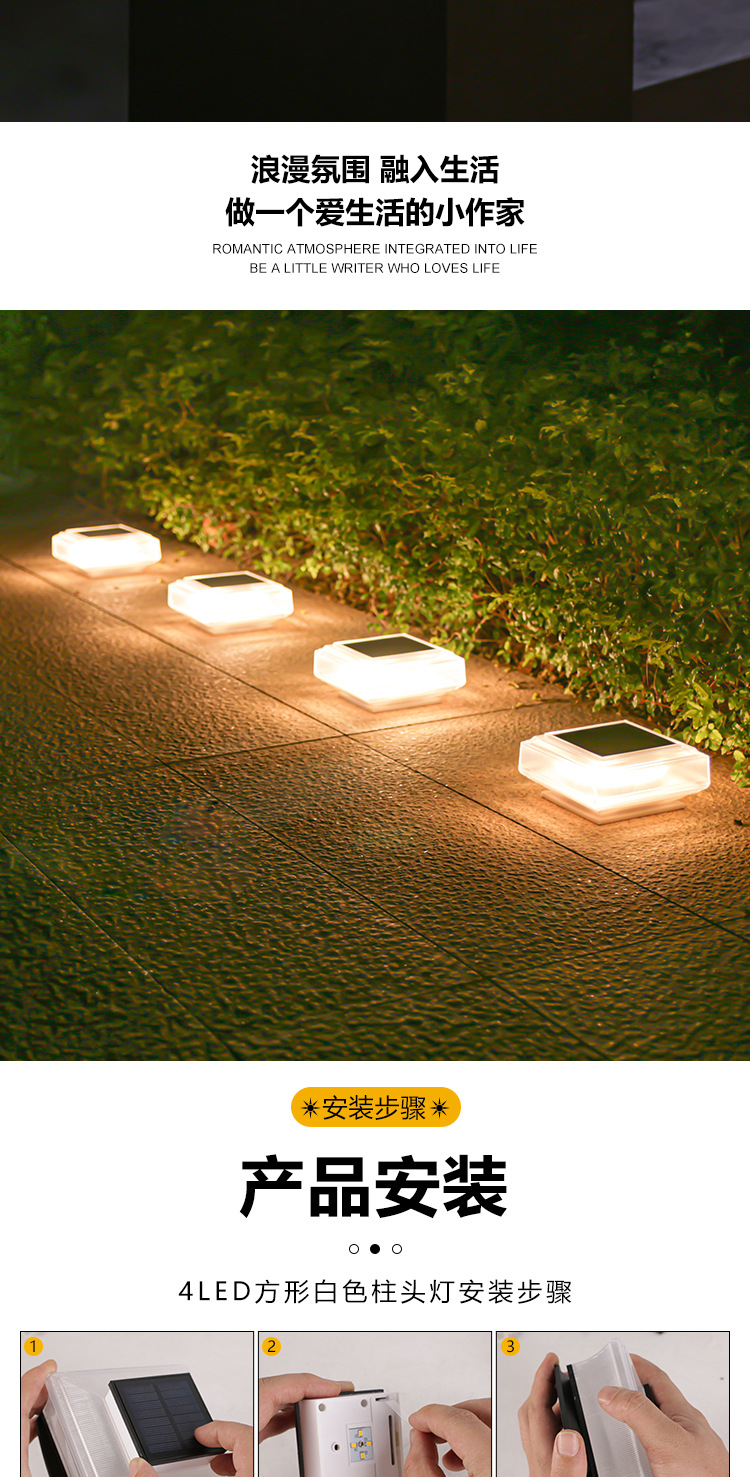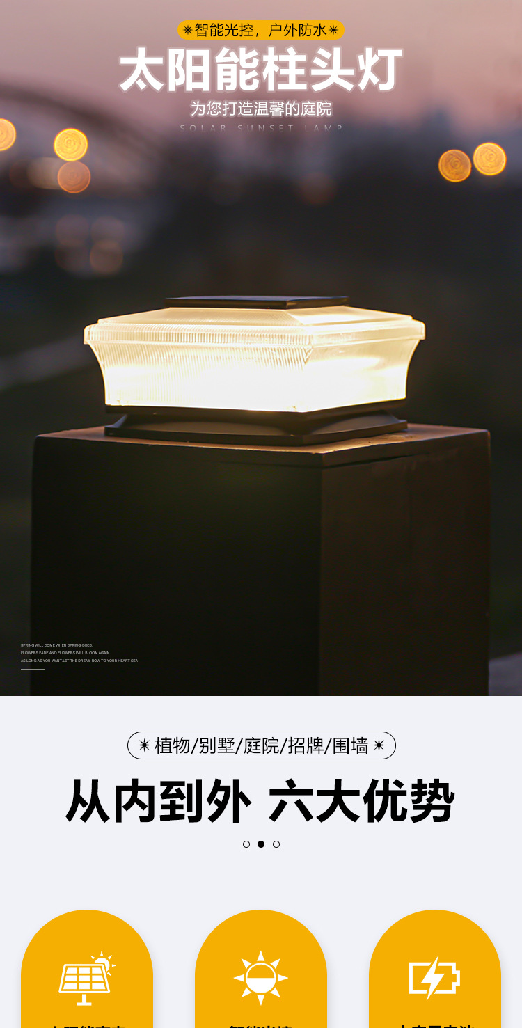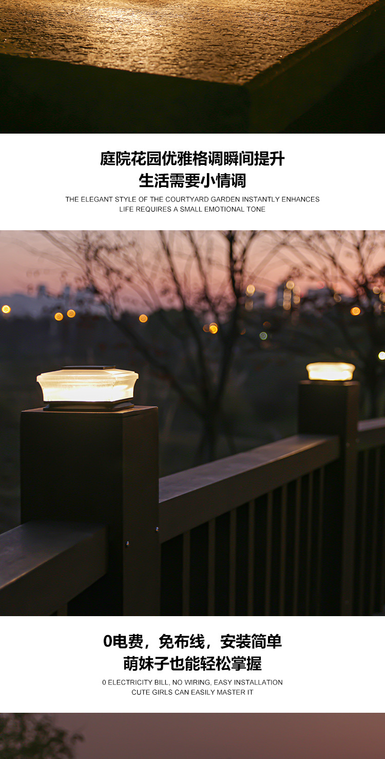 태양 기둥 램프 빌라 문 칼럼 램프 야외 방수 정원 램프 벽 칼럼 램프 안뜰 게이트 칼럼