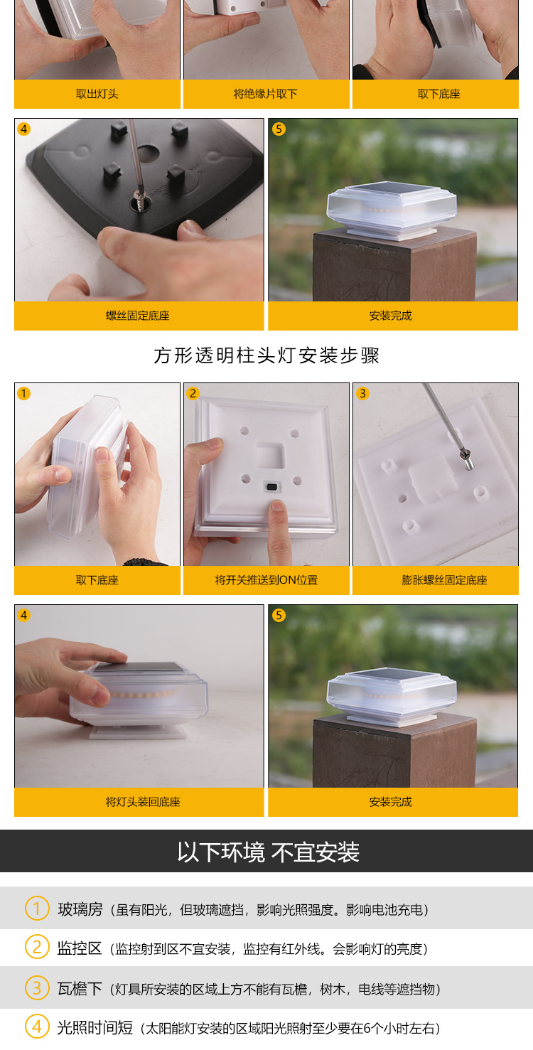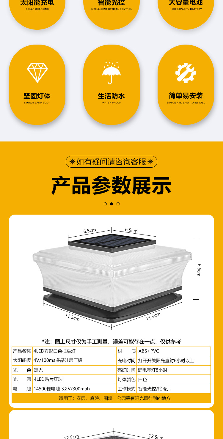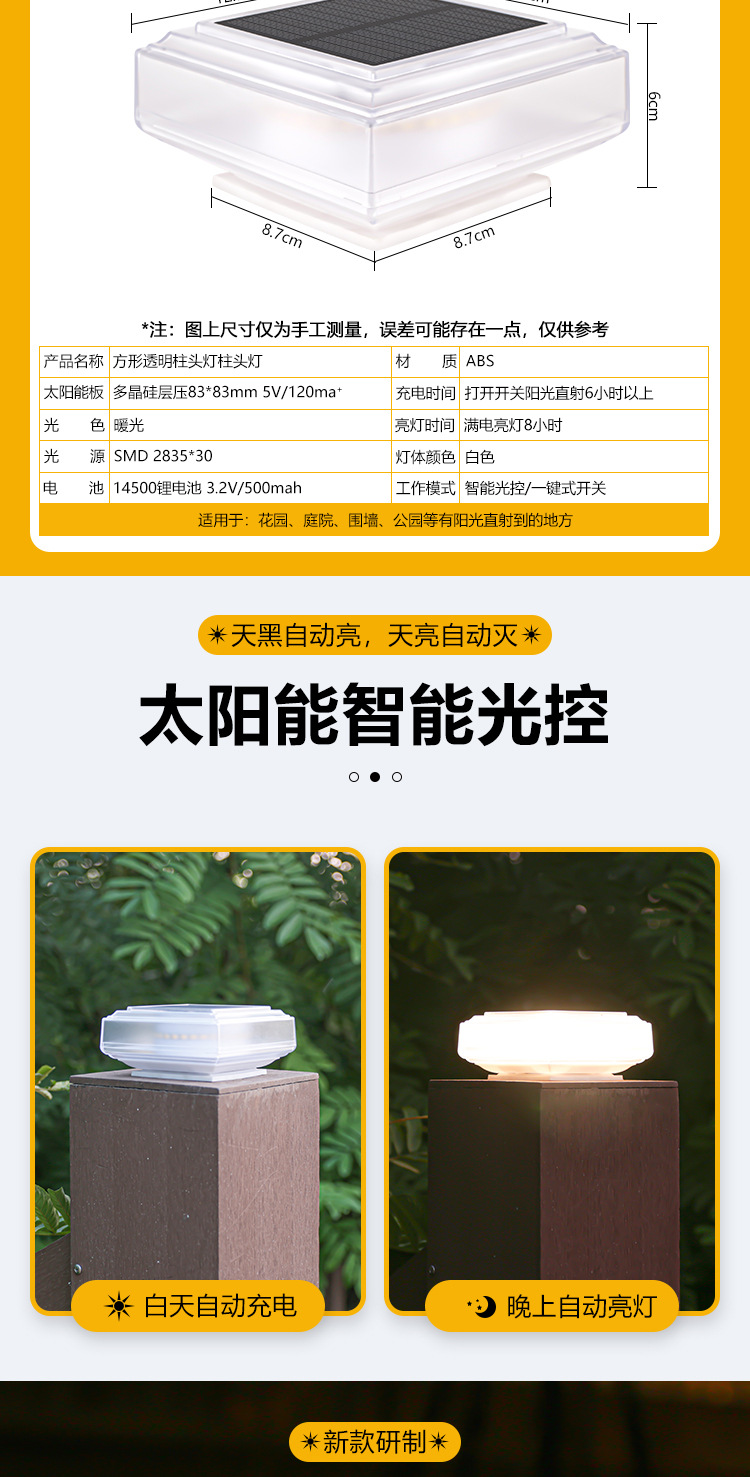 태양 기둥 램프 빌라 문 칼럼 램프 야외 방수 정원 램프 벽 칼럼 램프 안뜰 게이트 칼럼