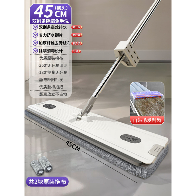 • [스크레이퍼 스트립이 포함된 확대되고 두꺼워진 이중 패널] 45cm 걸레와 스크레이퍼 일체형 + 두꺼운 천 2개✅두꺼운 강화 막대♢♢