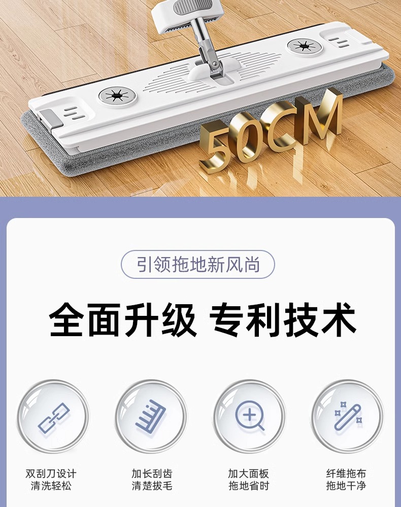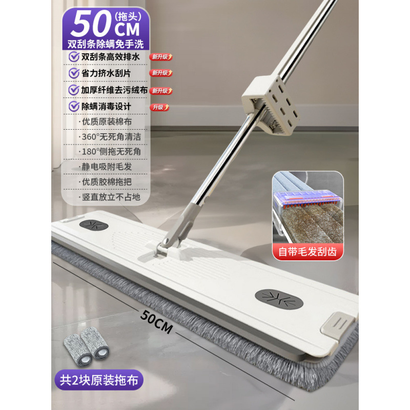 • [스크레이퍼 스트립이 포함된 확대되고 두꺼워진 이중 패널] 50cm 걸레와 스크레이퍼 일체형 + 두꺼운 천 6개✅두꺼운 강화 막대♢♢