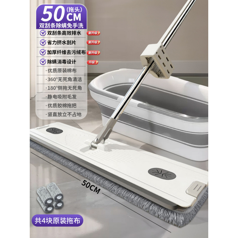 • 접이식 버킷 세트 [스크레이퍼 스트립이 있는 확대되고 두꺼워진 이중 패널] 50cm 걸레와 스크레이퍼 일체형 + 두꺼운 천 4개✅두꺼운 강화 막대♢♢