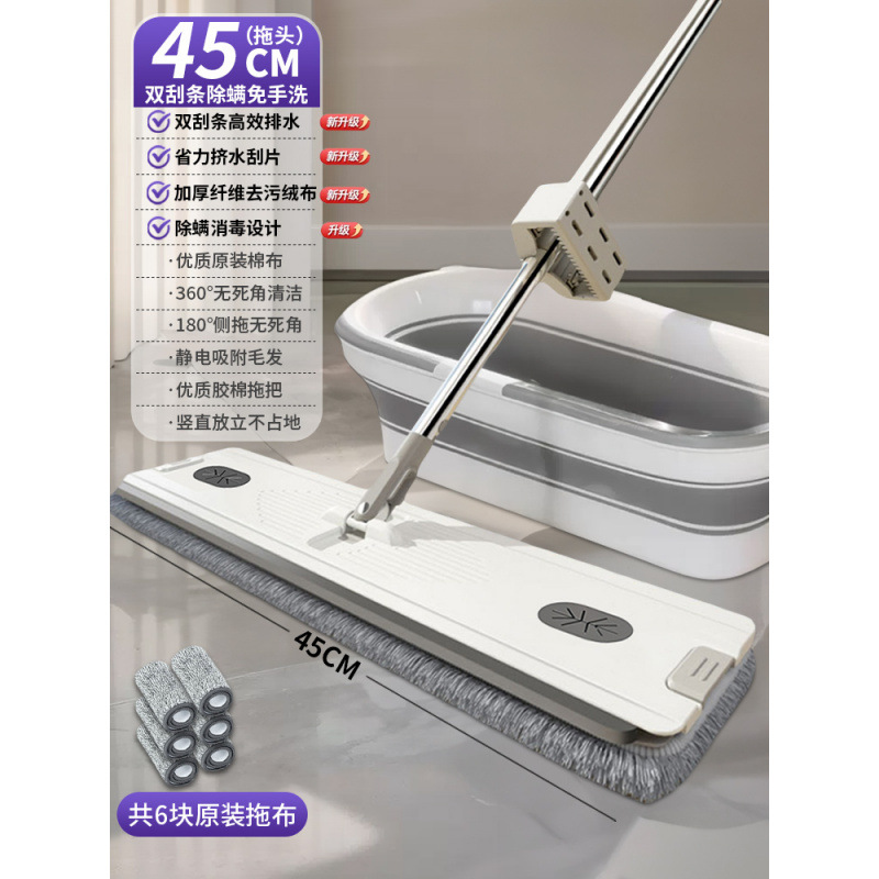 • [스크레이퍼 스트립이 있는 확대되고 두꺼워진 이중 패널] 45cm 걸레와 스크레이퍼 일체형 + 두꺼운 천 4개✅두꺼운 강화 막대♢♢
