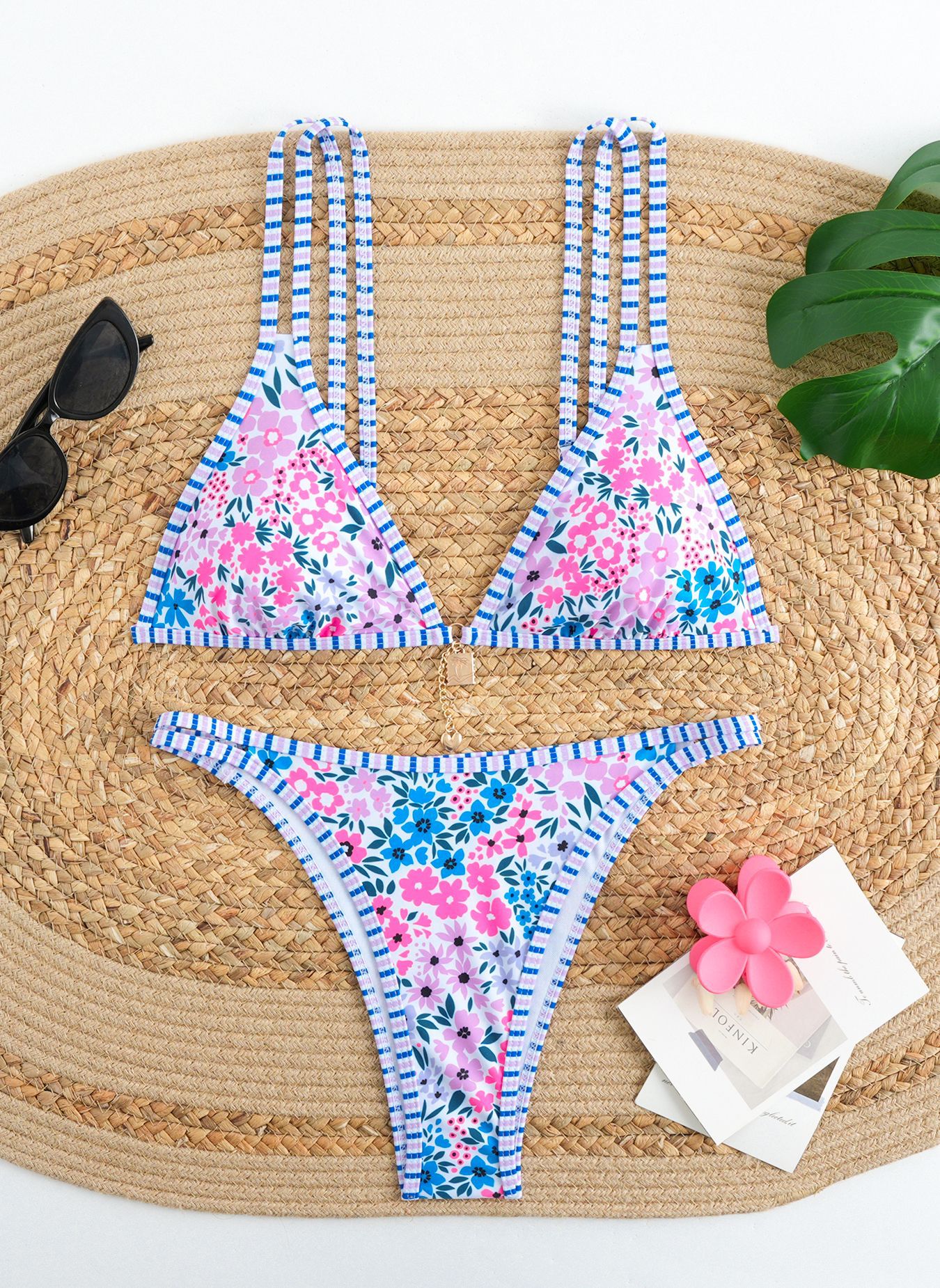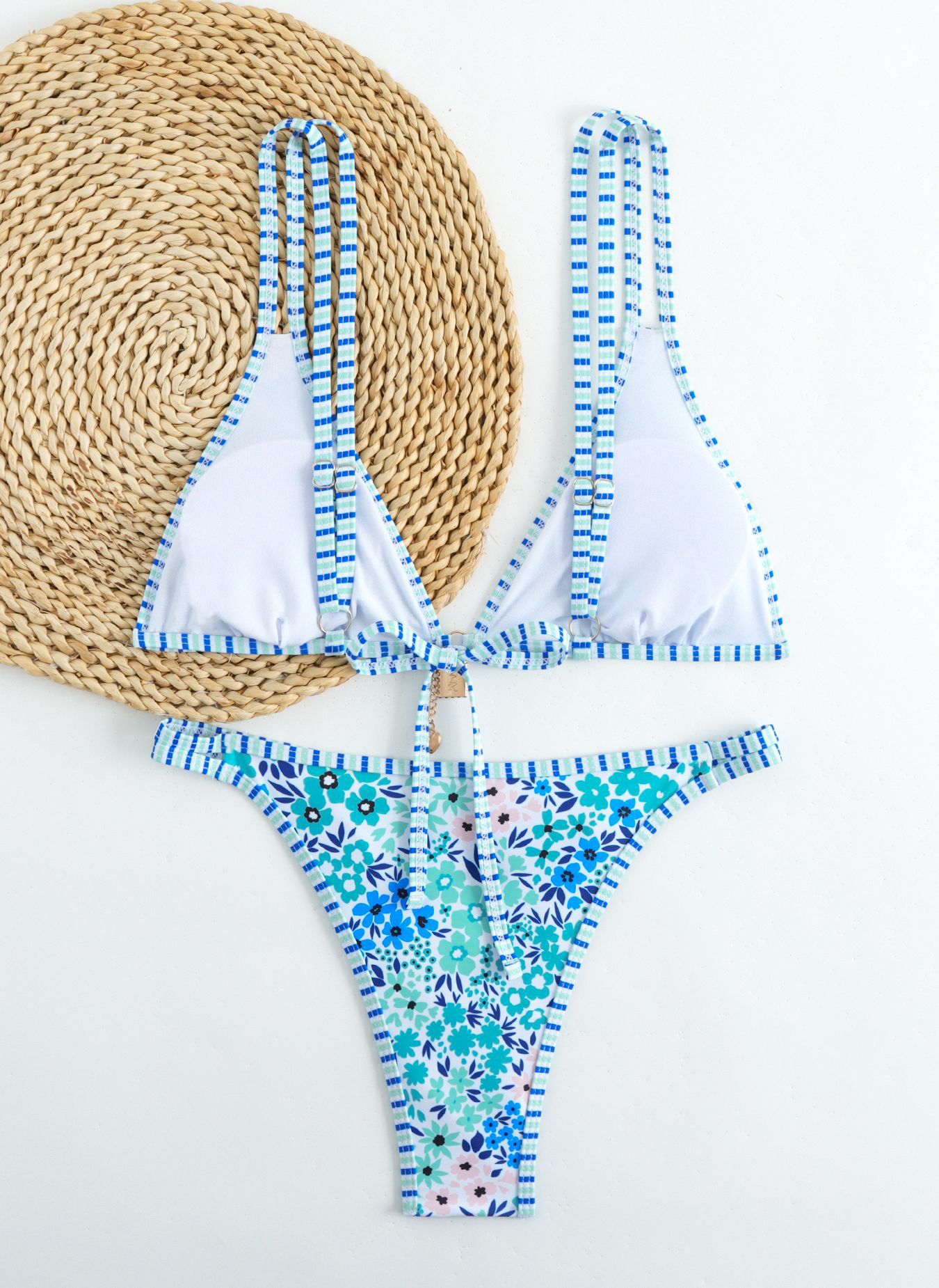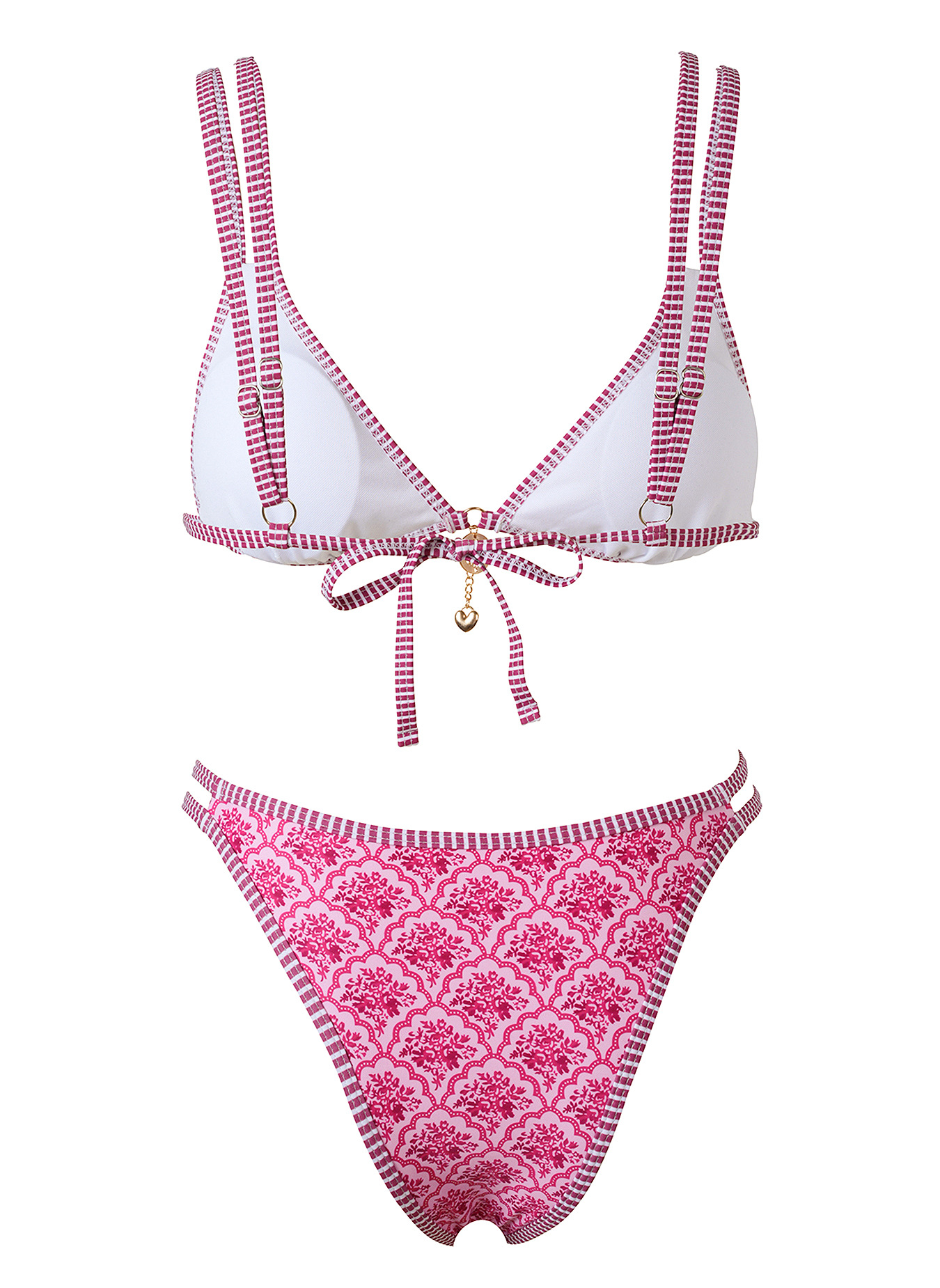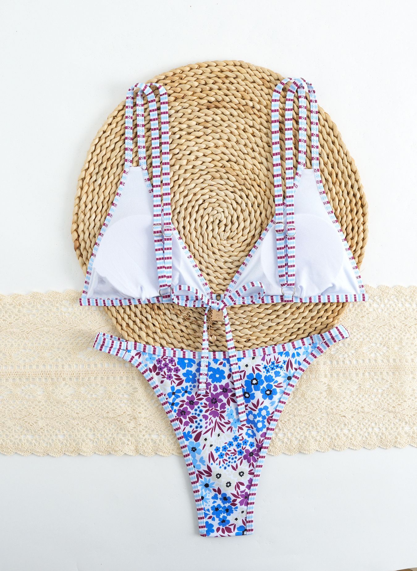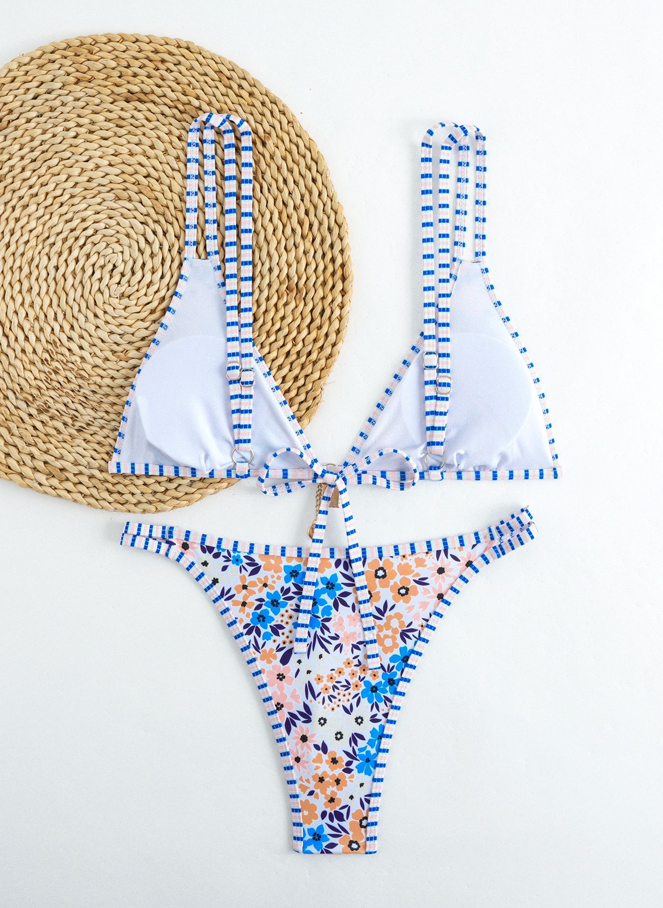 2025 새로운 비키니 유럽 및 미국 국경 분할 수영복 레이스 업 패션 인쇄 여성 수영복 비치 투피스 세트