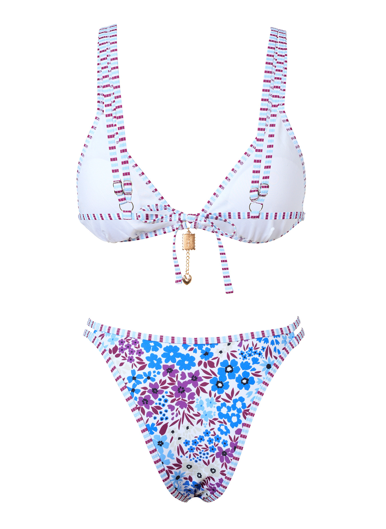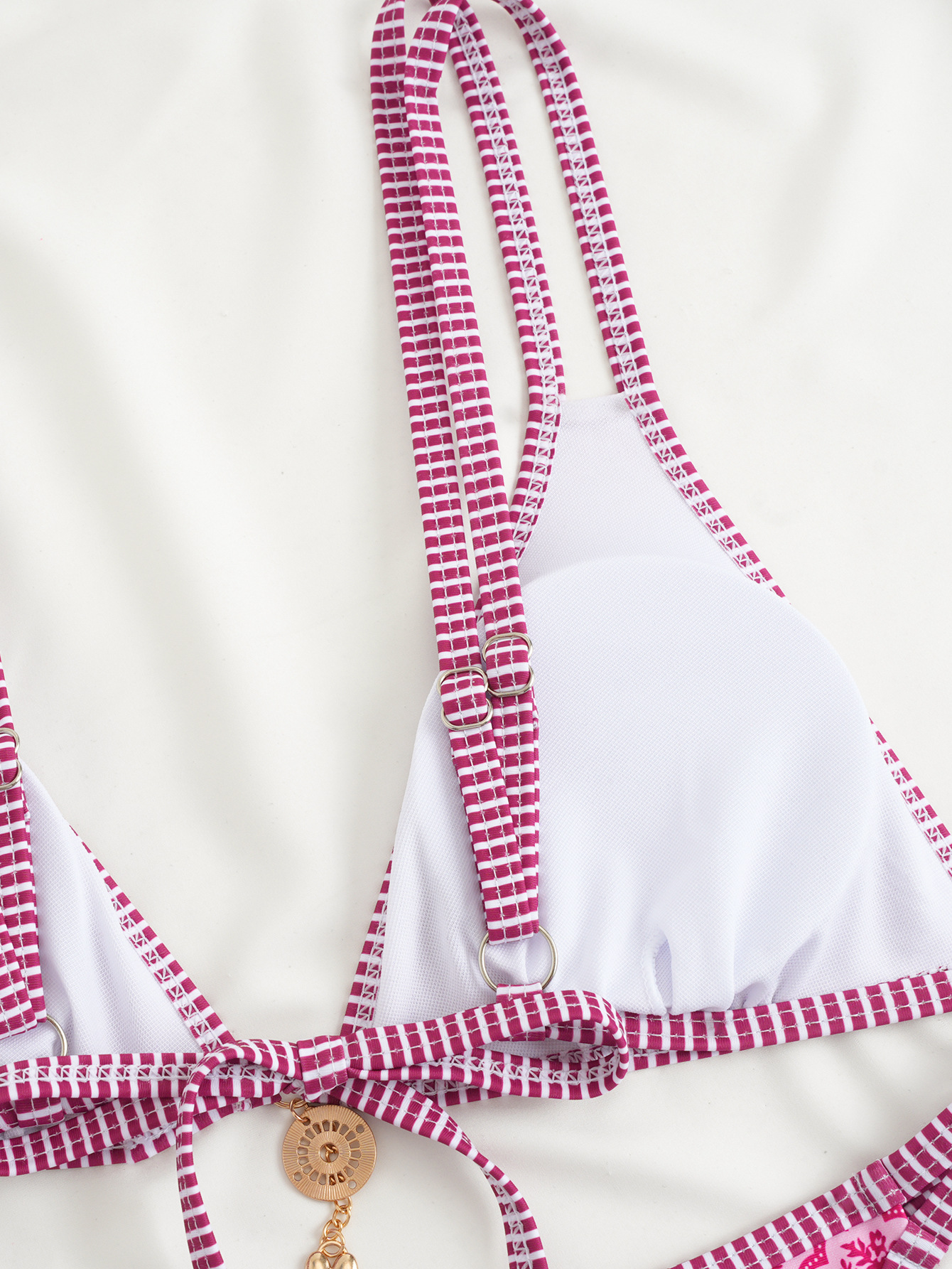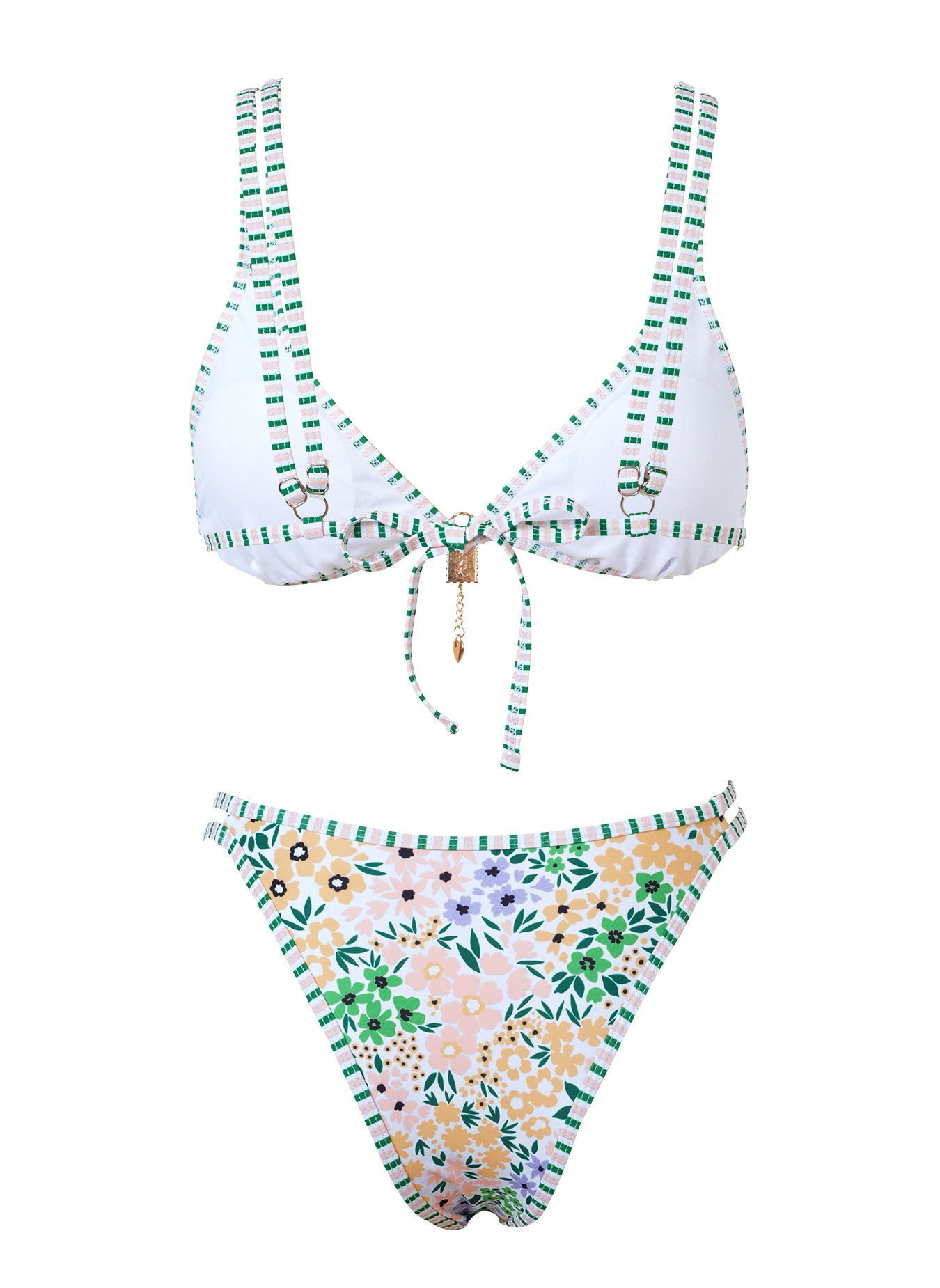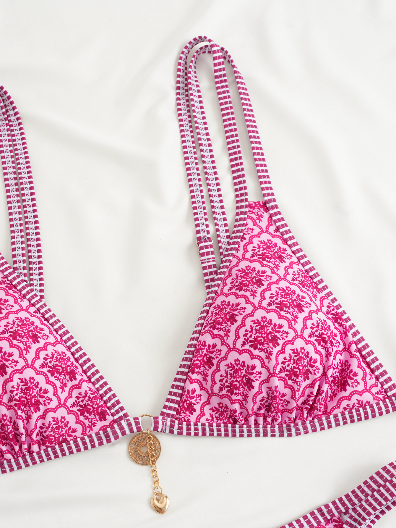 2025 새로운 비키니 유럽 및 미국 국경 분할 수영복 레이스 업 패션 인쇄 여성 수영복 비치 투피스 세트