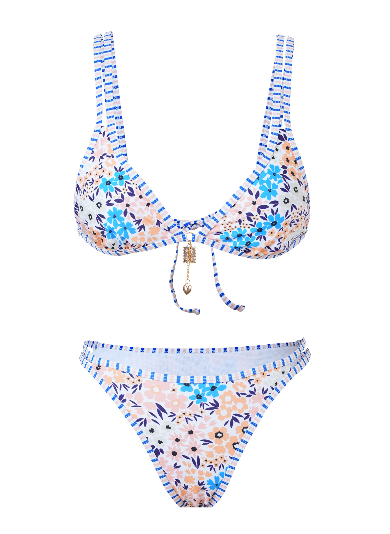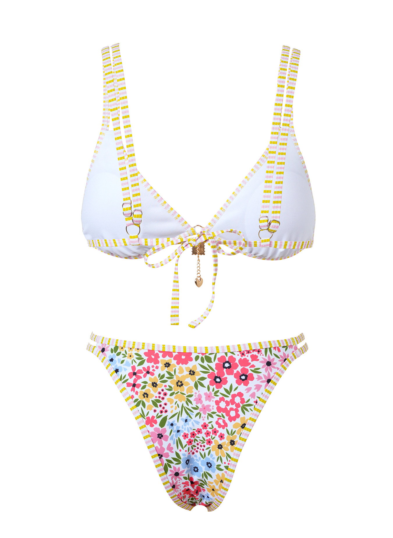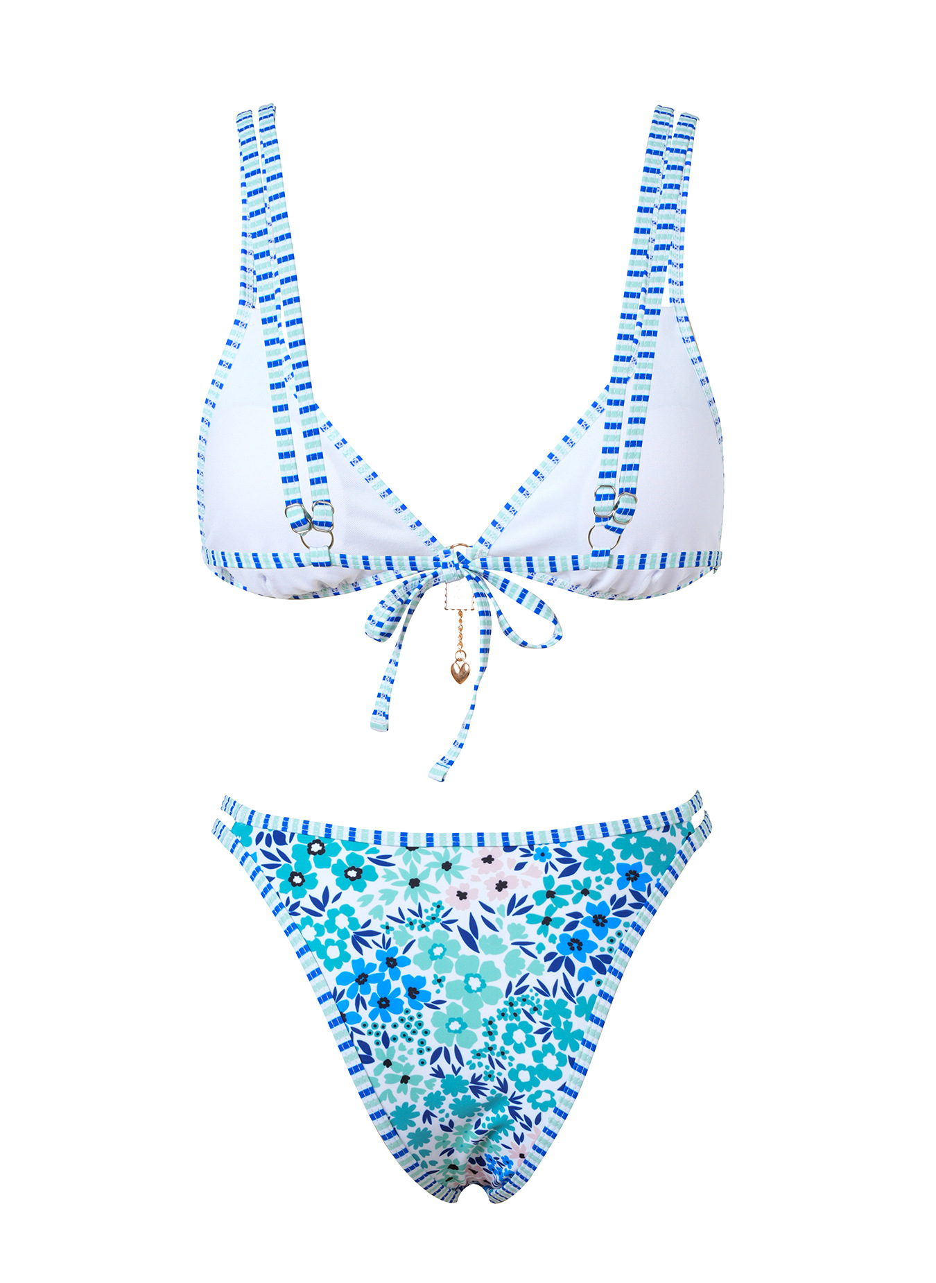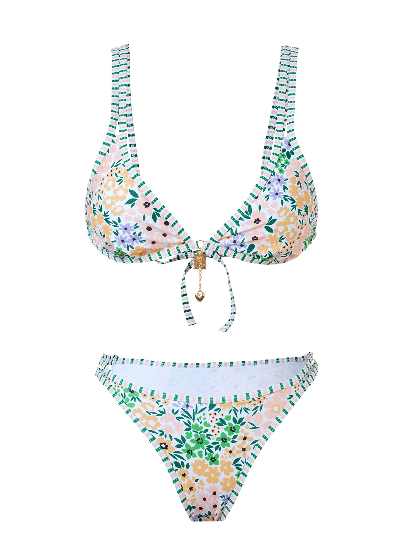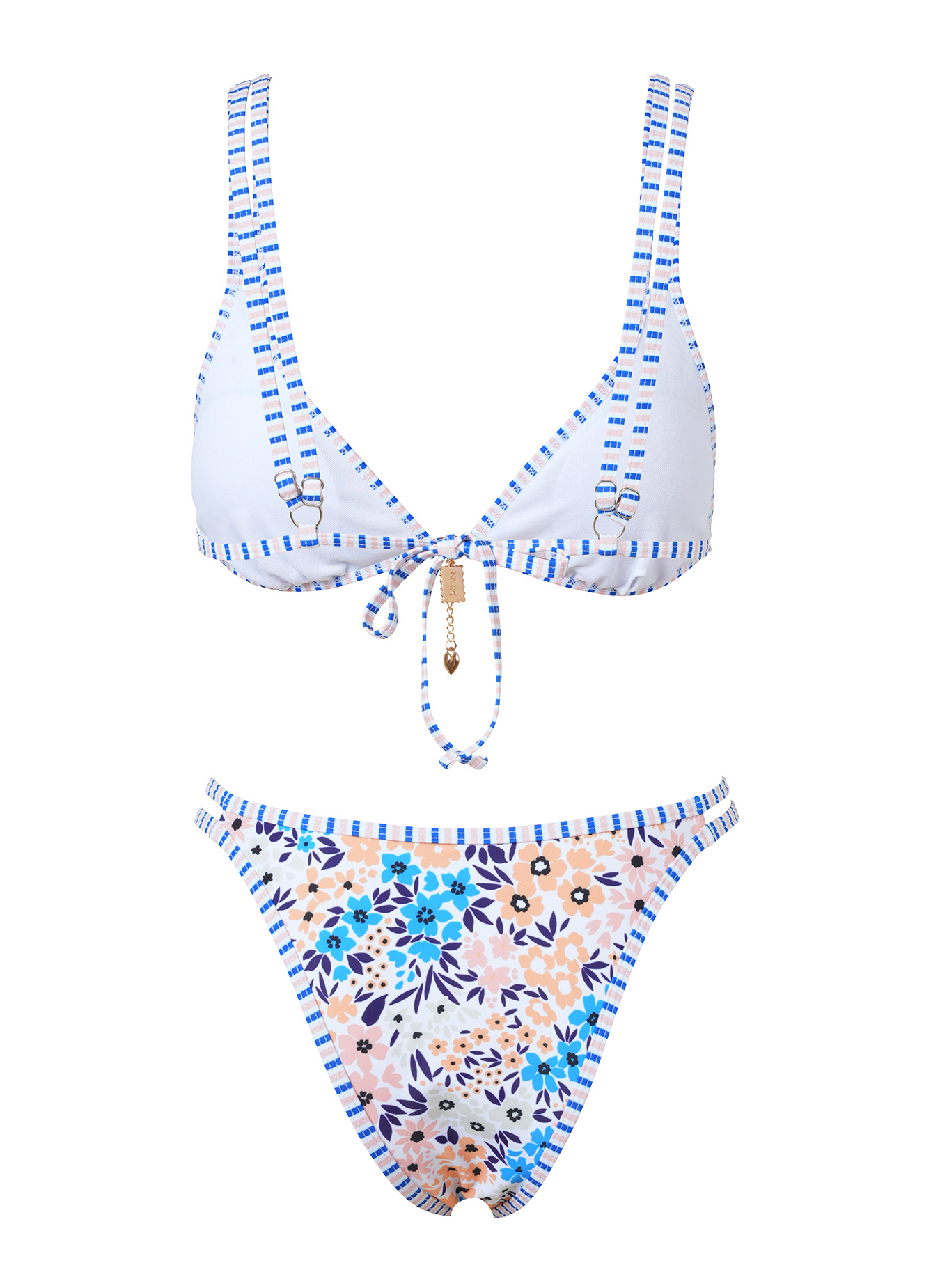 2025 새로운 비키니 유럽 및 미국 국경 분할 수영복 레이스 업 패션 인쇄 여성 수영복 비치 투피스 세트