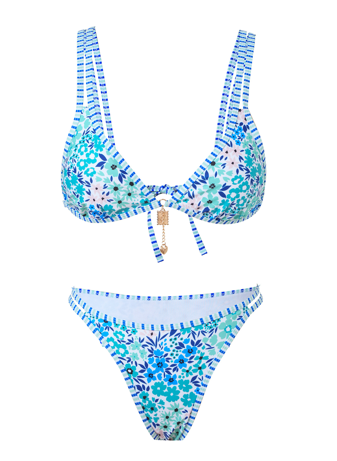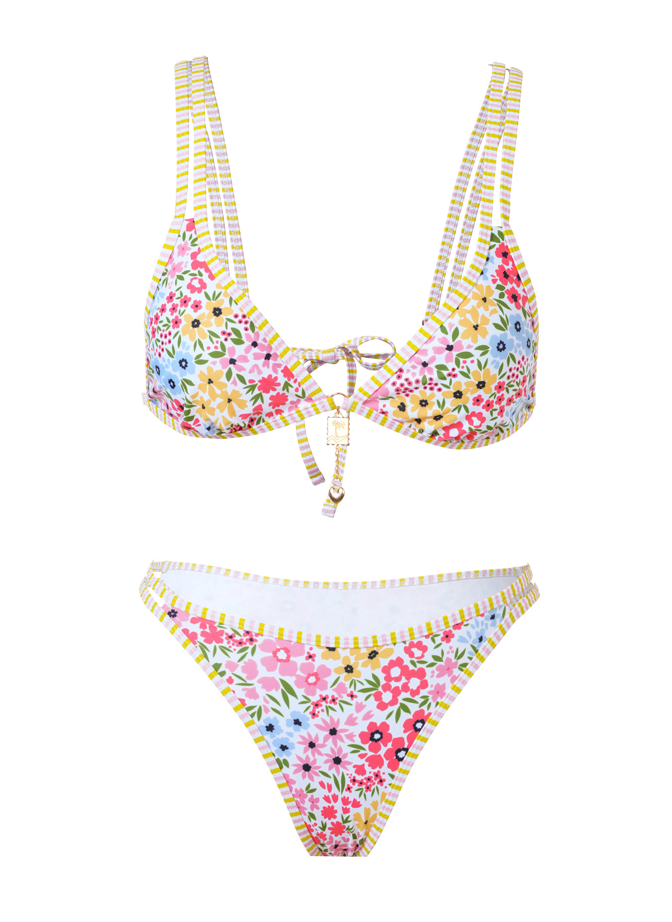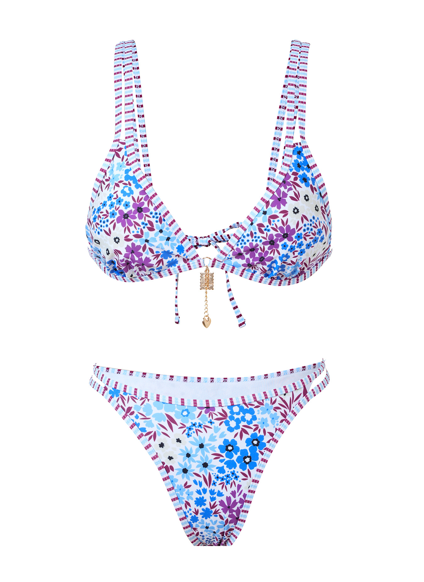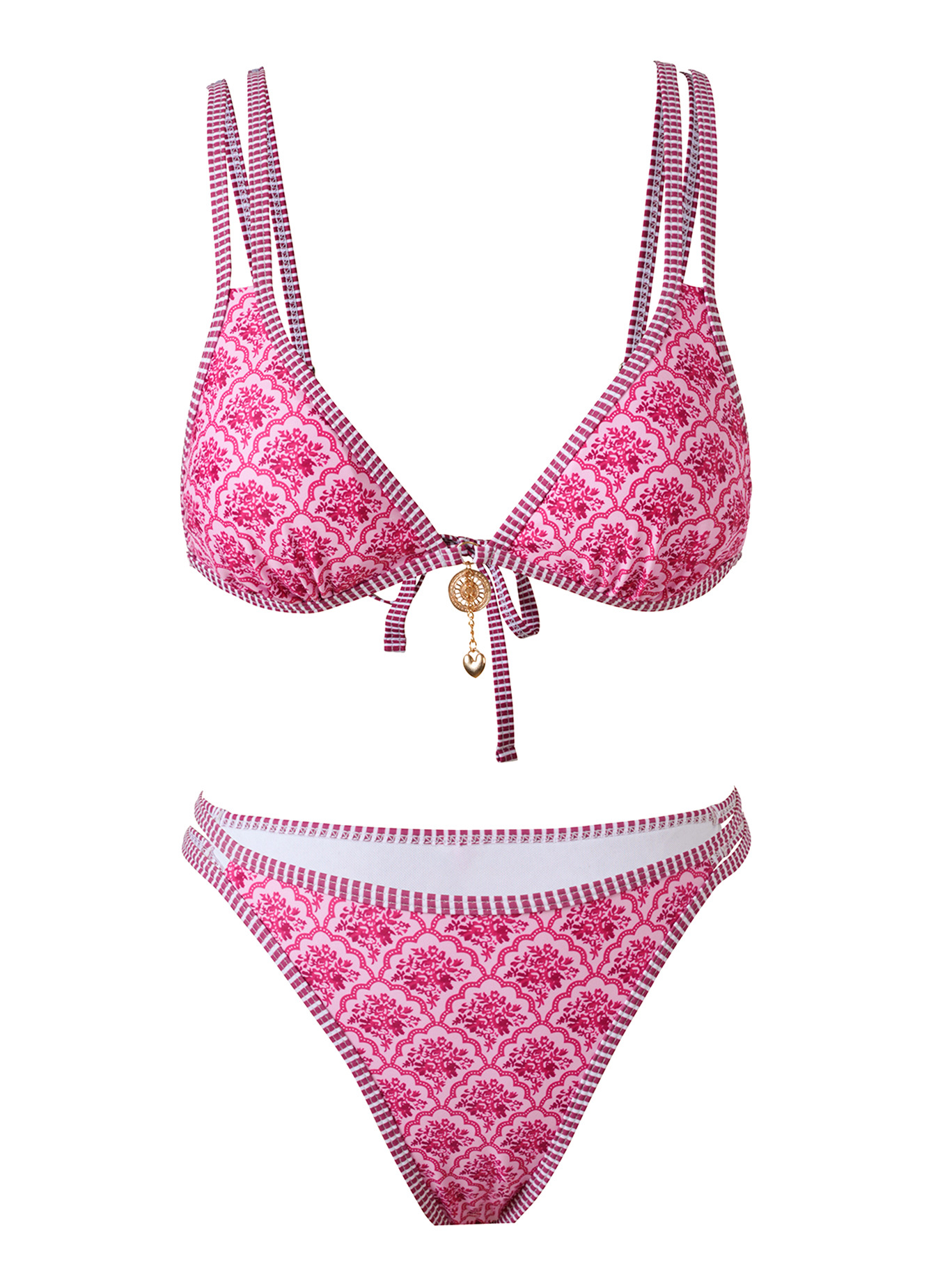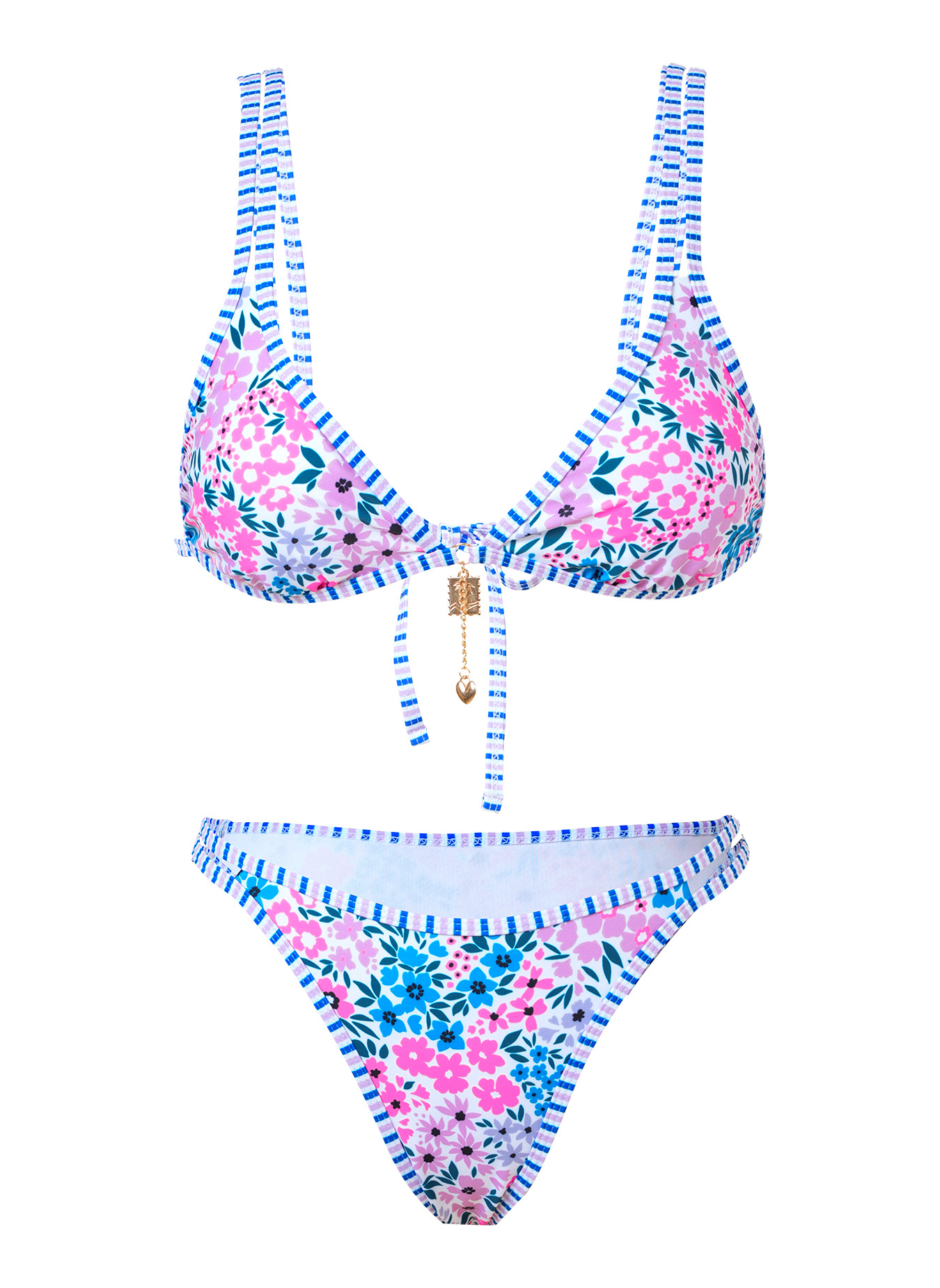 2025 새로운 비키니 유럽 및 미국 국경 분할 수영복 레이스 업 패션 인쇄 여성 수영복 비치 투피스 세트
