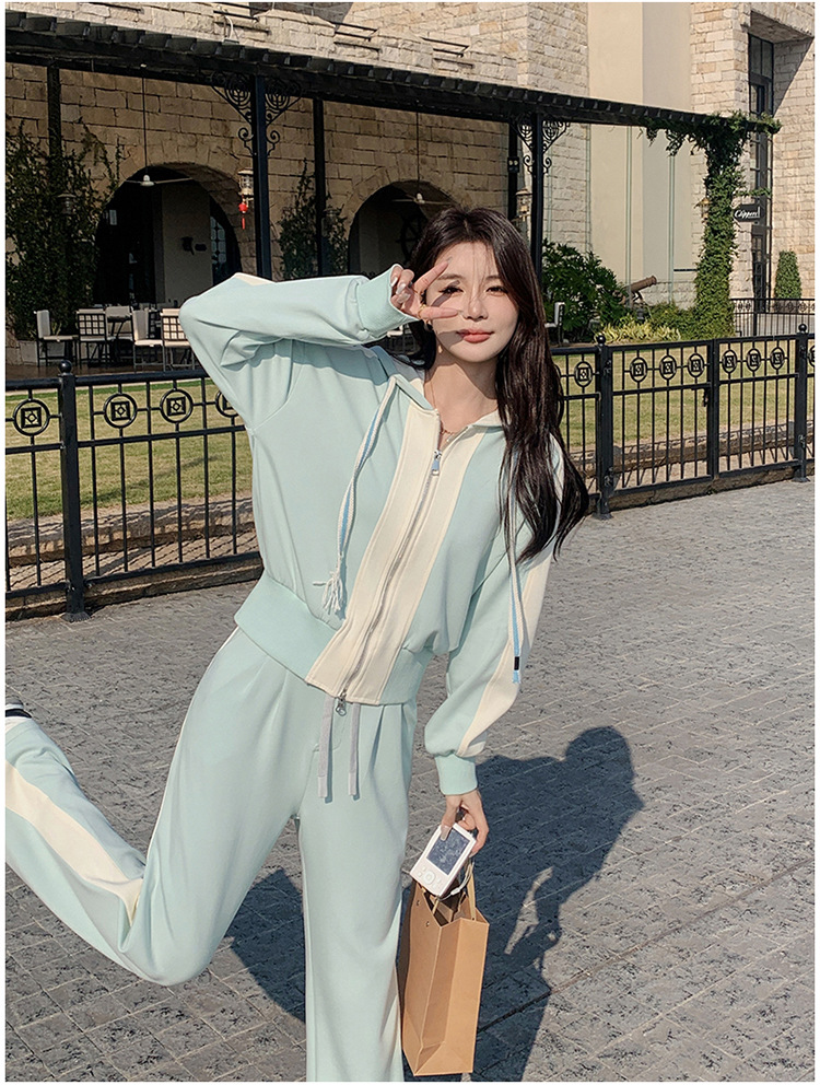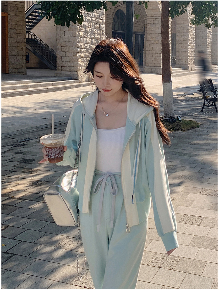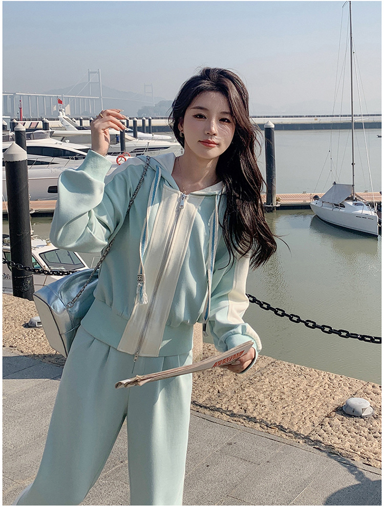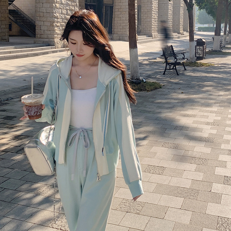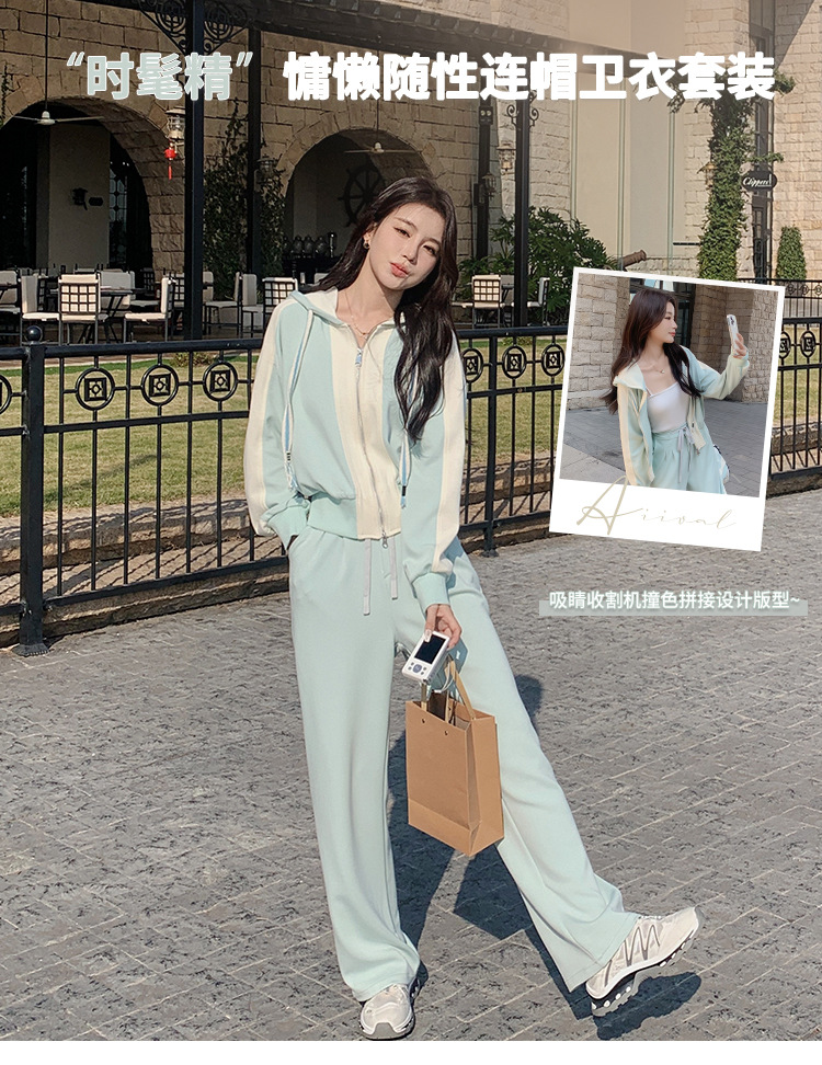 [멩메이] 25 봄 느낌 게으른 스타일 후디 세트 여성 패션 세련 된 나이 감소 고급 감각 투피스 세트